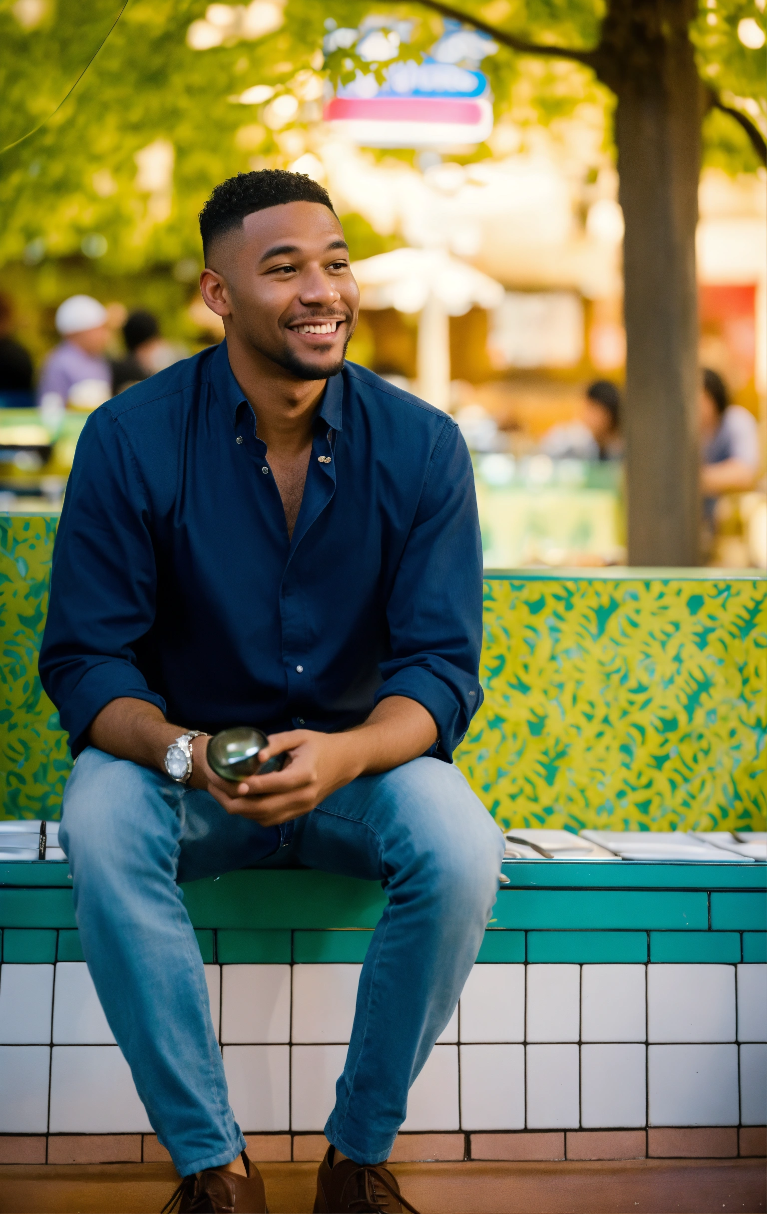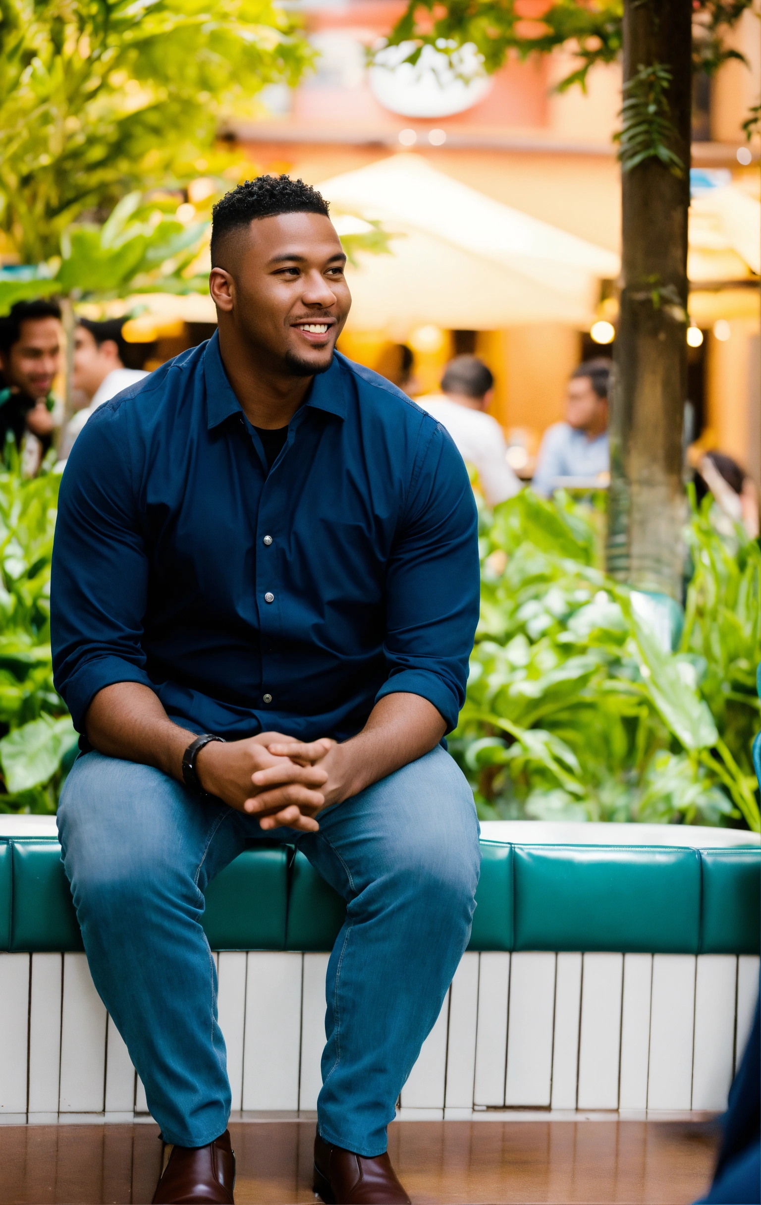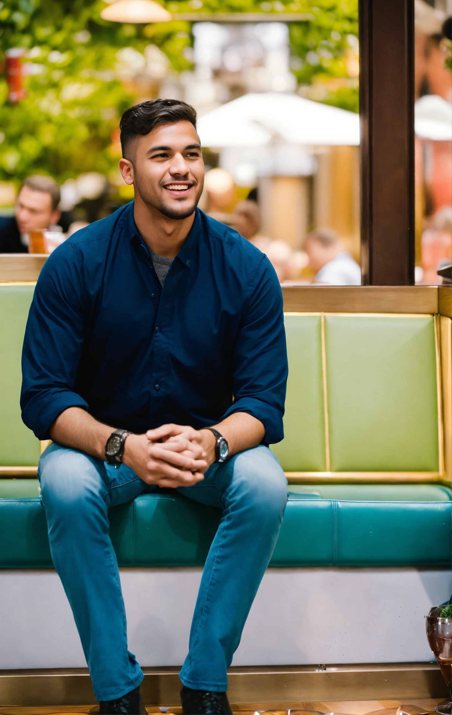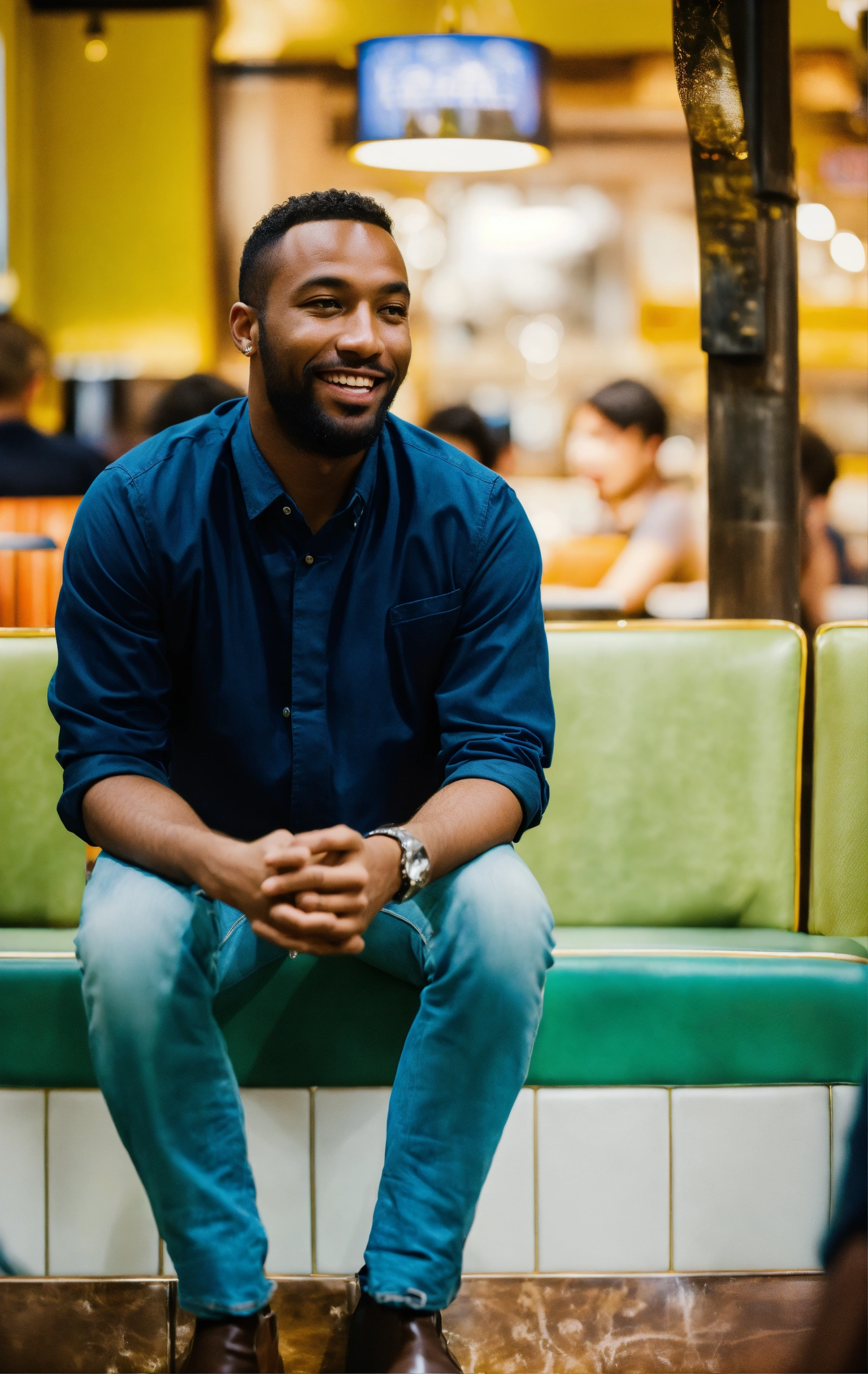 A man sits in a restaurant and talks to his friend in the photo you can see both of them