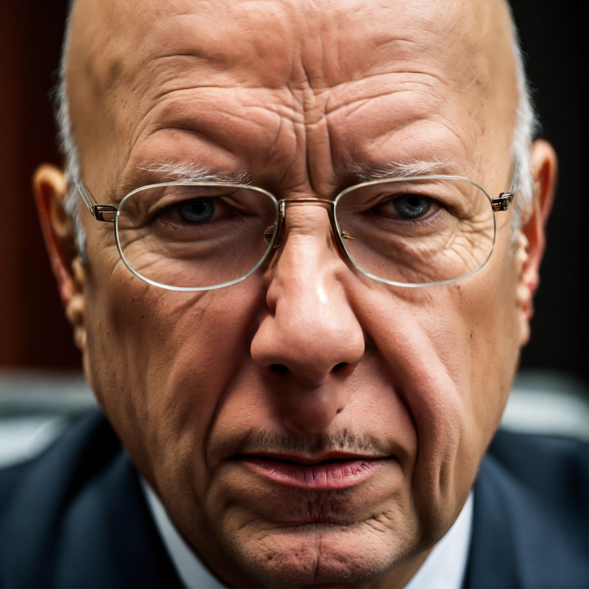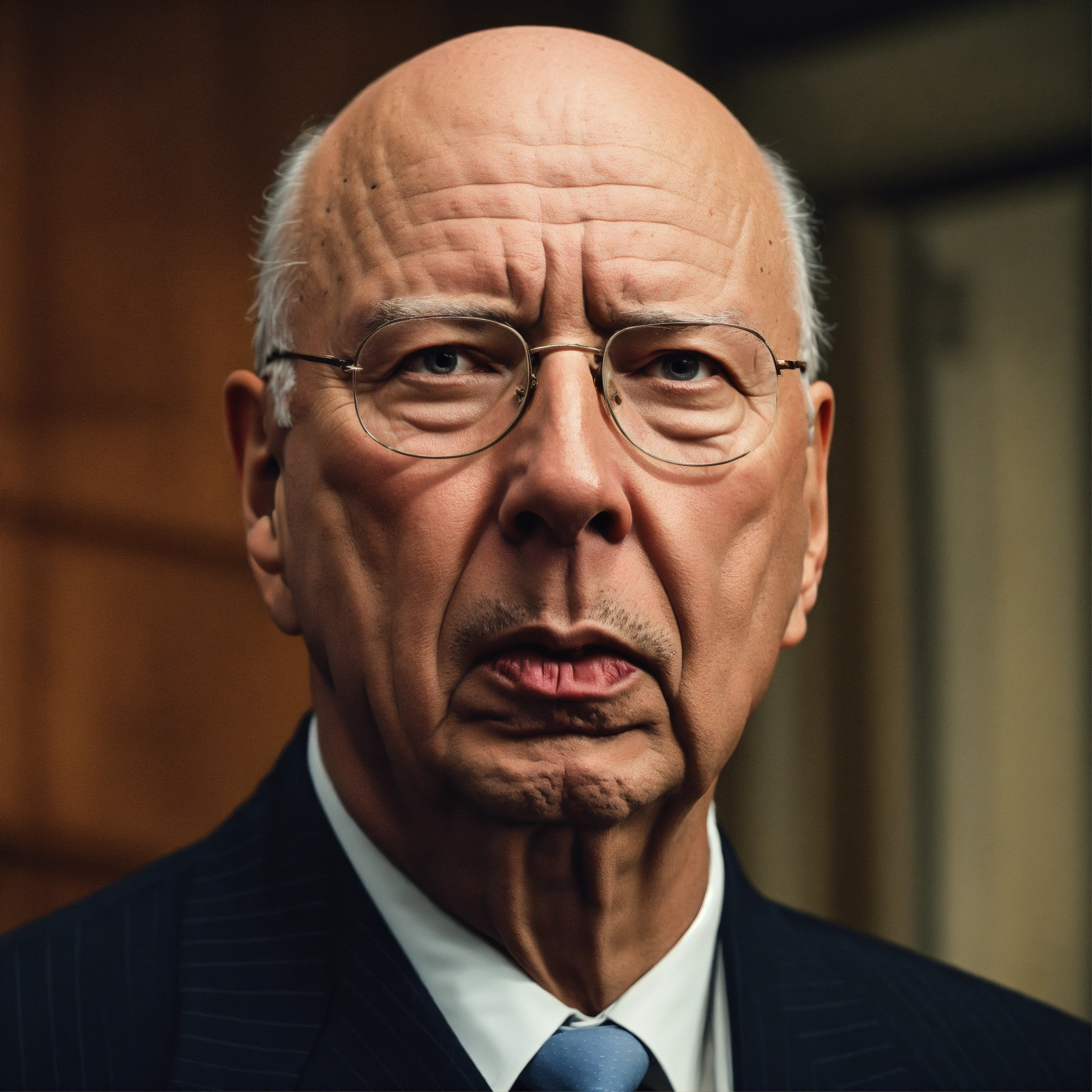 Very old klaus schwab, pointed upper lip, droopy eyes, closed eyes, long pointy head, mad, angry, yelling