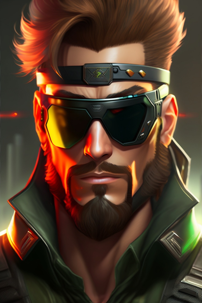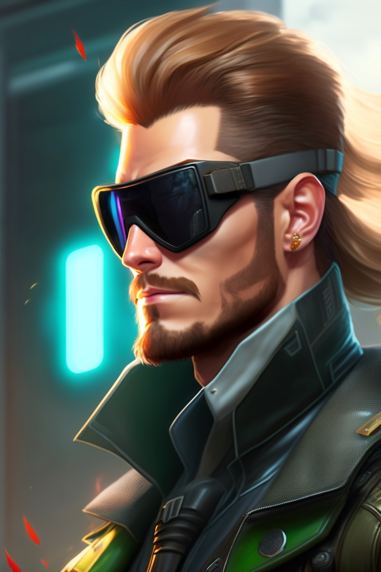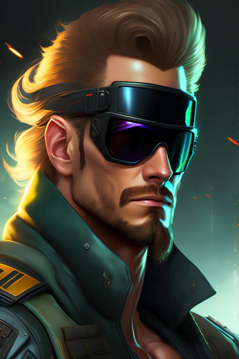 Big boss solid snake metal gear solid, digital painting, photo shoot, cyberpunk, black wide sunglasses