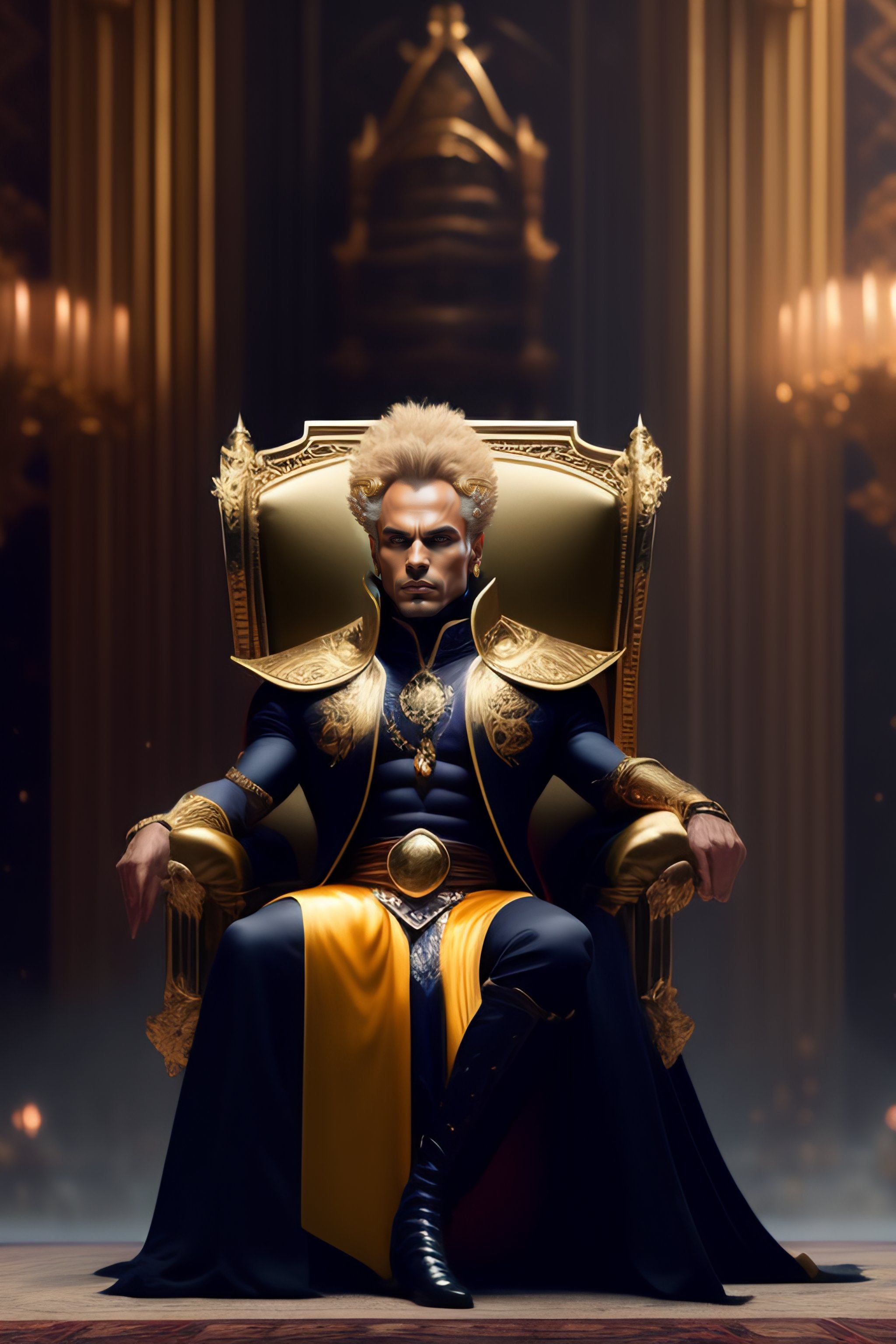 Dio from jojo's bizarre adventure sitting on a throne, matte painting by greg rutkowski, dim lighting