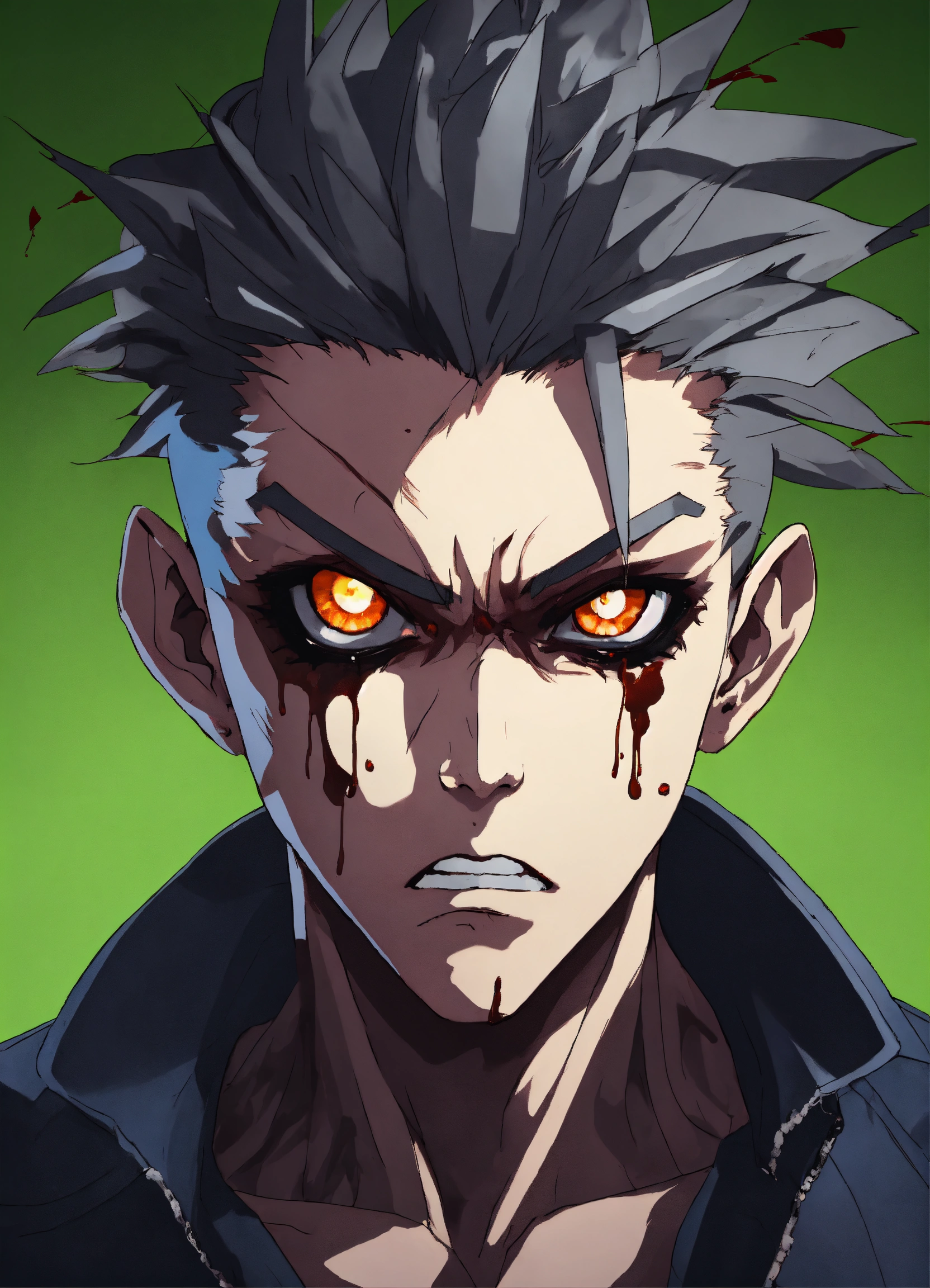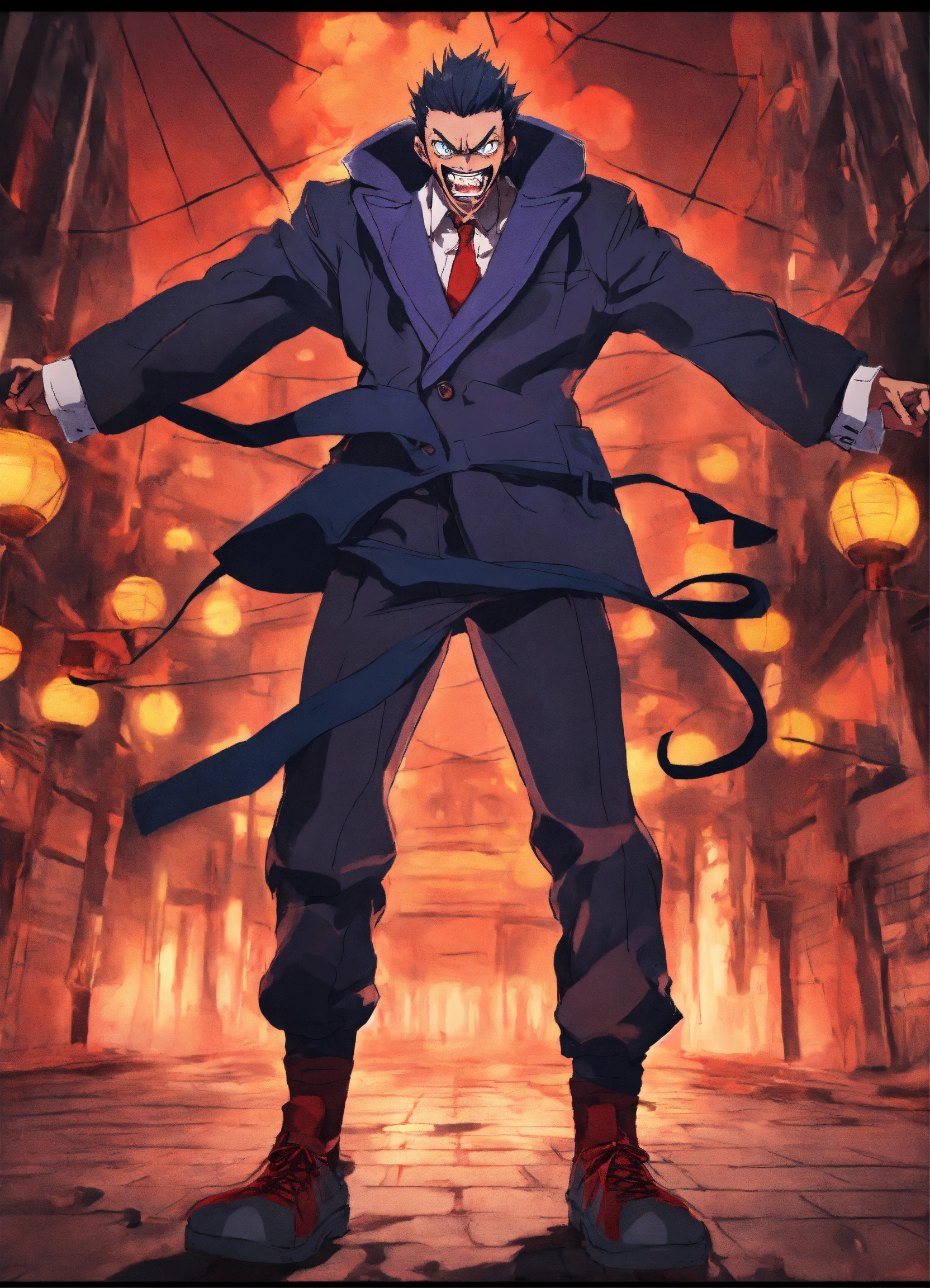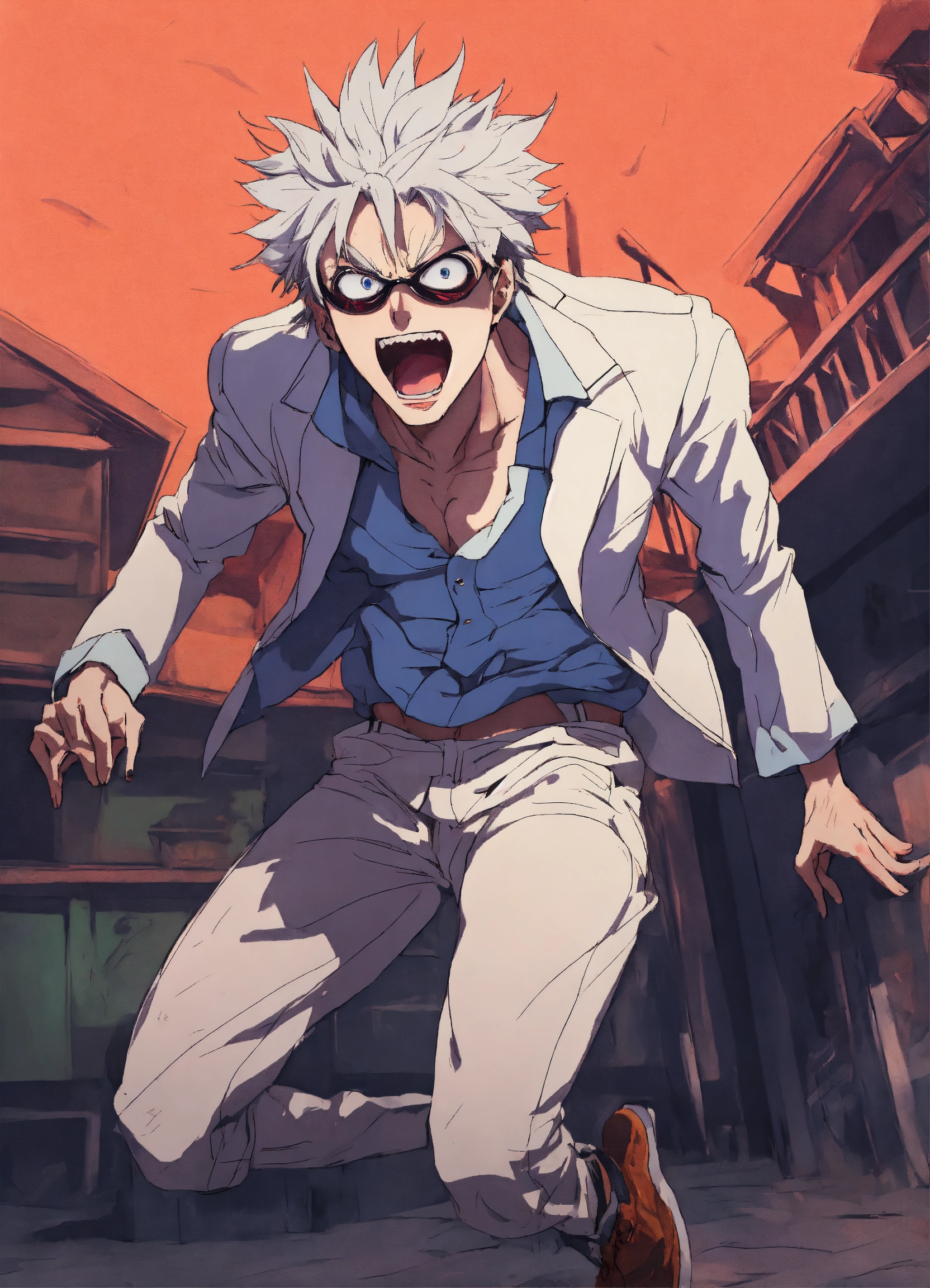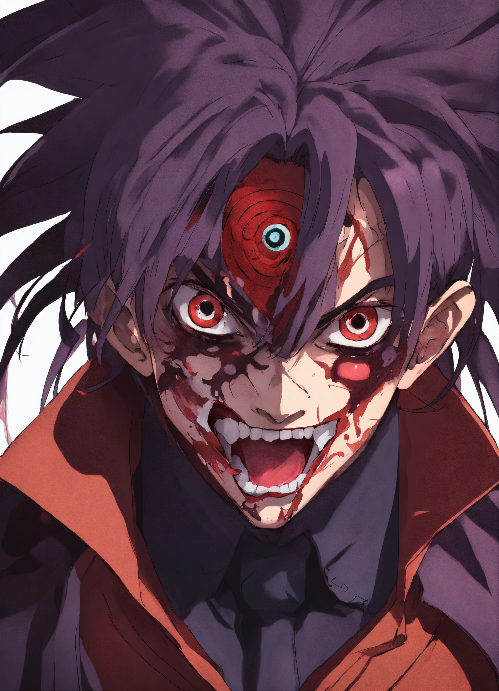 Maniac anime character with crazy eyes mad man pose