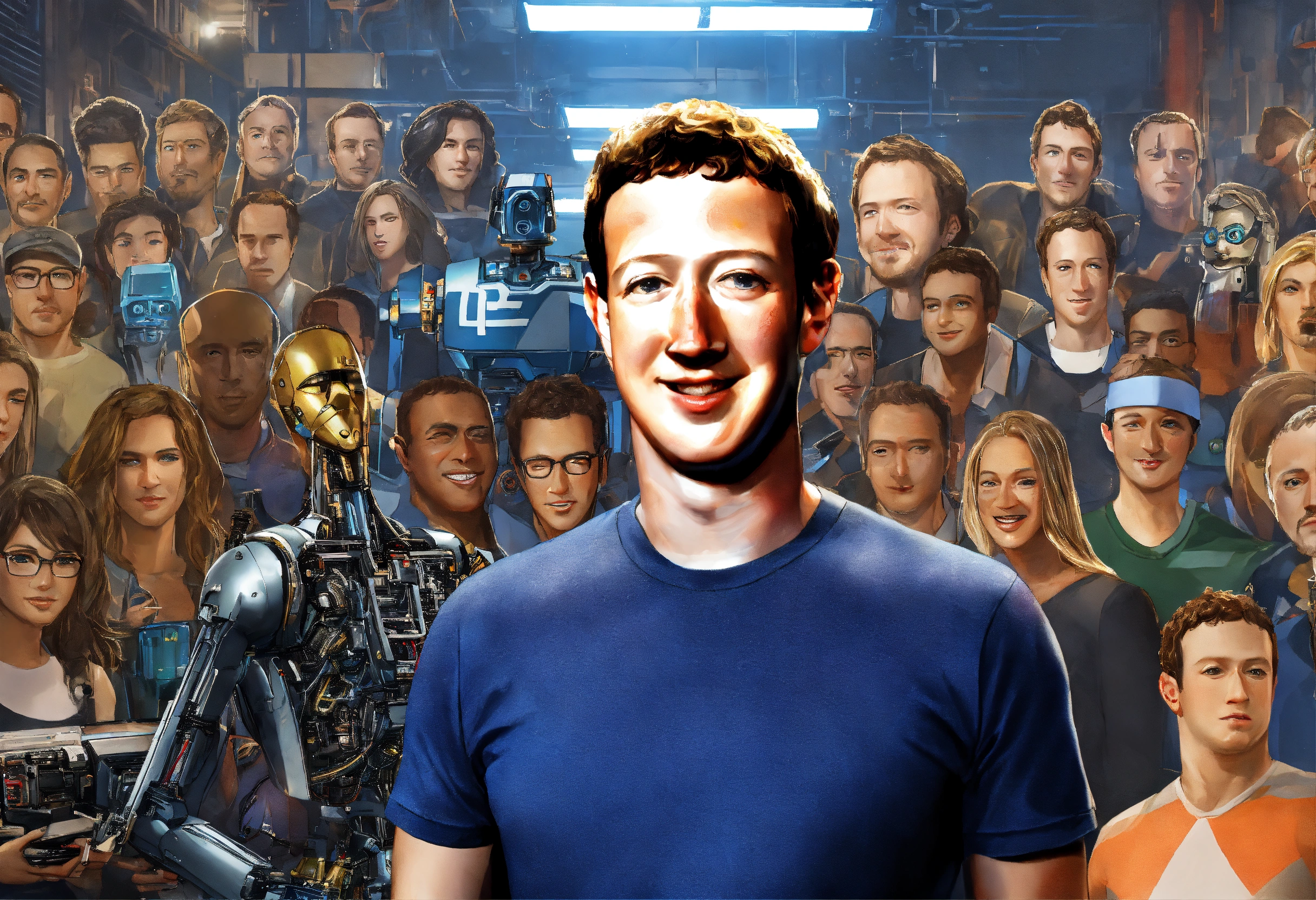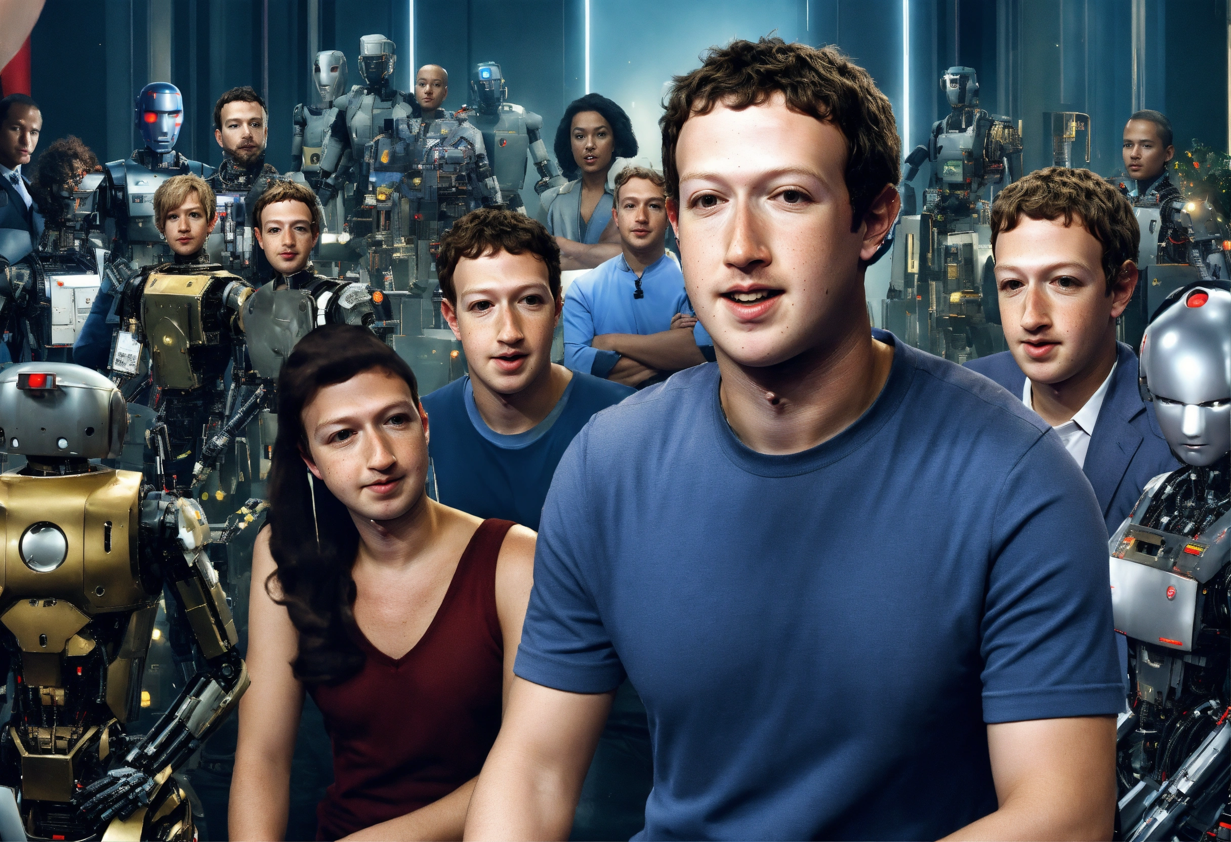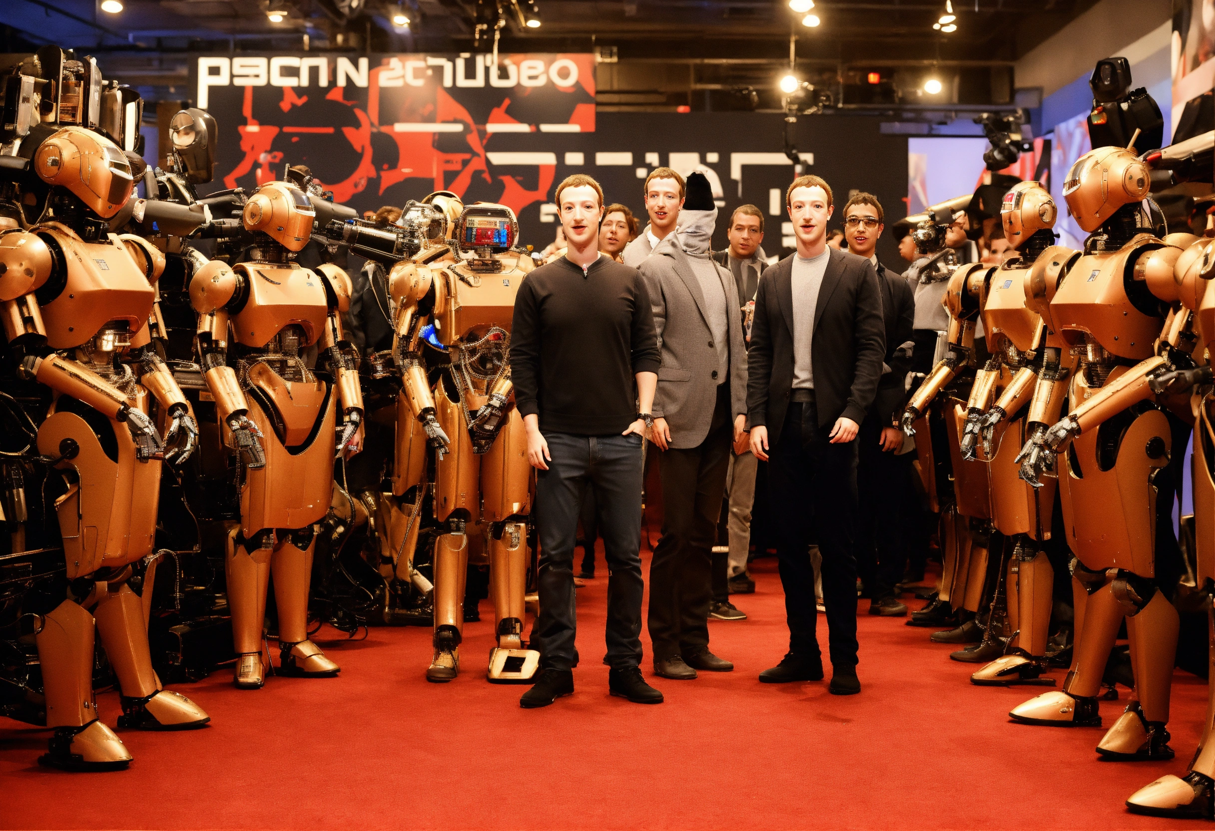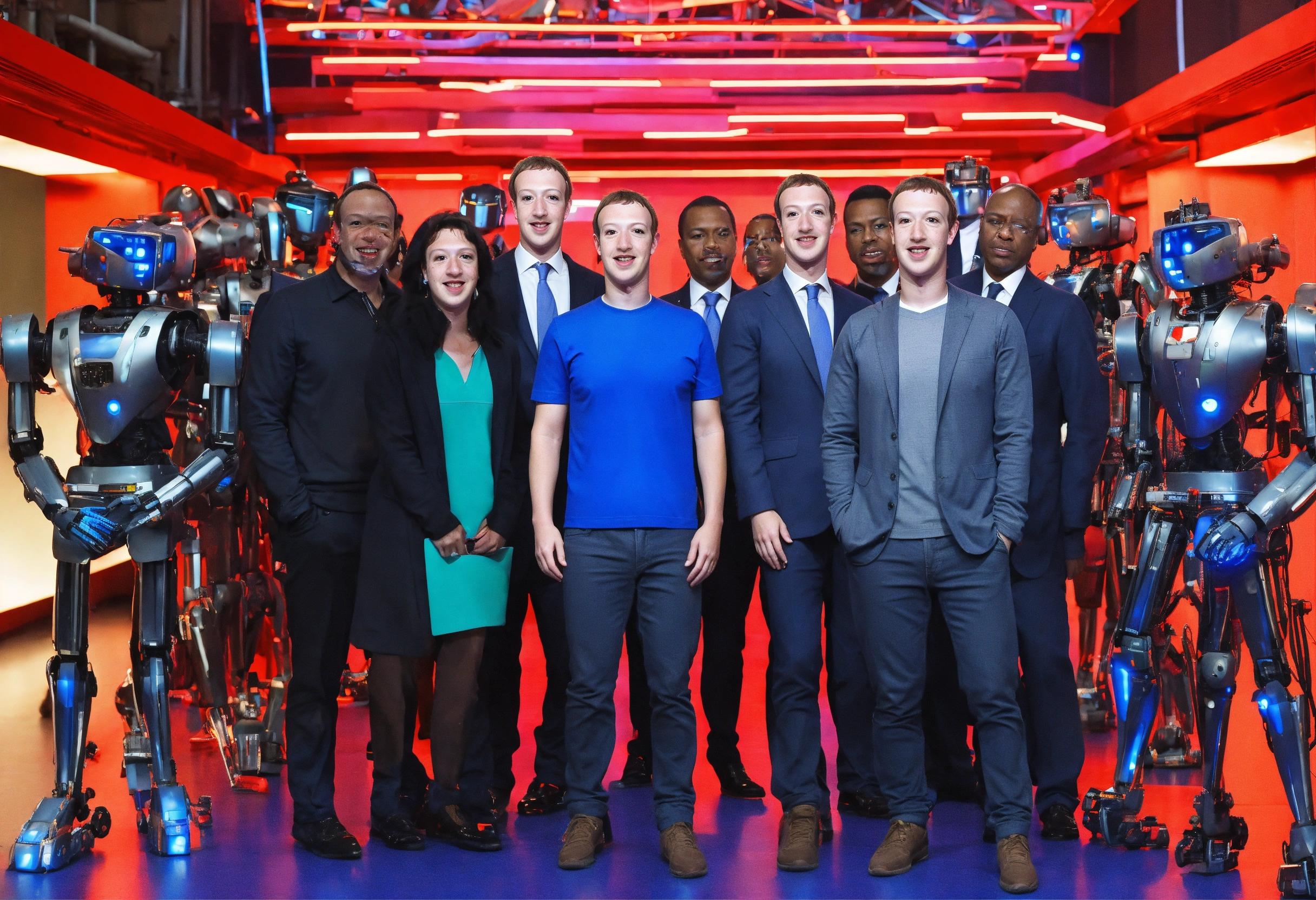 Meta's mark zuckerberg surrounded by celebrities and robots