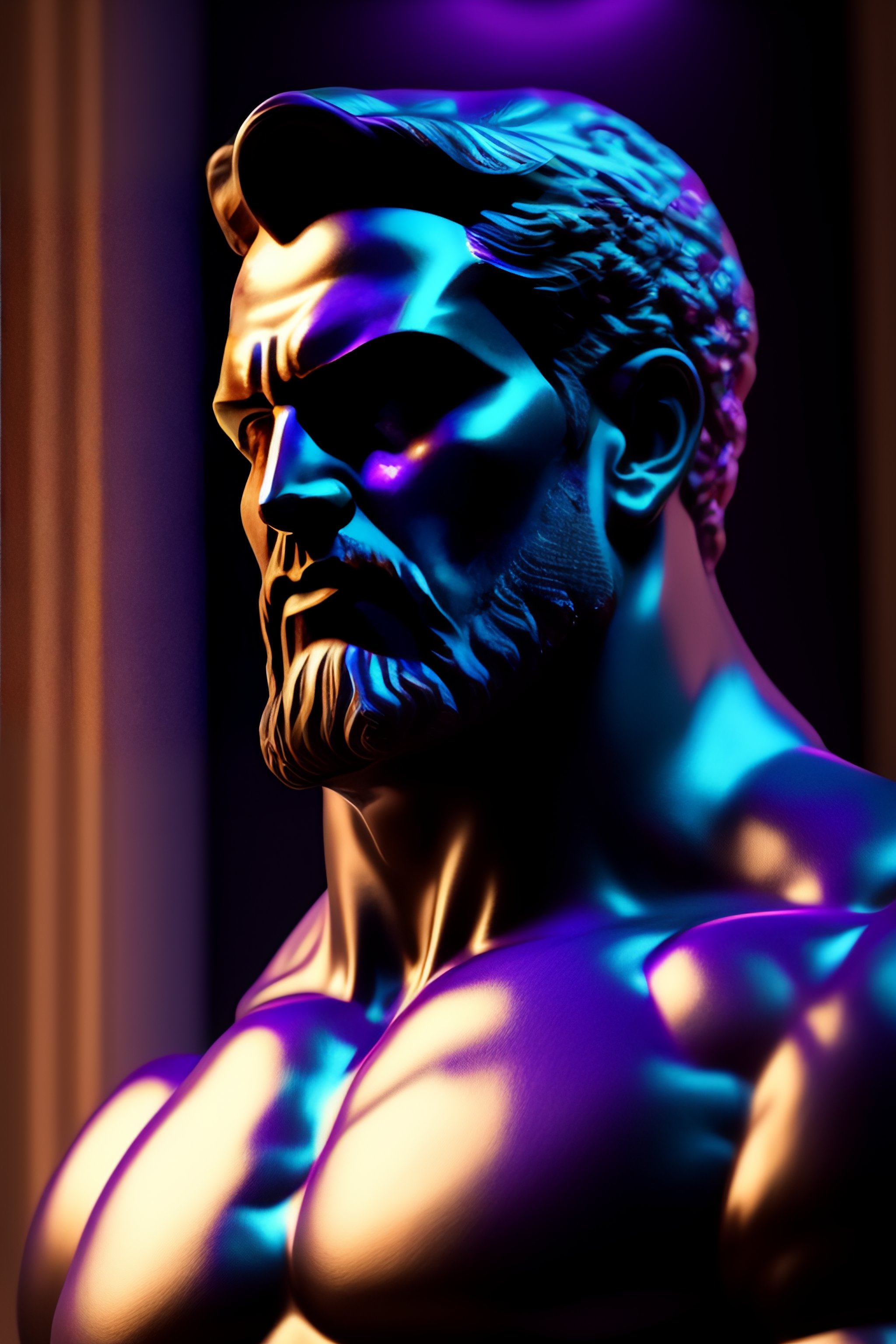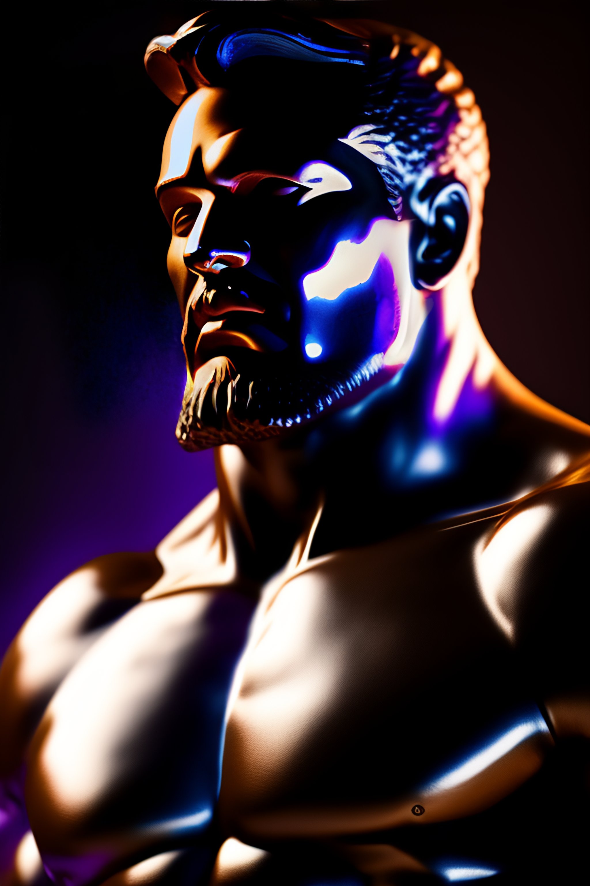 Thanos, hard lighting, hyperrealistic, photorealistic, beautiful sculpture by michelangelo, greek god statue