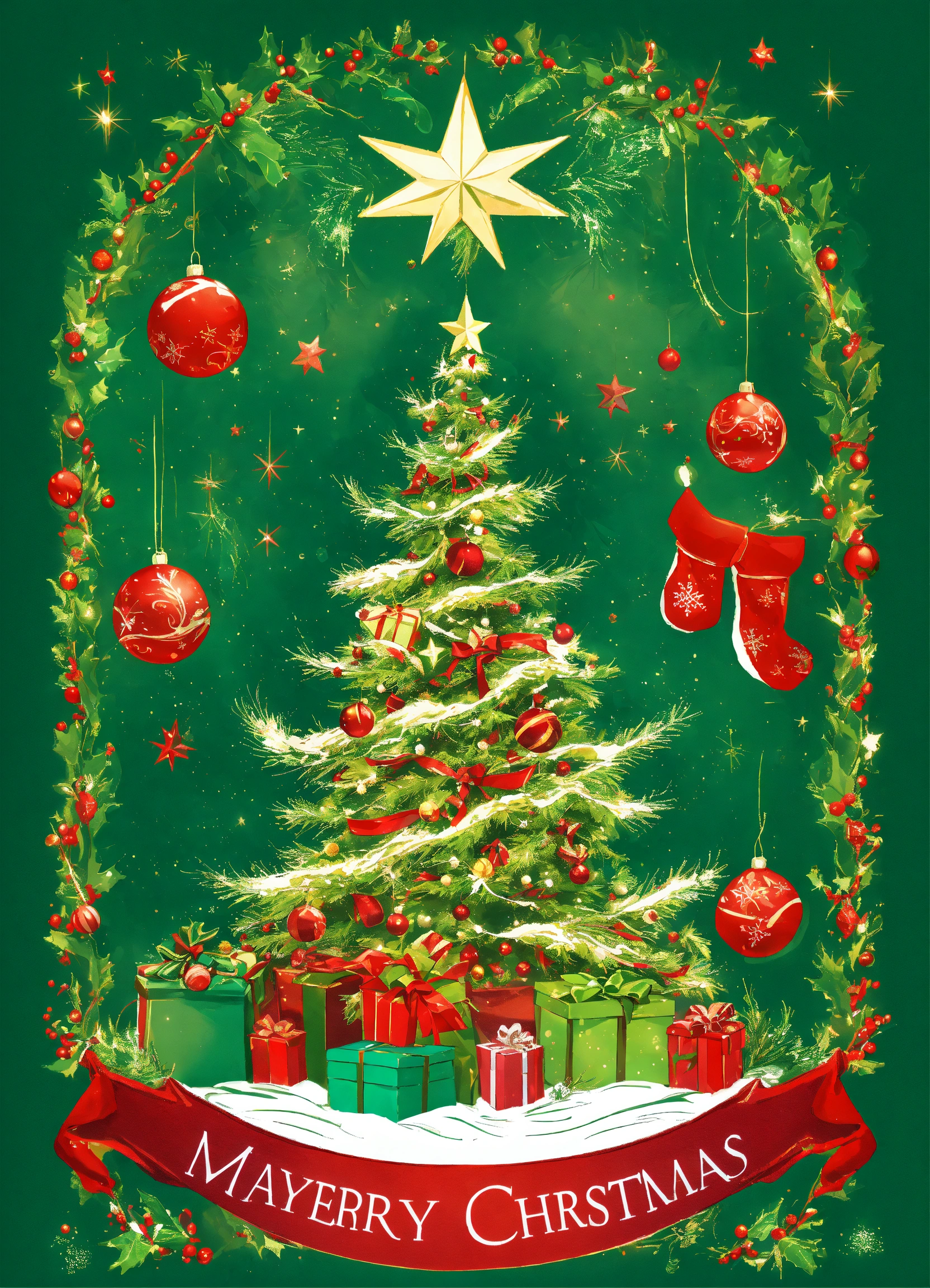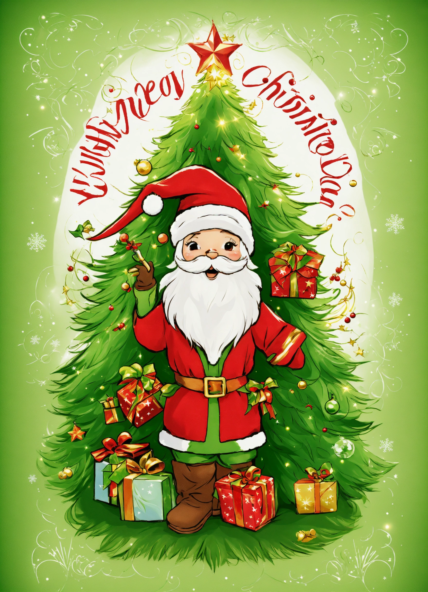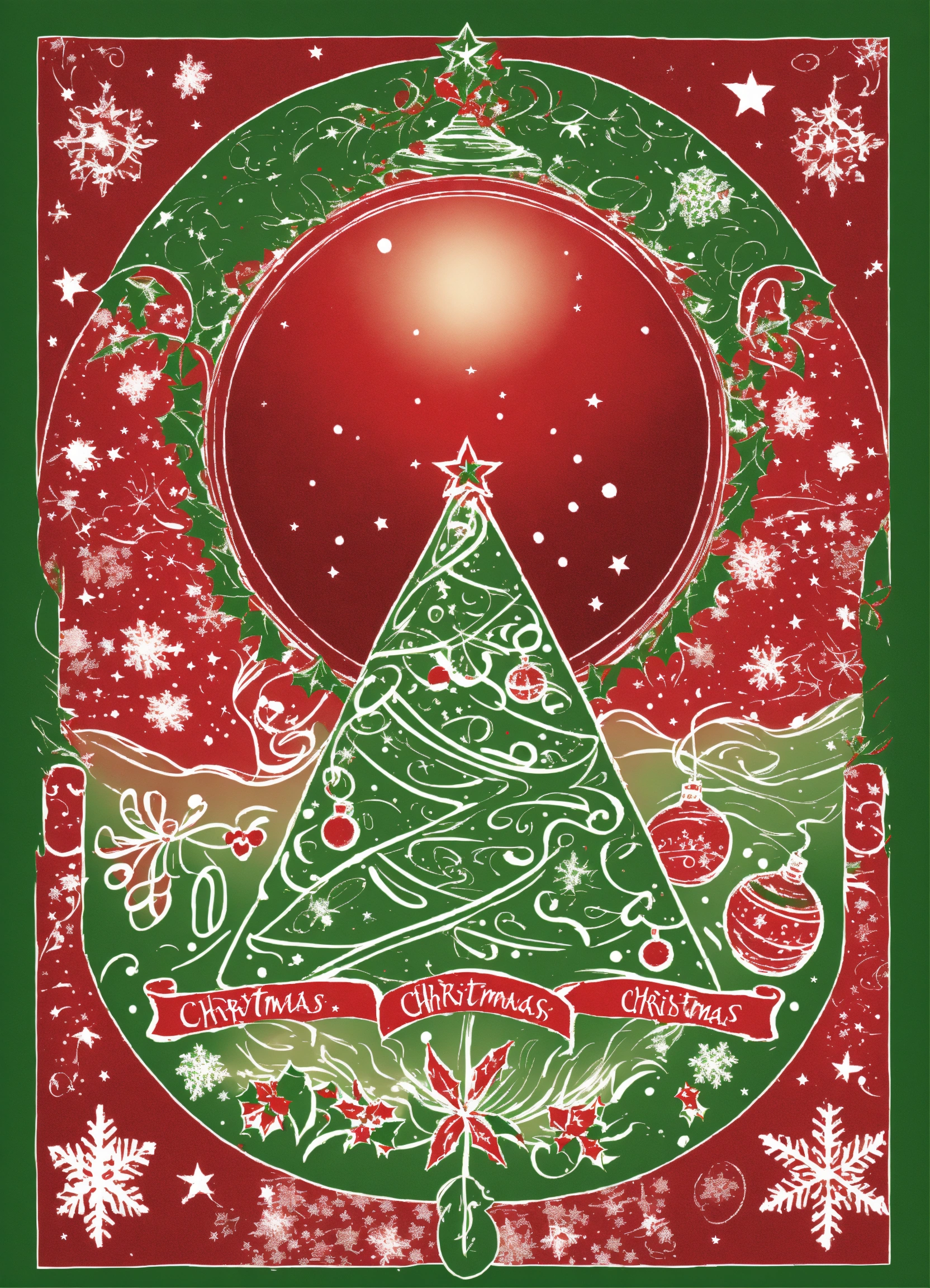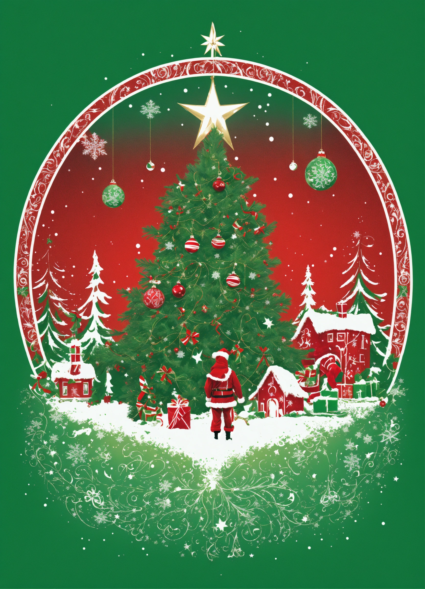 T shirt graphic image of a mystical and magical christmas, green, red and white with no background images