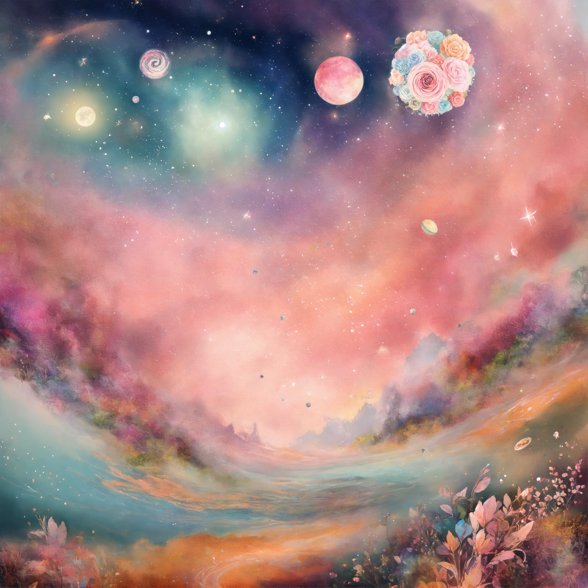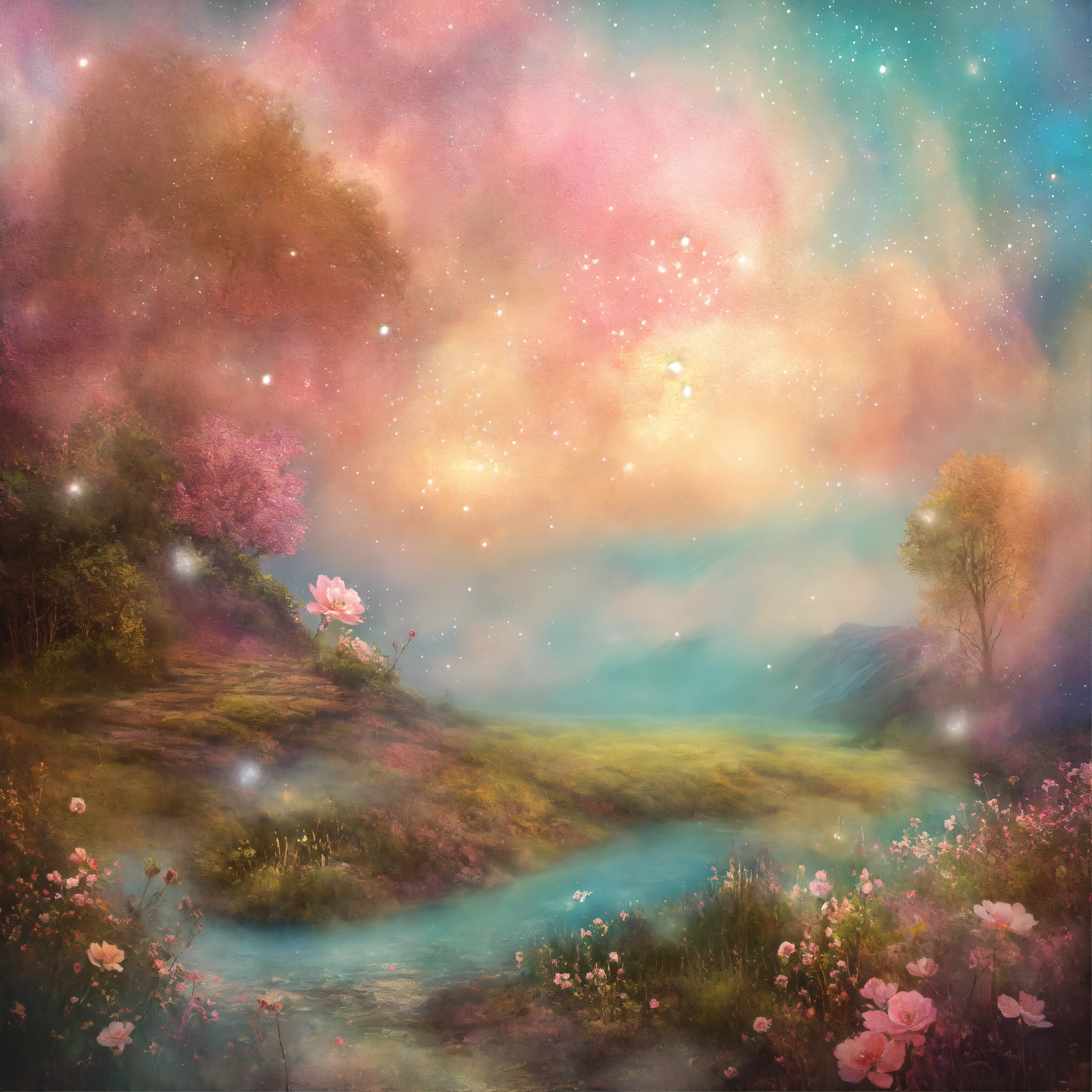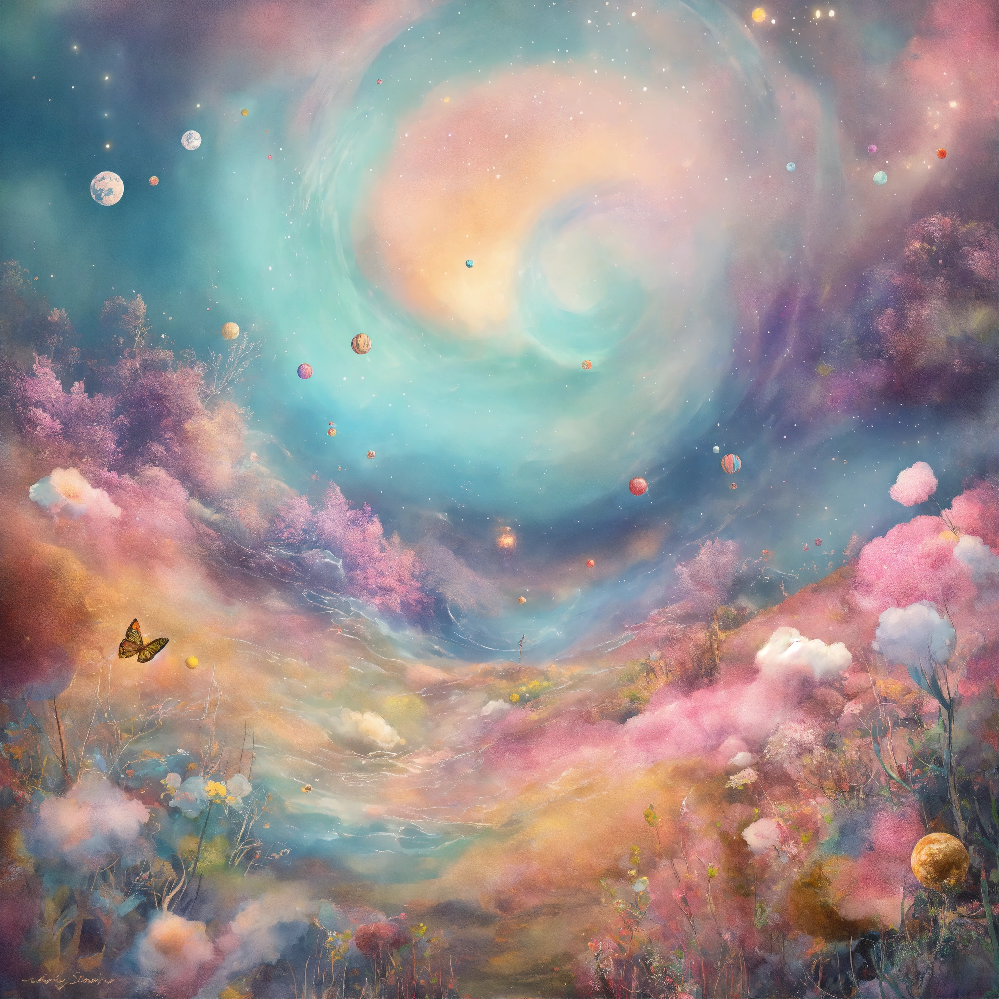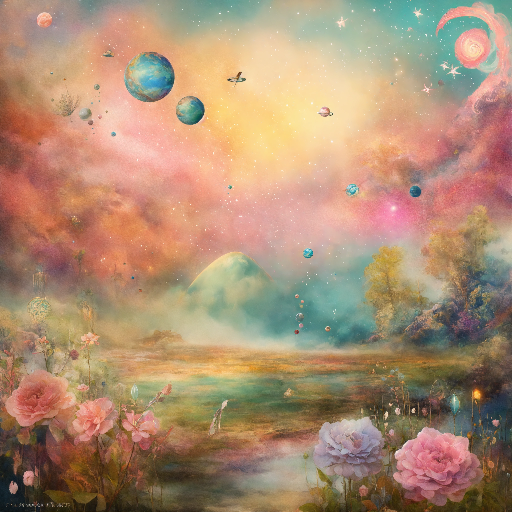 Shabby chic dreamy mist pastel junk journals kreatures on other planets swirling magical fairytale abstract art style