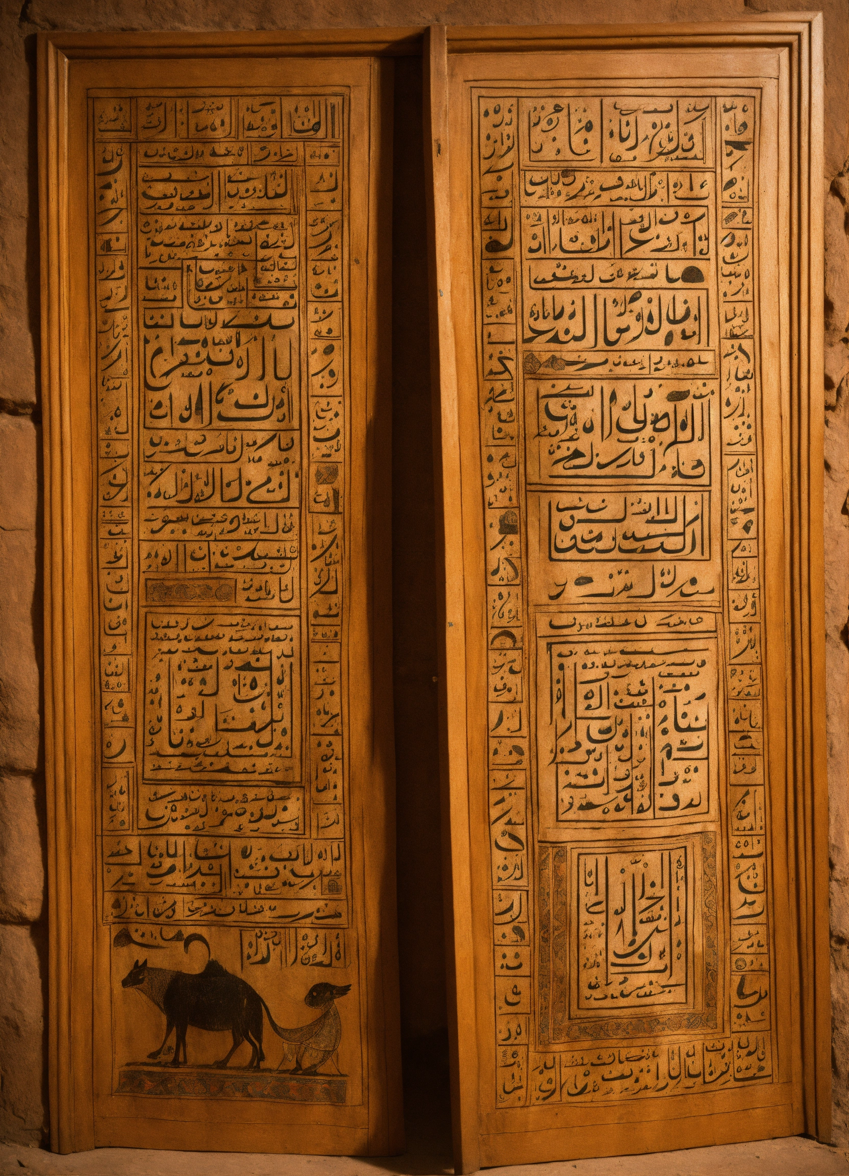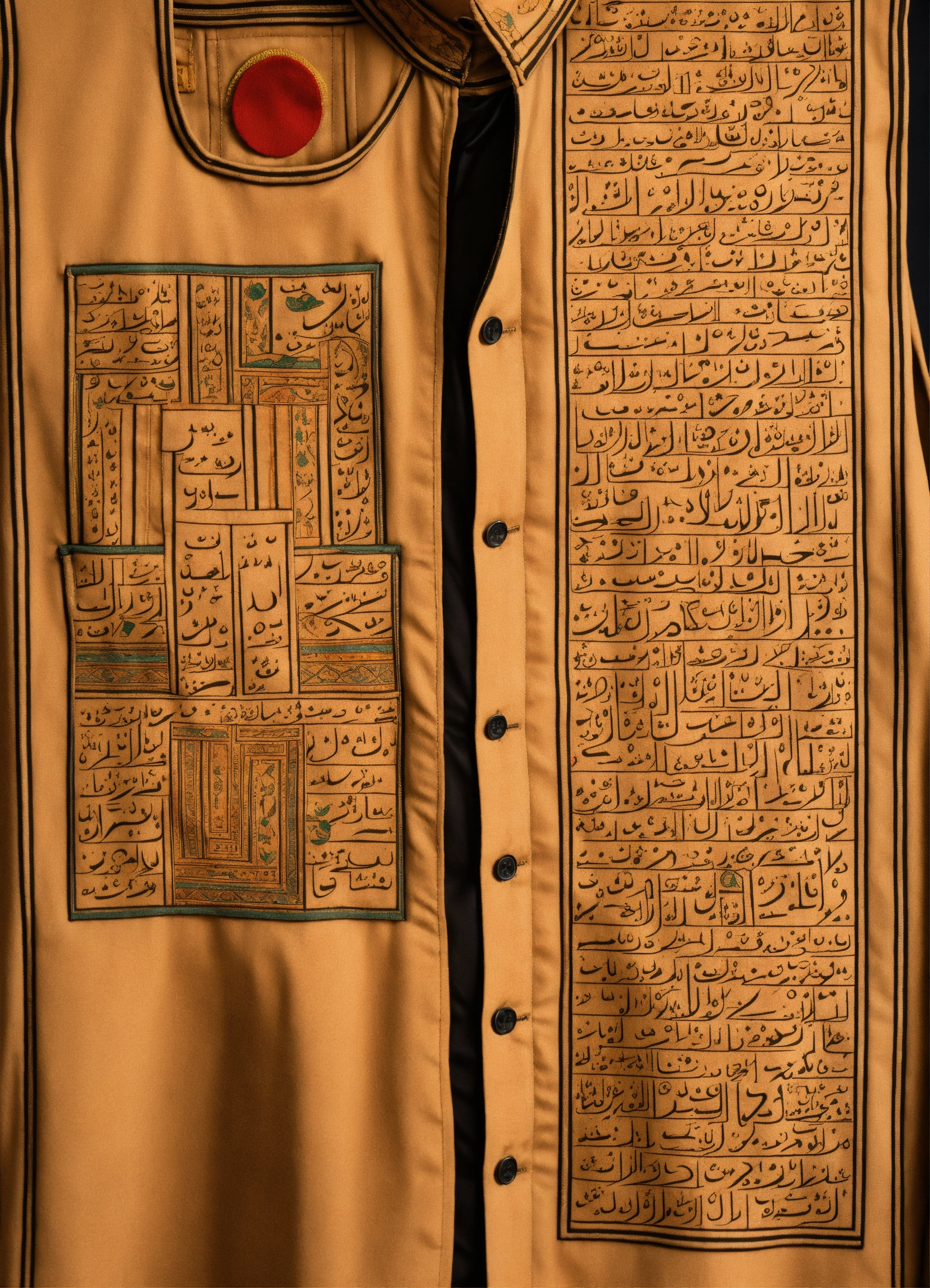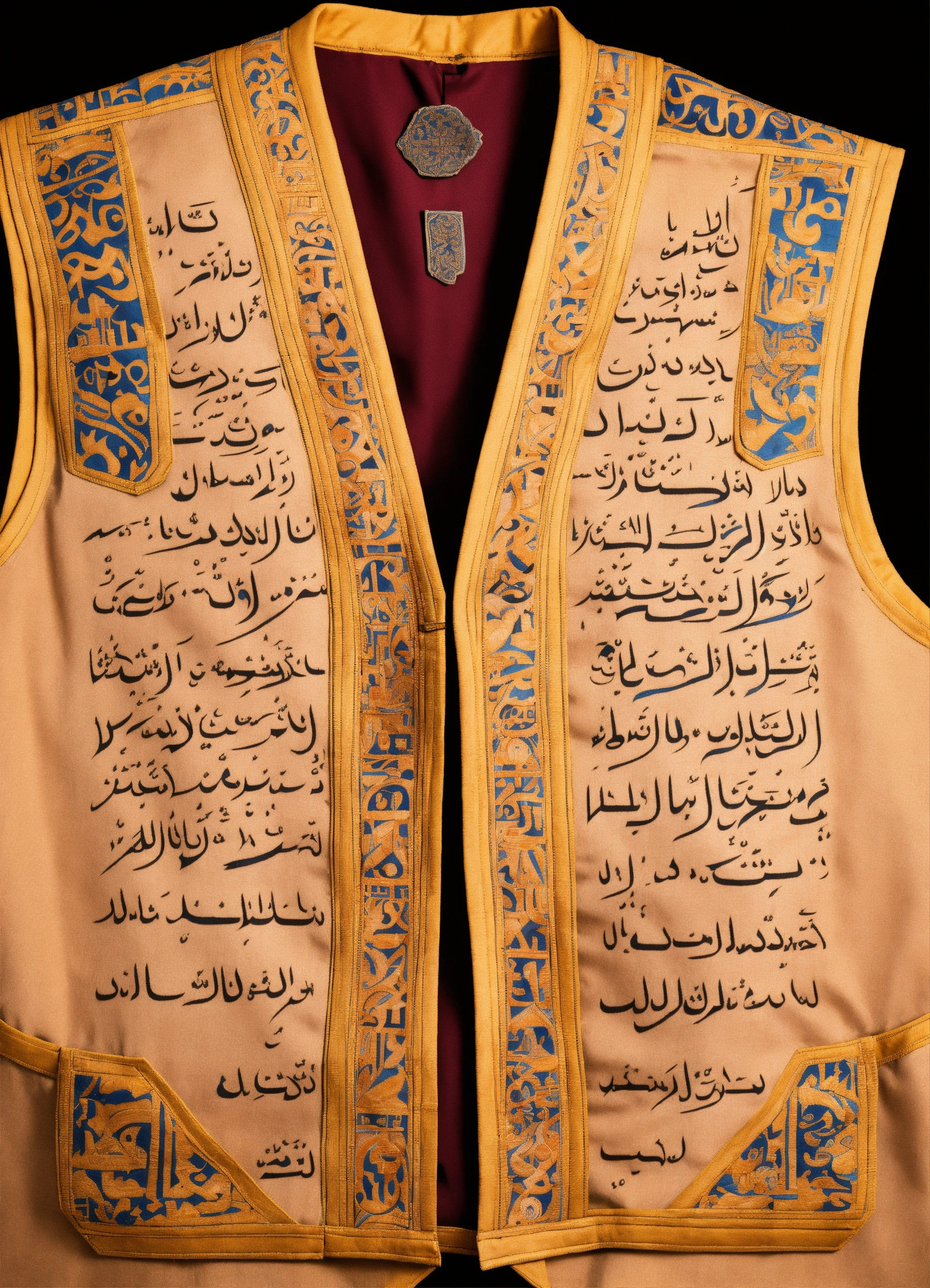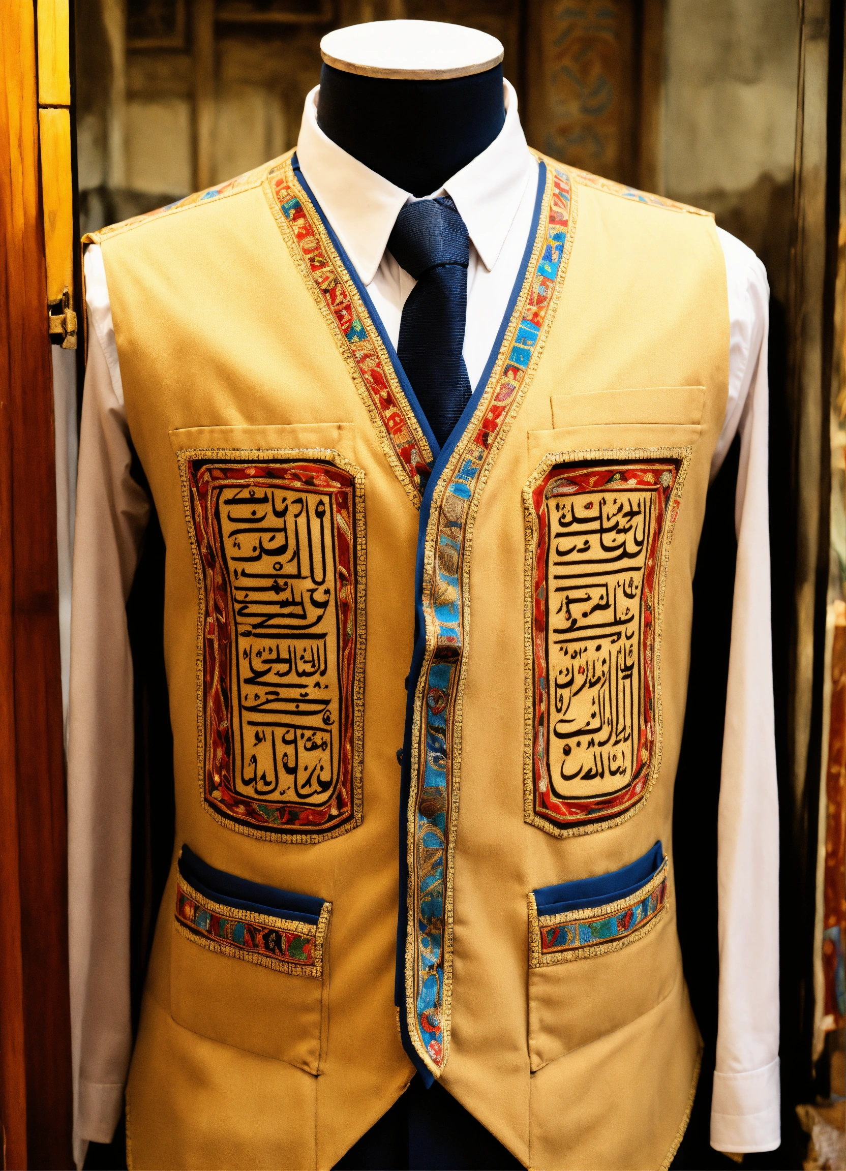A special design for the tour guide a waistcoat with a pocket on it, with drawings of aramaic letters added in dadan and lihyan in the city of al-ula.