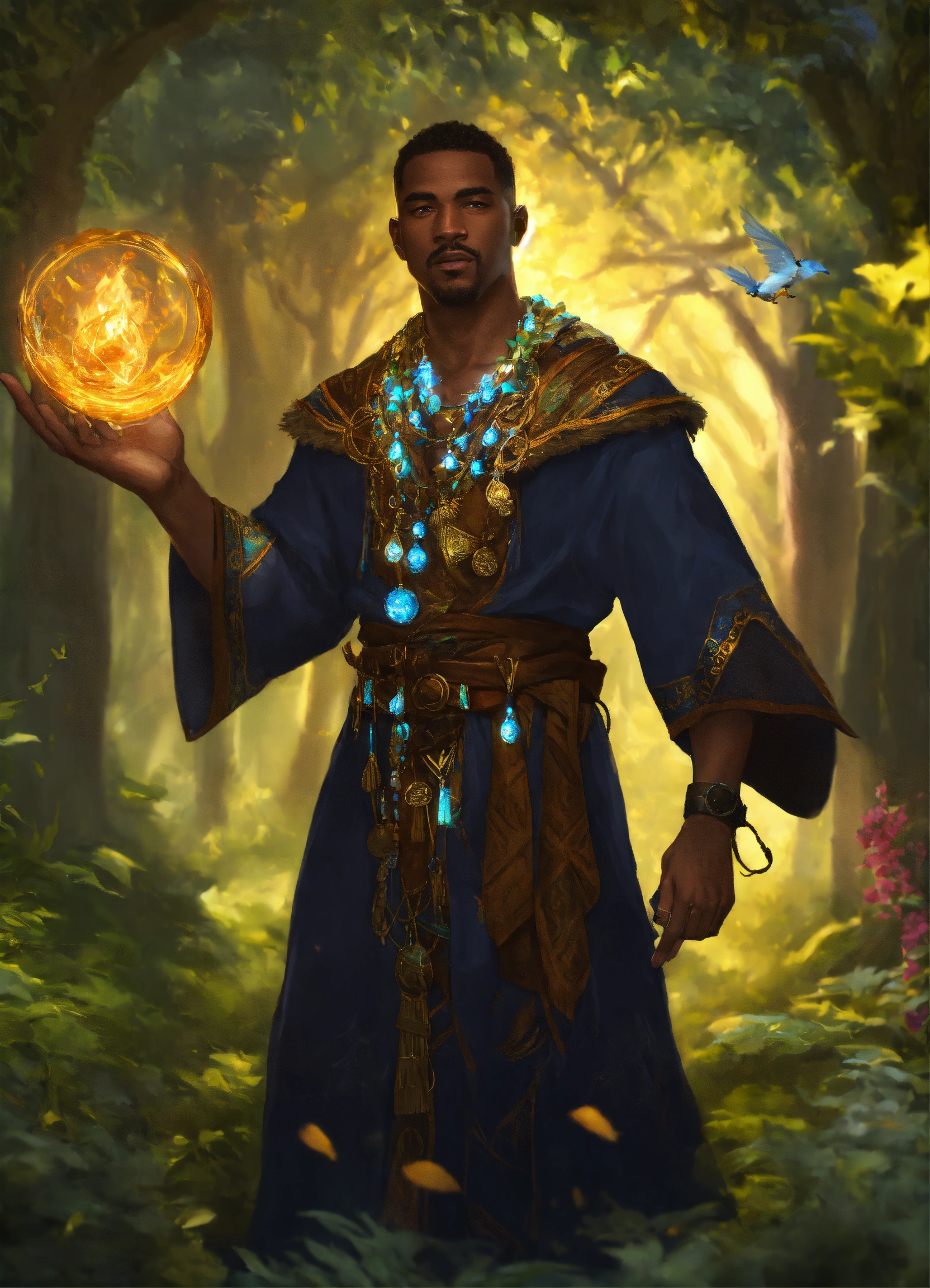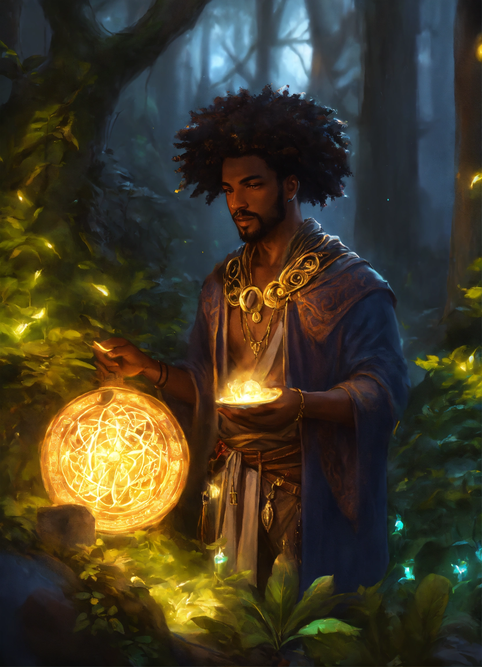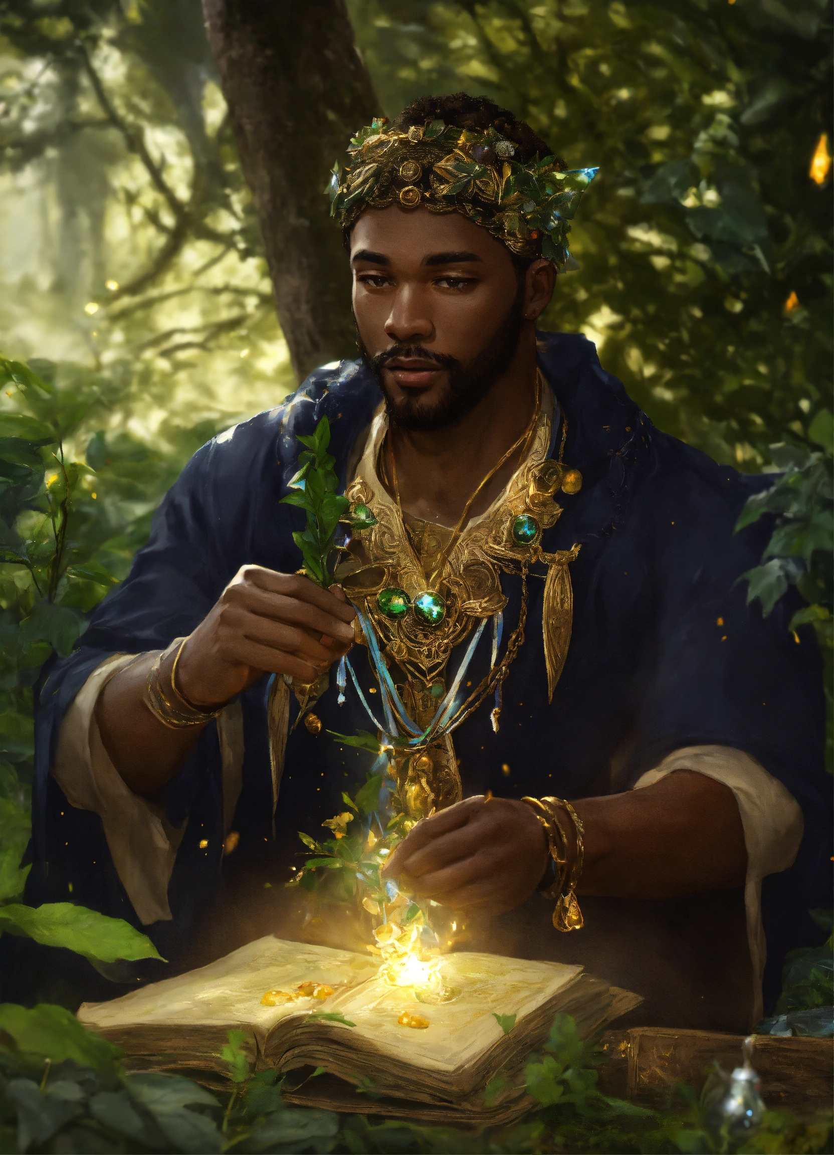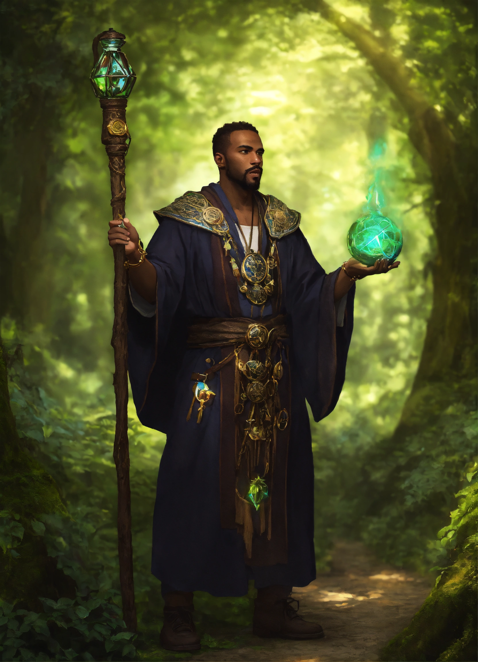 Black guy druid using magic