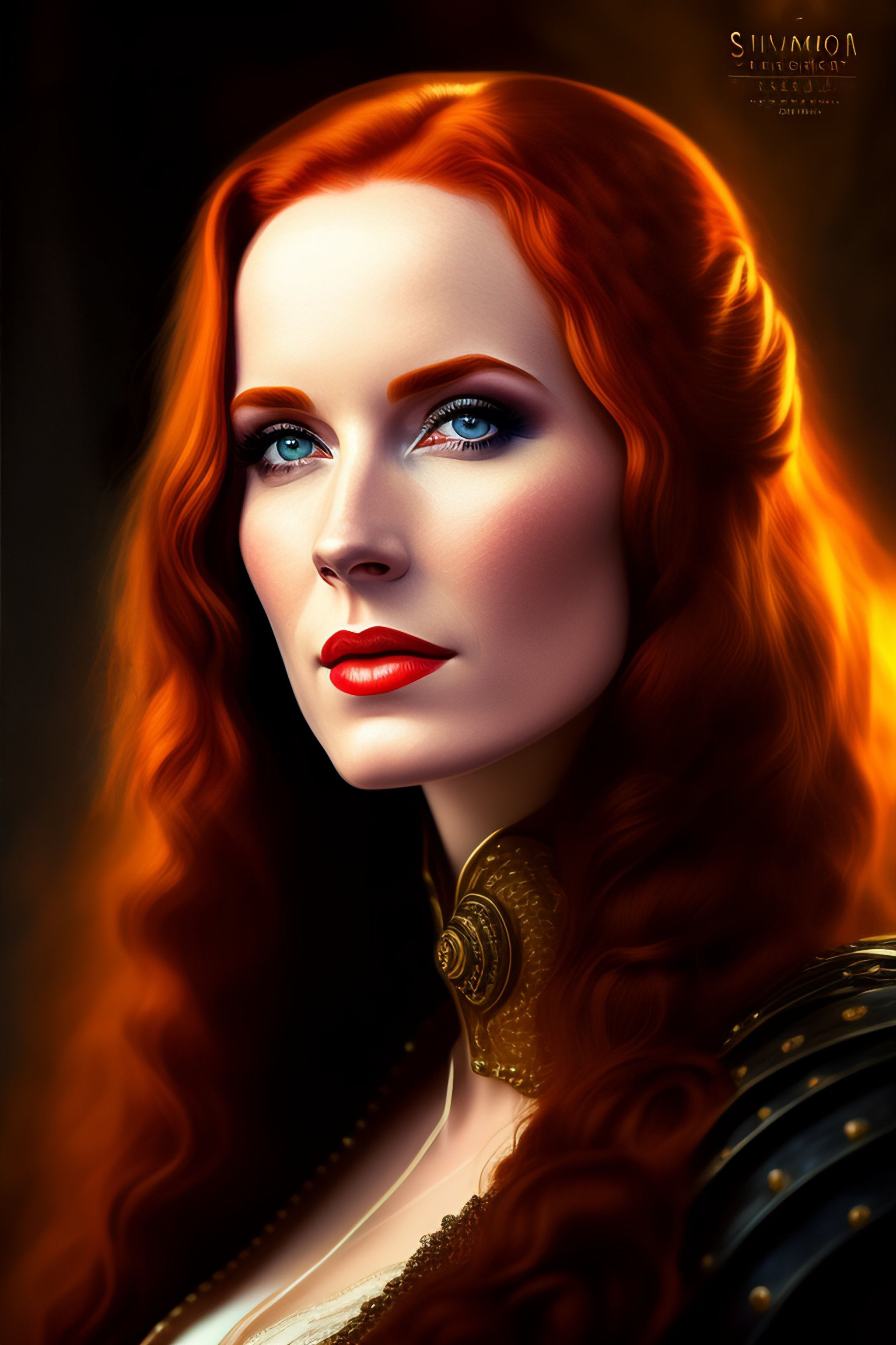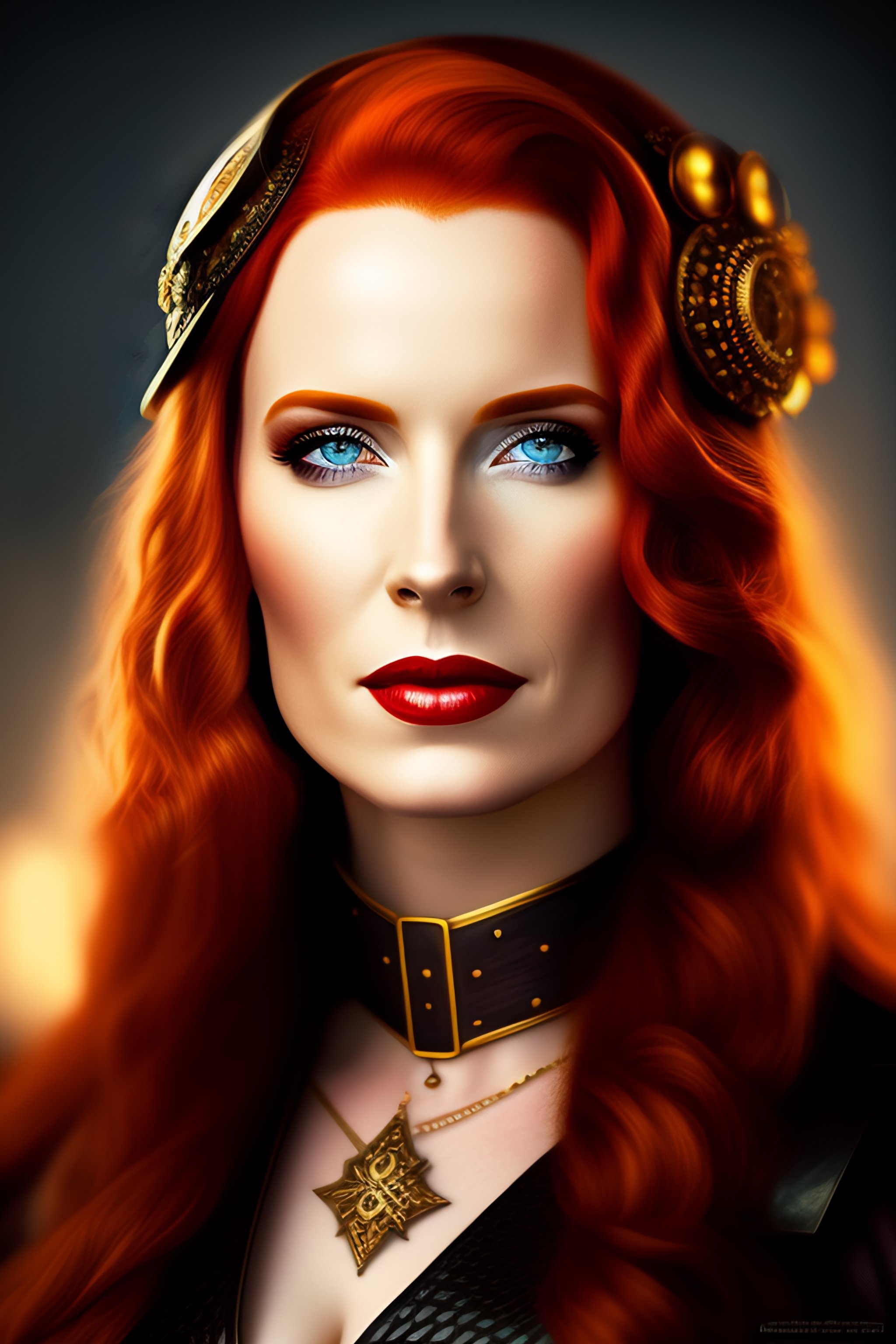 Simone simons, epica, realistic detailed, beautiful gorgeous, steampunk style, portrait, 8k, night city, art by gustave courbet