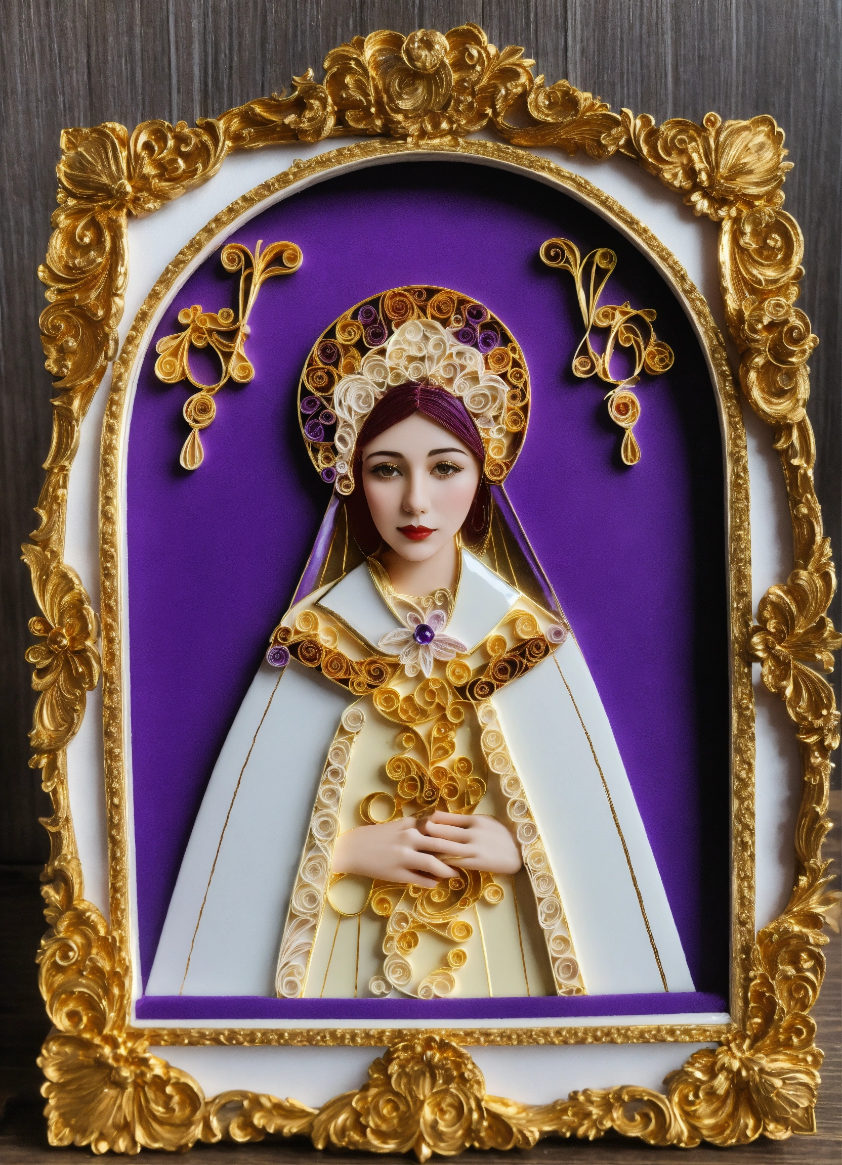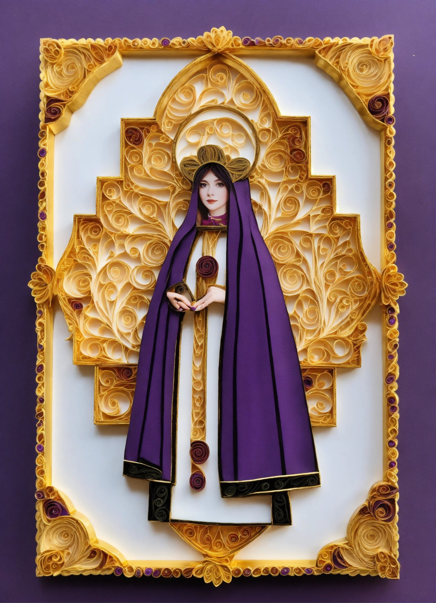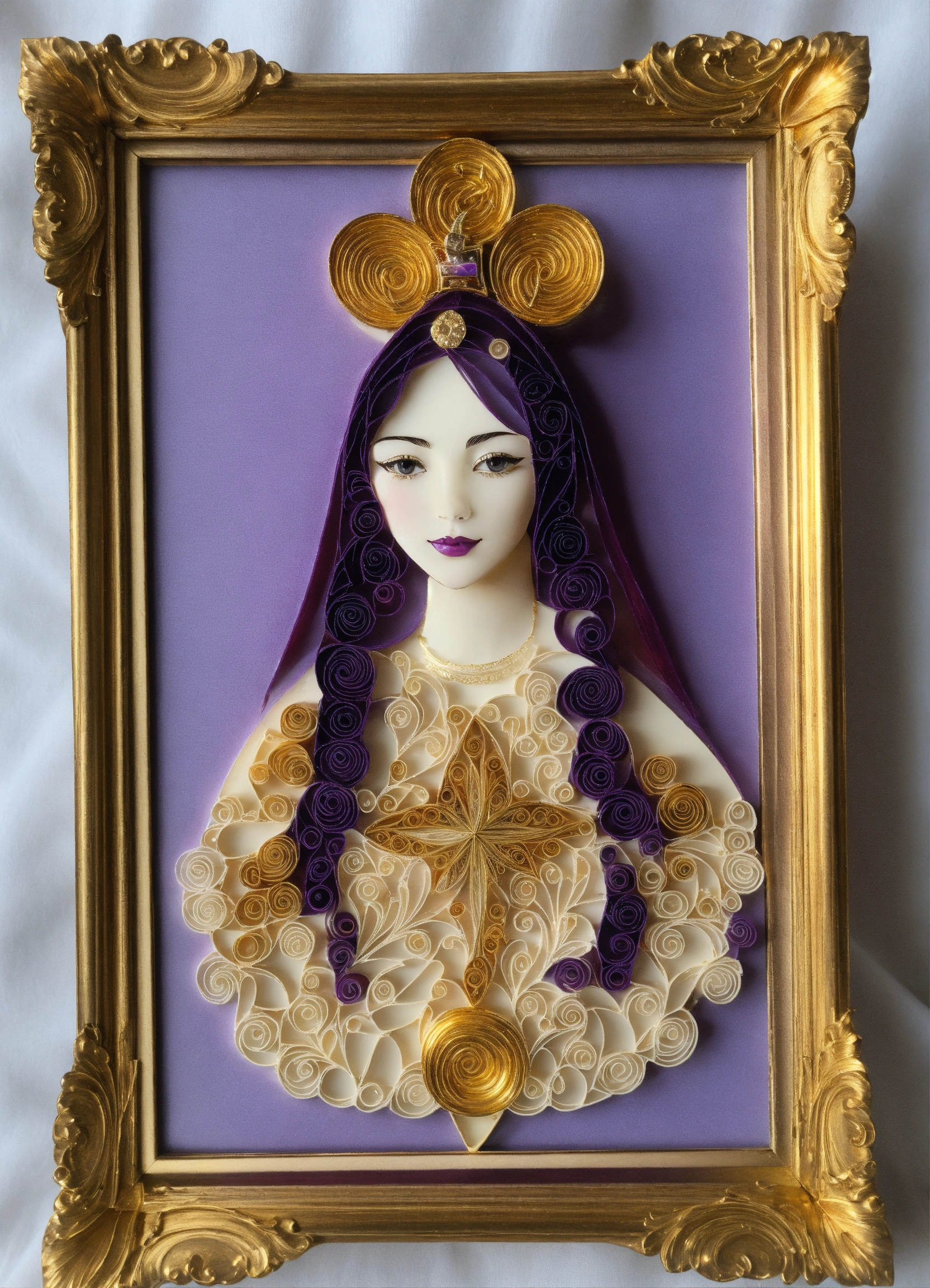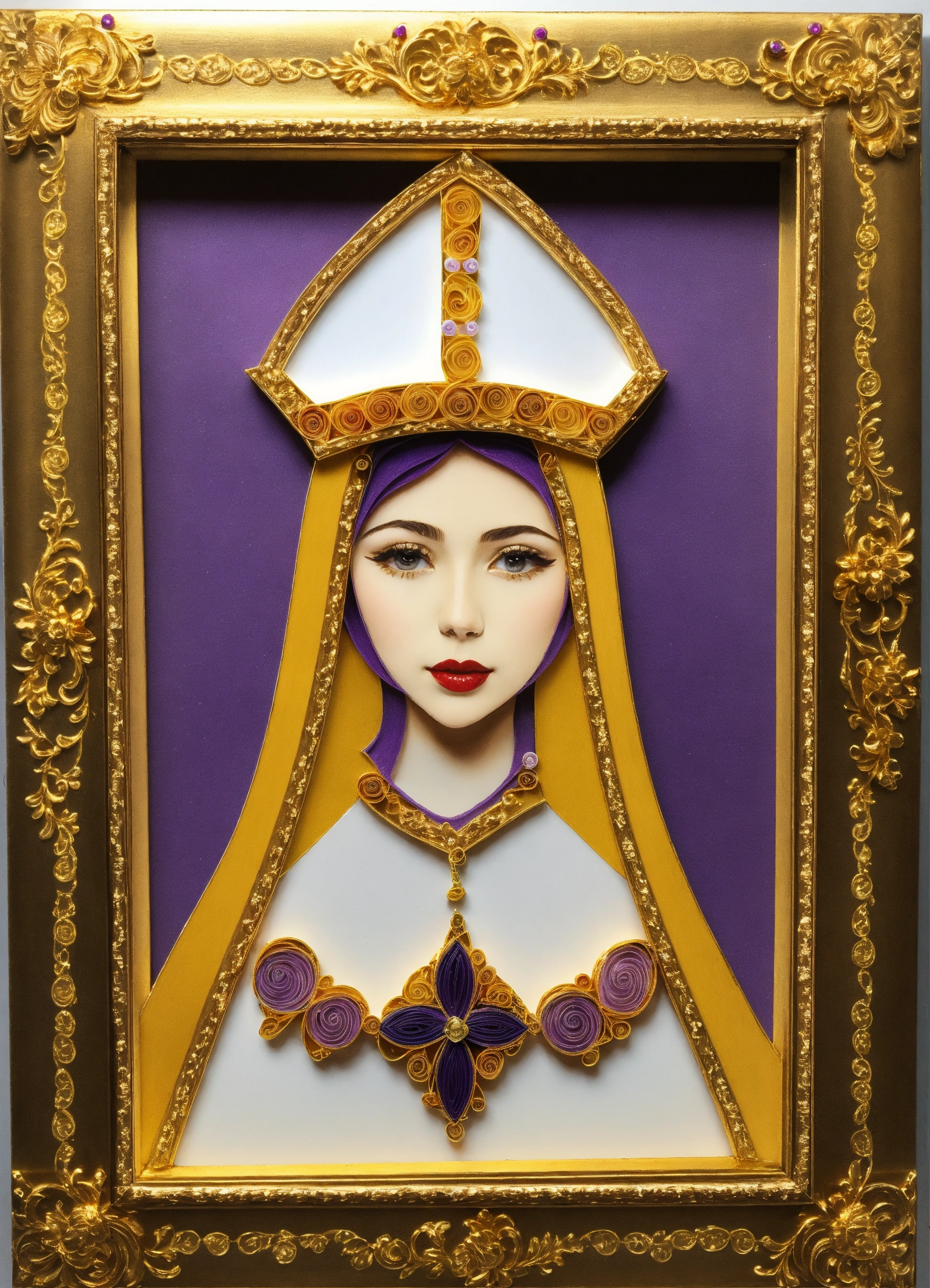 Beautiful woman bishop quilling white purple fancy gold frame