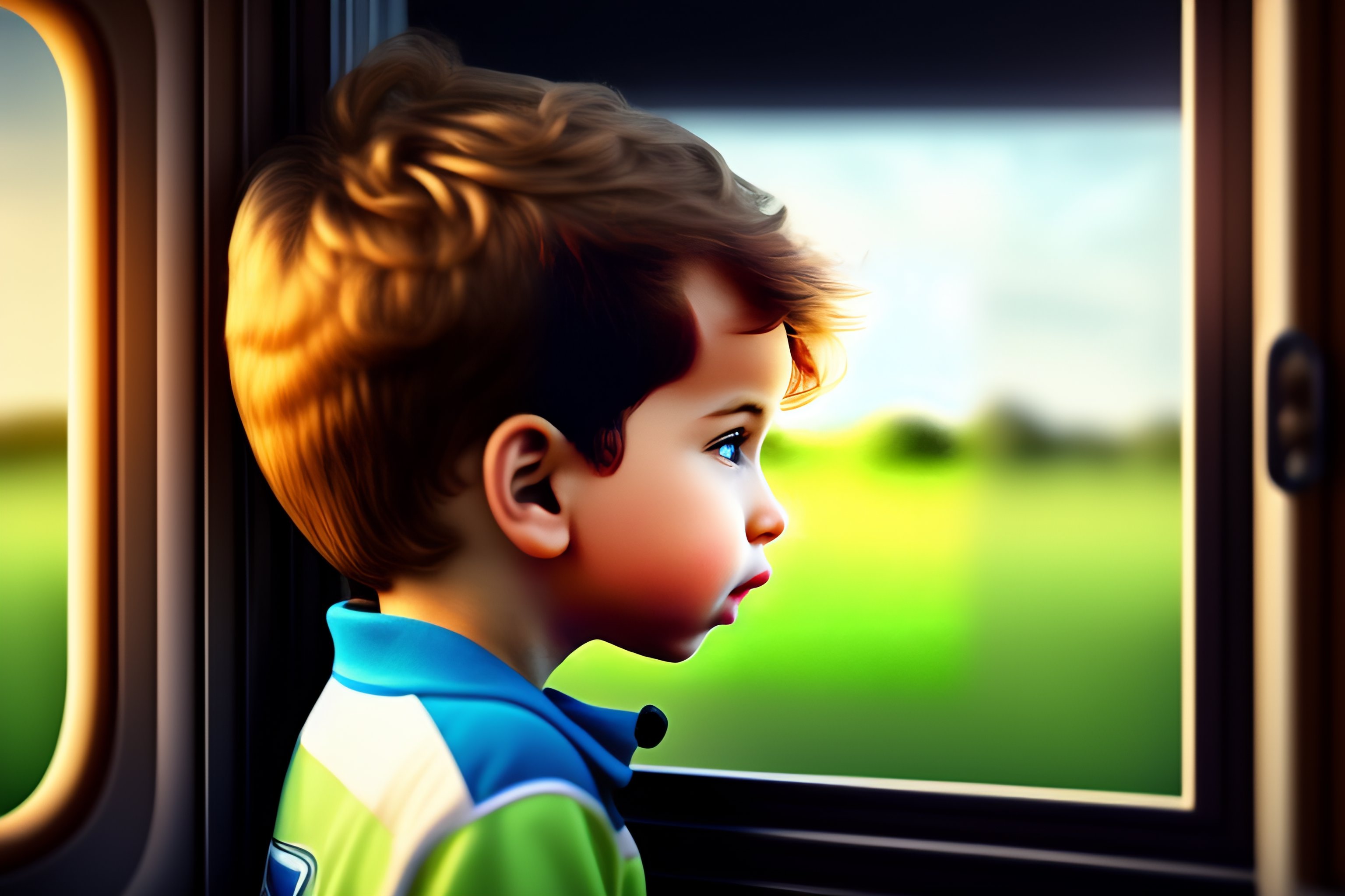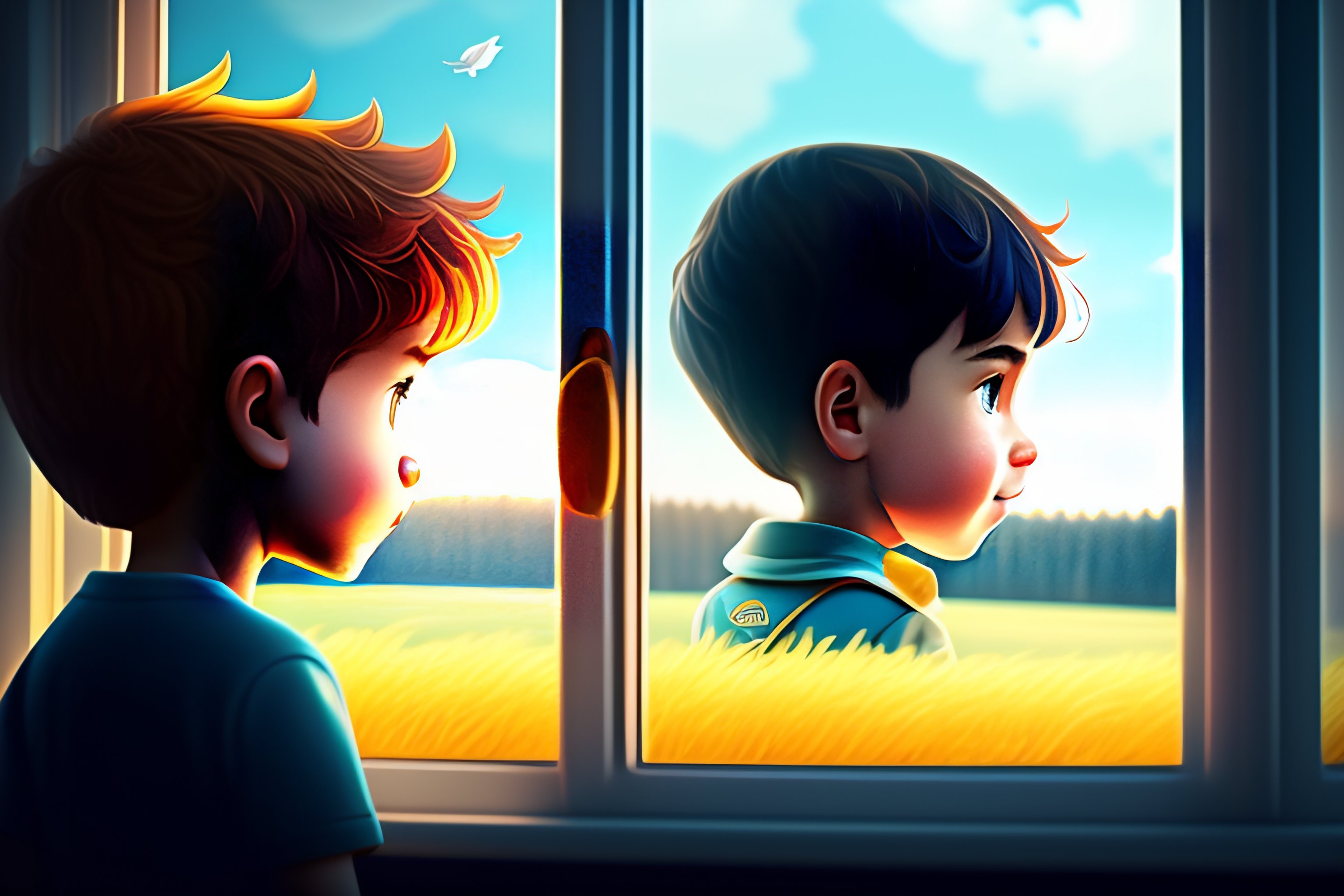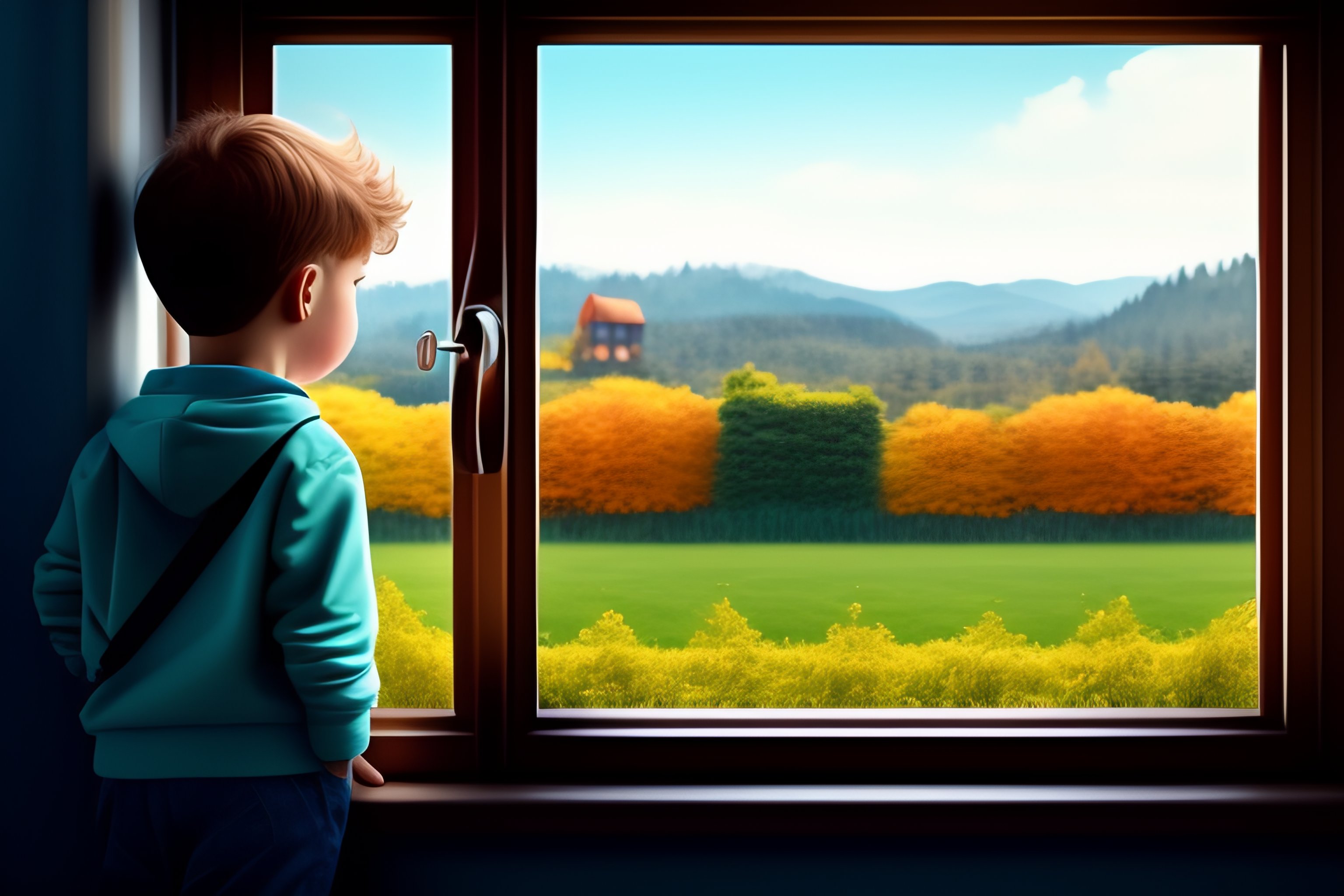 Cartoon boy looking out side of window
