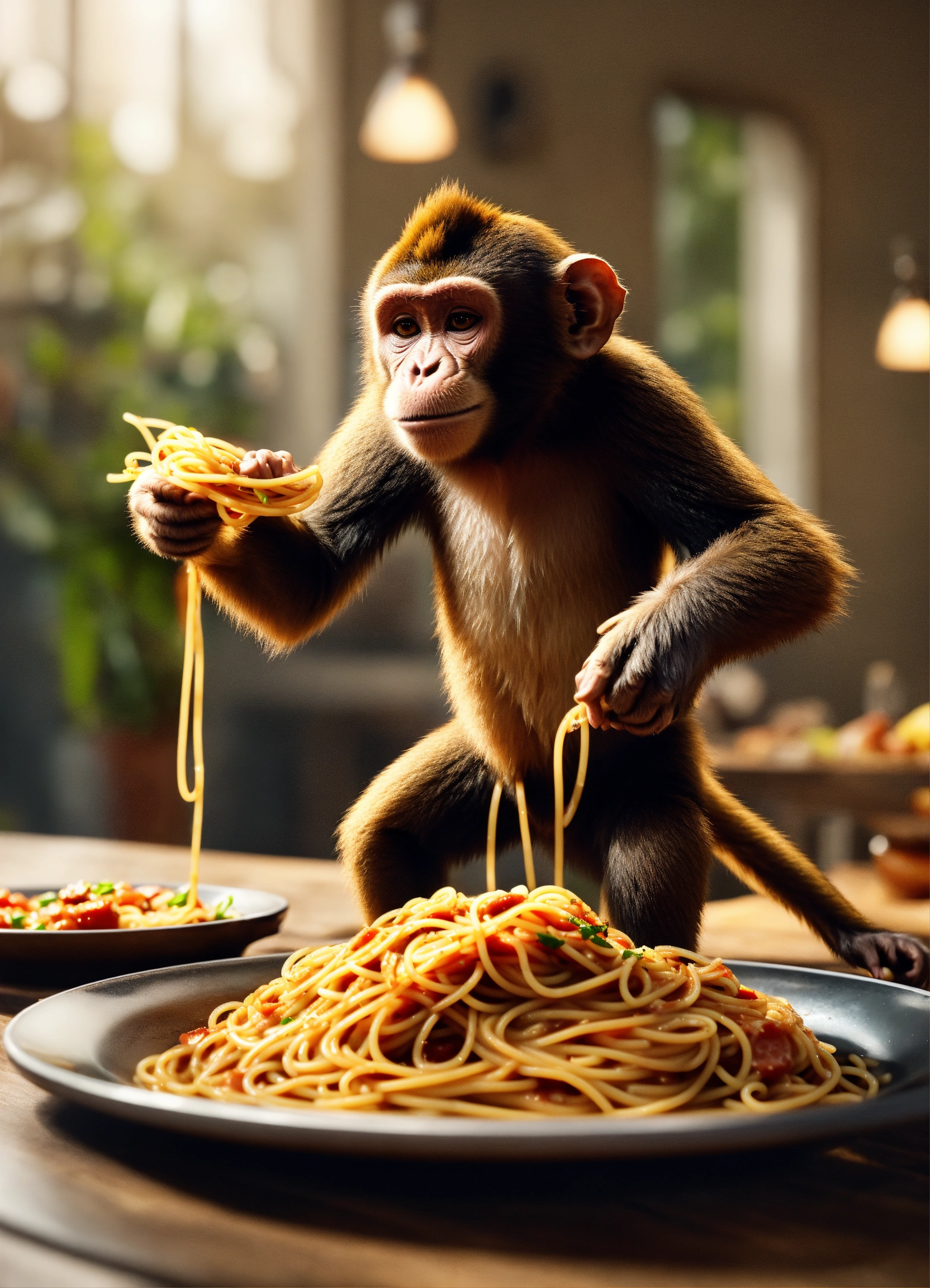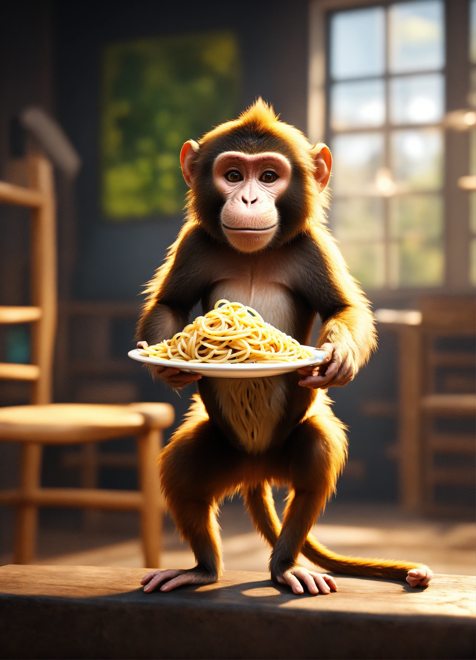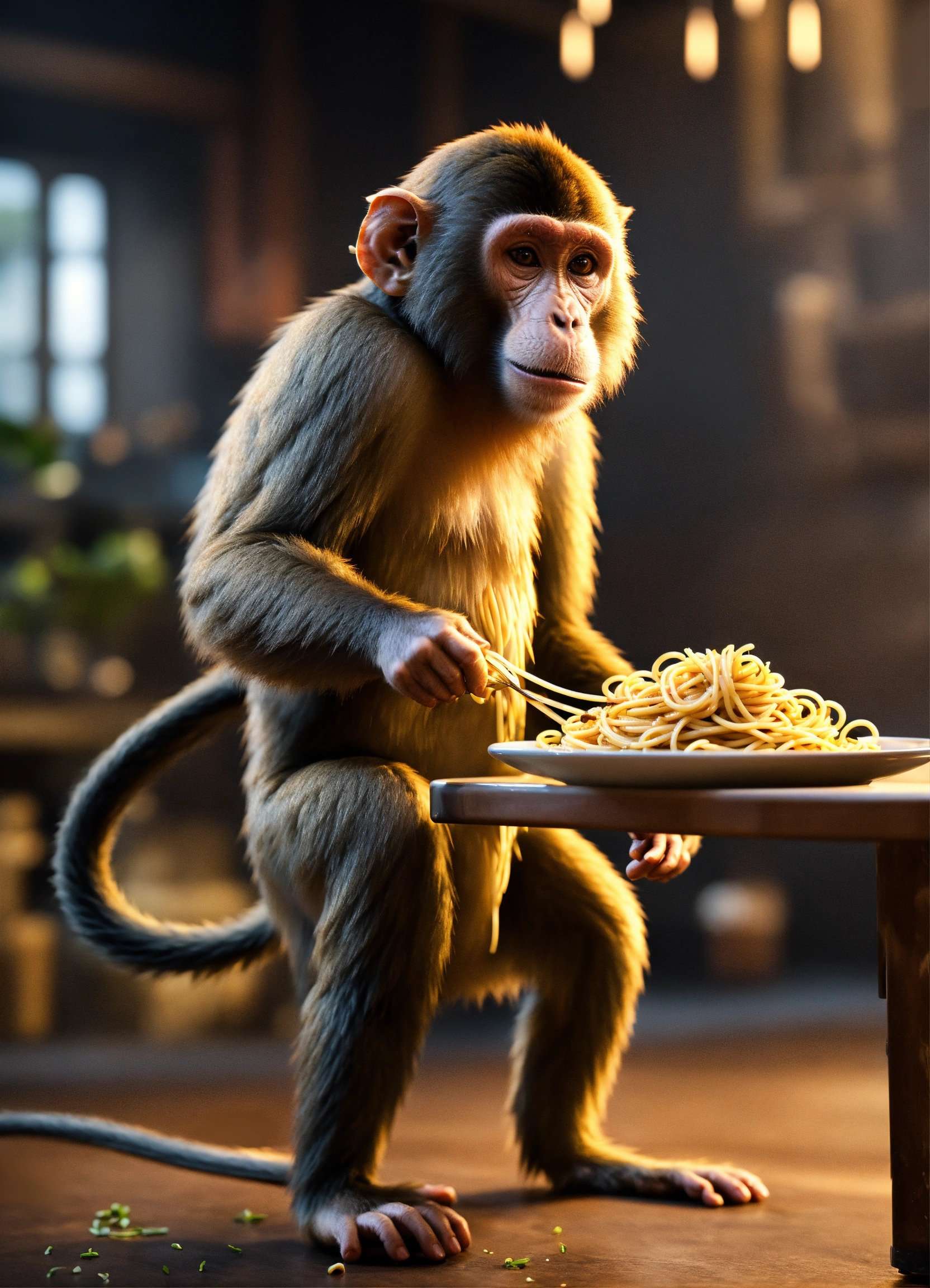 A monkey standing on 2 legs