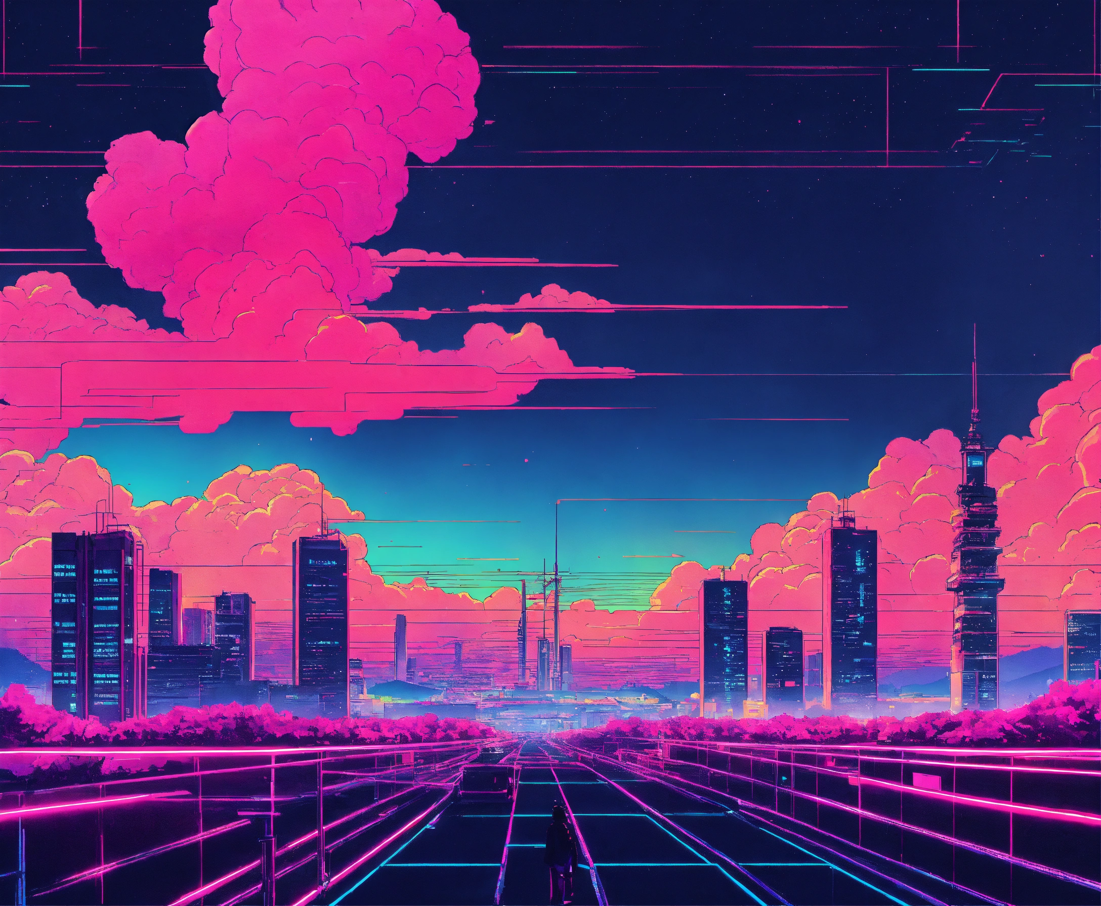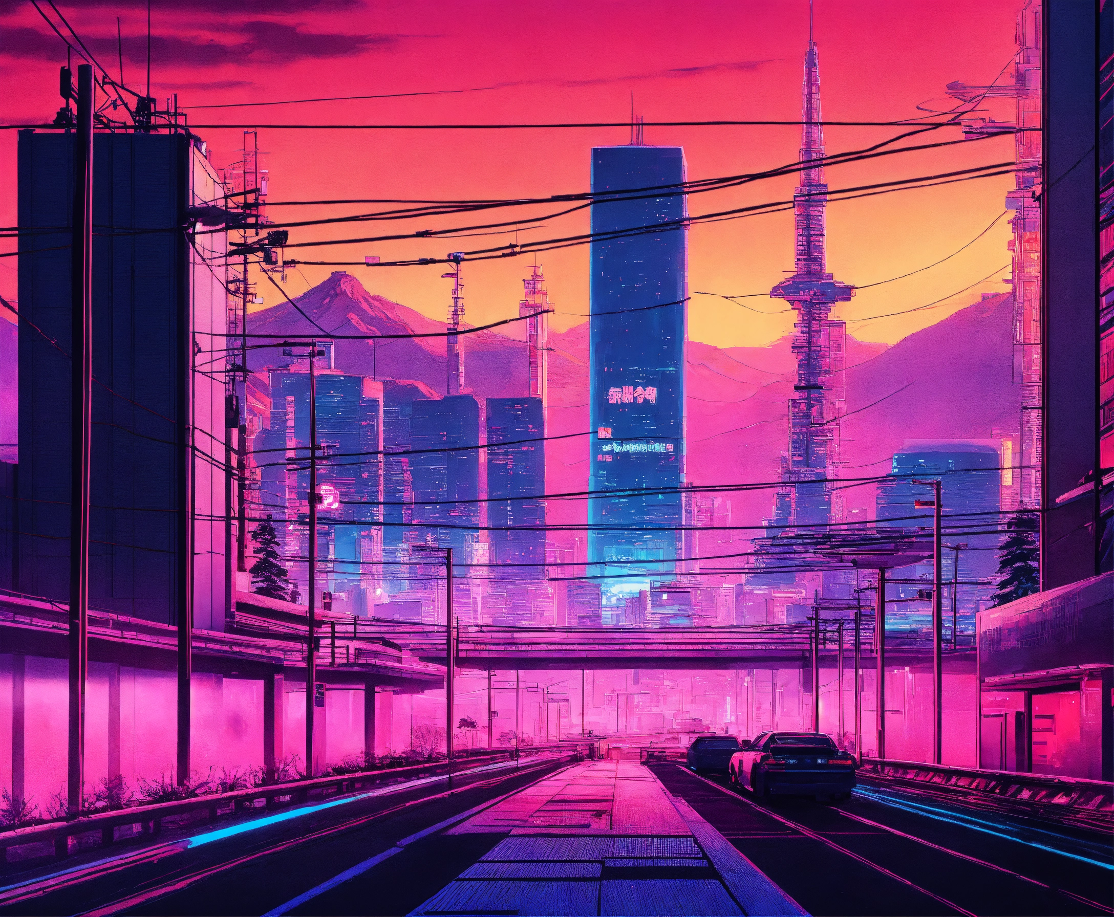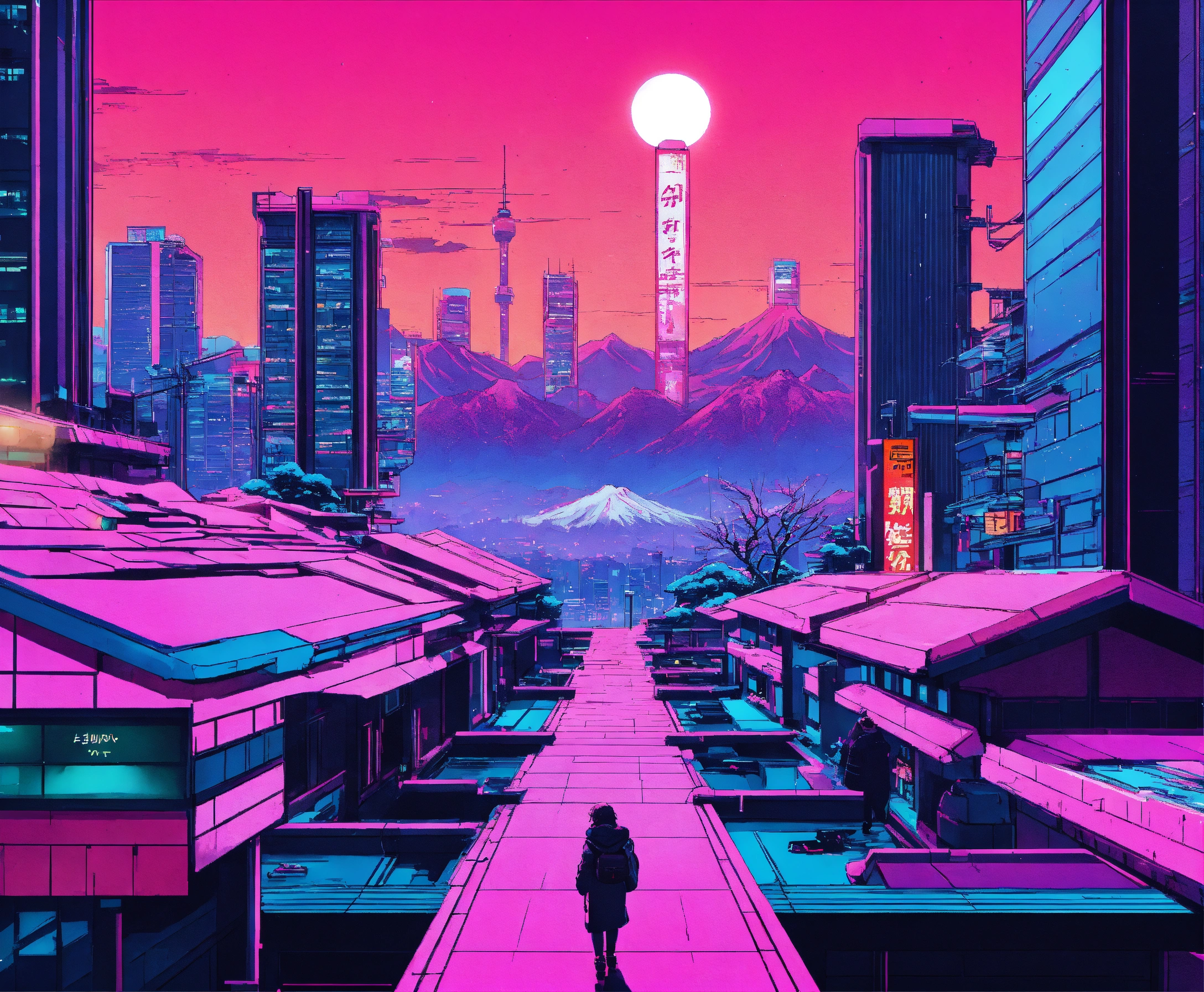 Synthwave style japan winter future city
