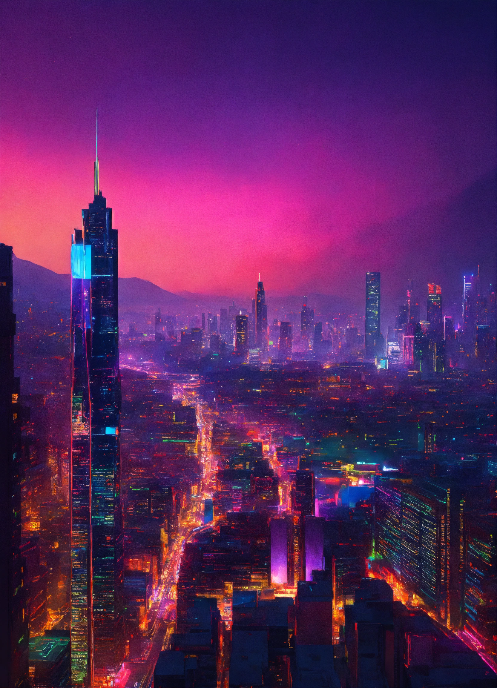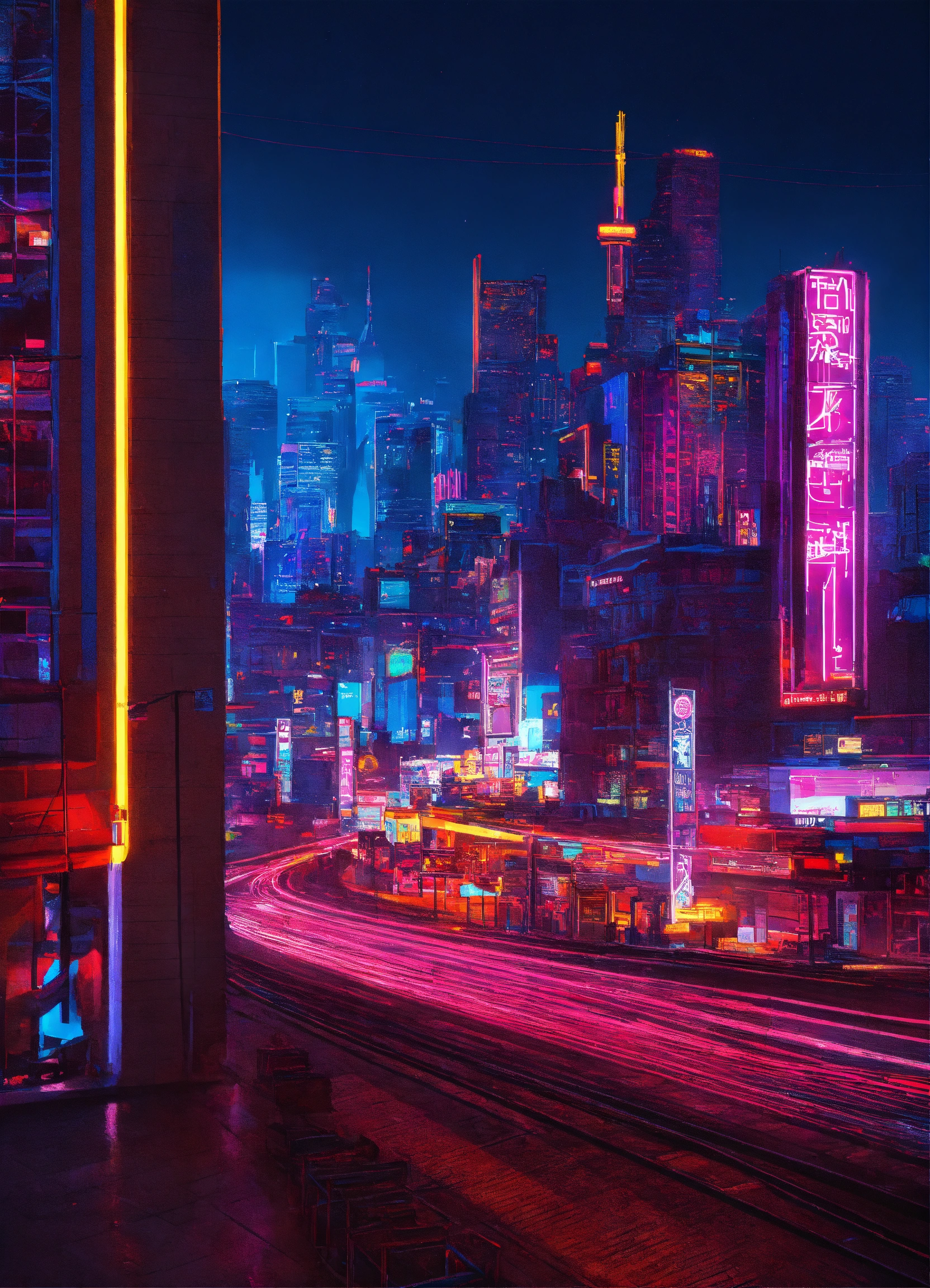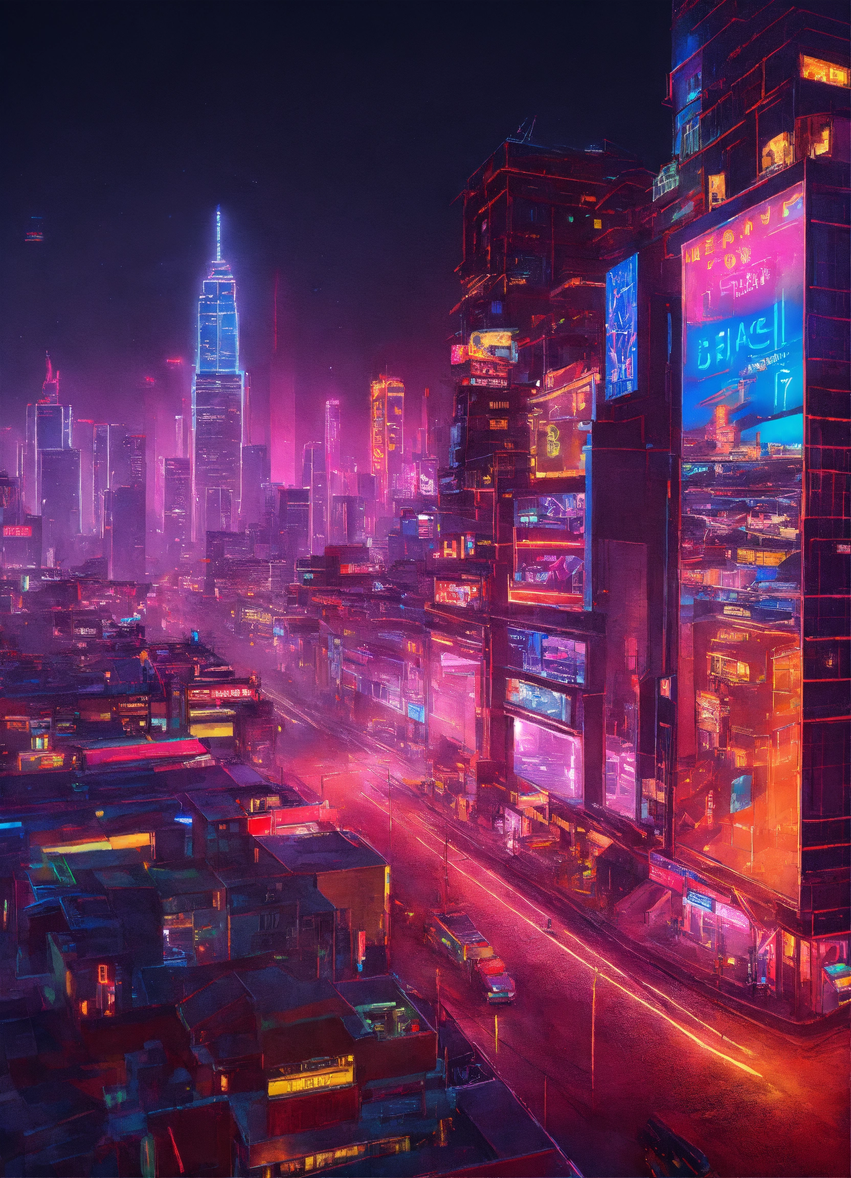 Neon-lit cityscape