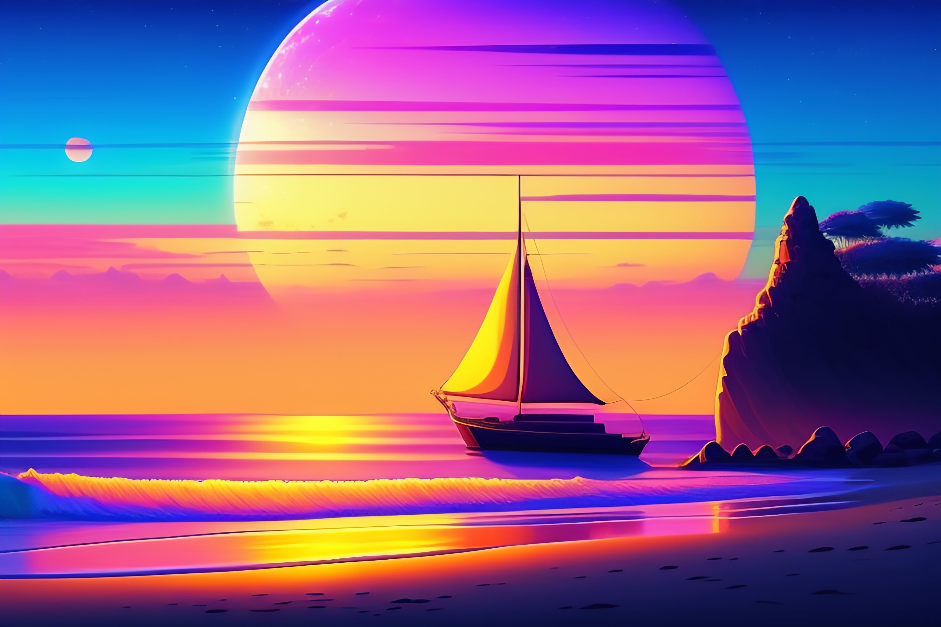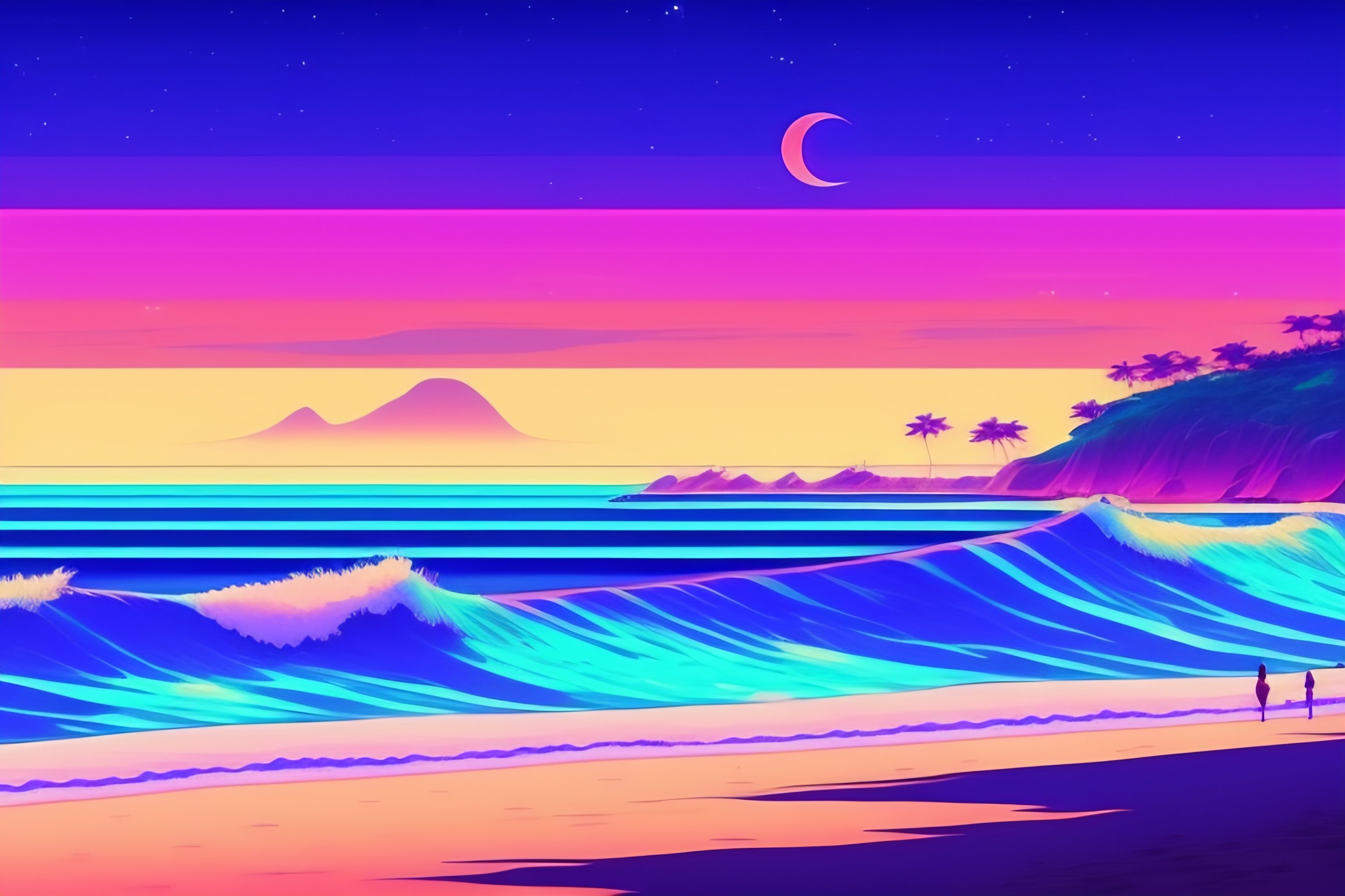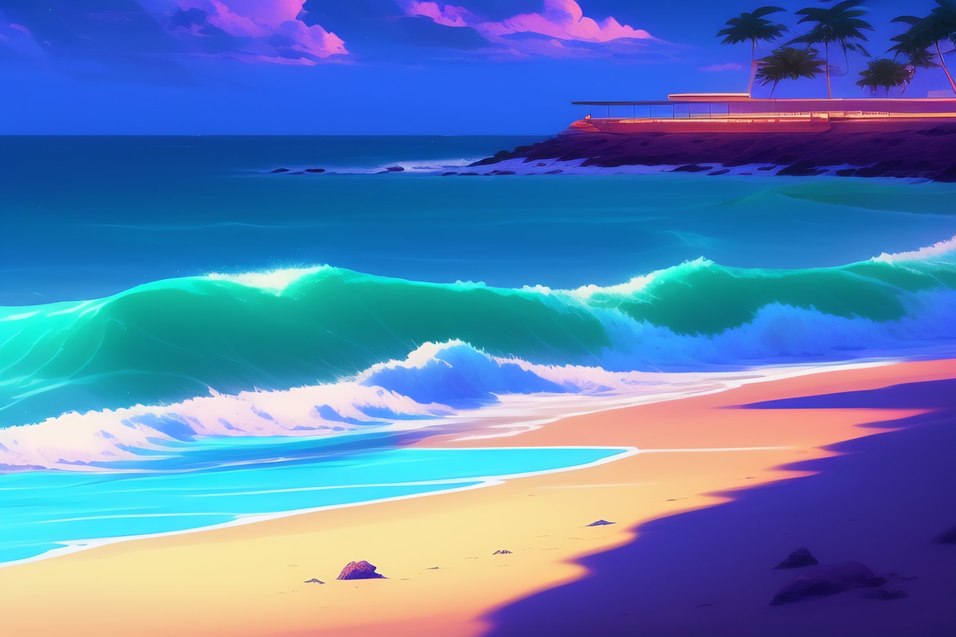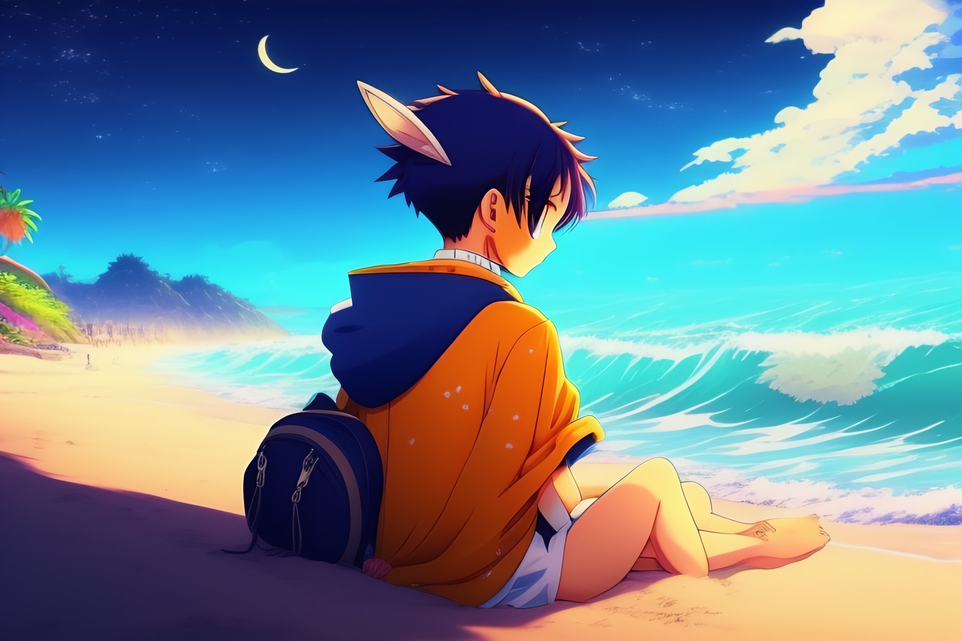 Anime beach in the night lofi music