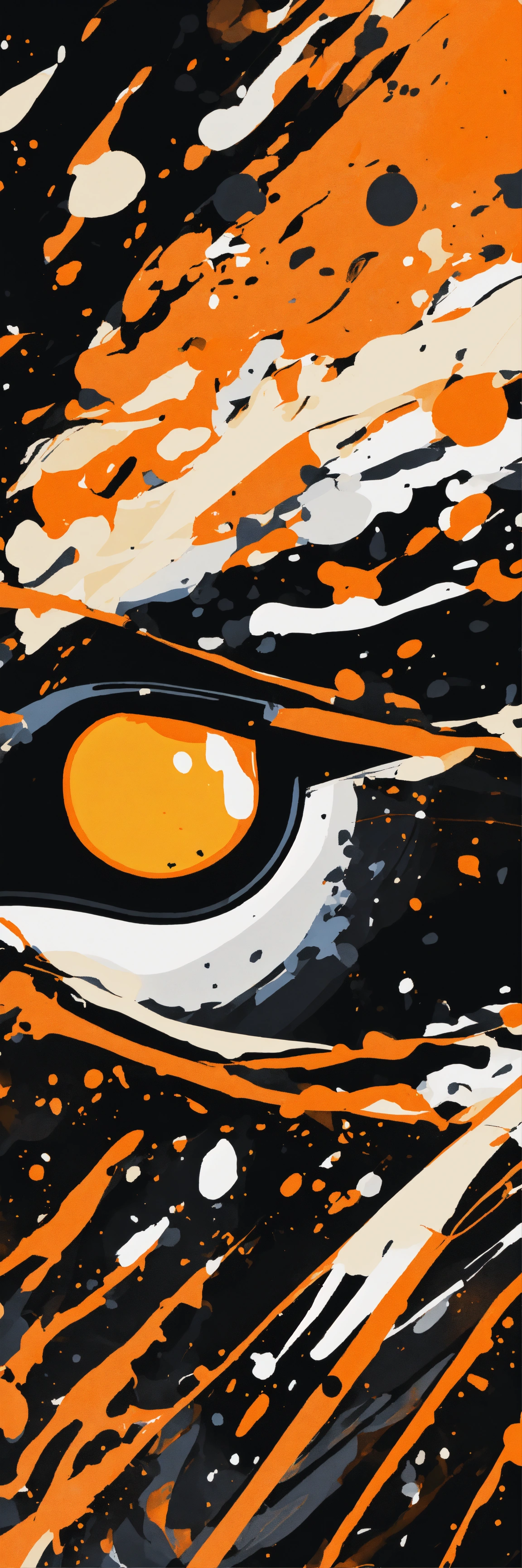 Futuristic paint splatter, panther black, look, creamy white, orange colors, design, high-end designer look, vector, high resolution