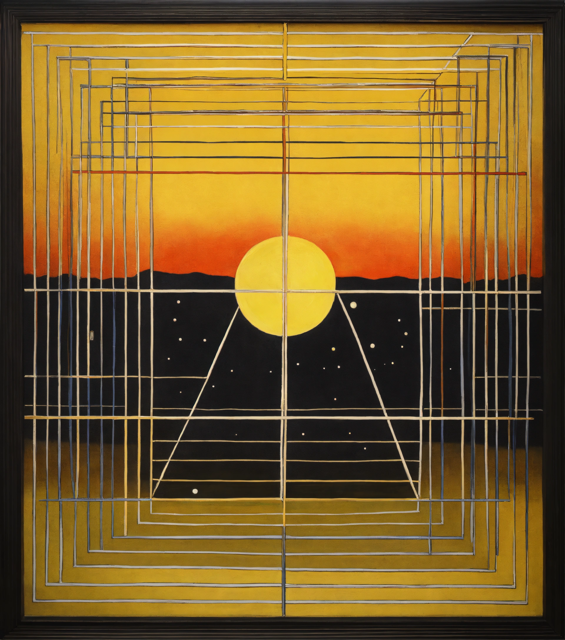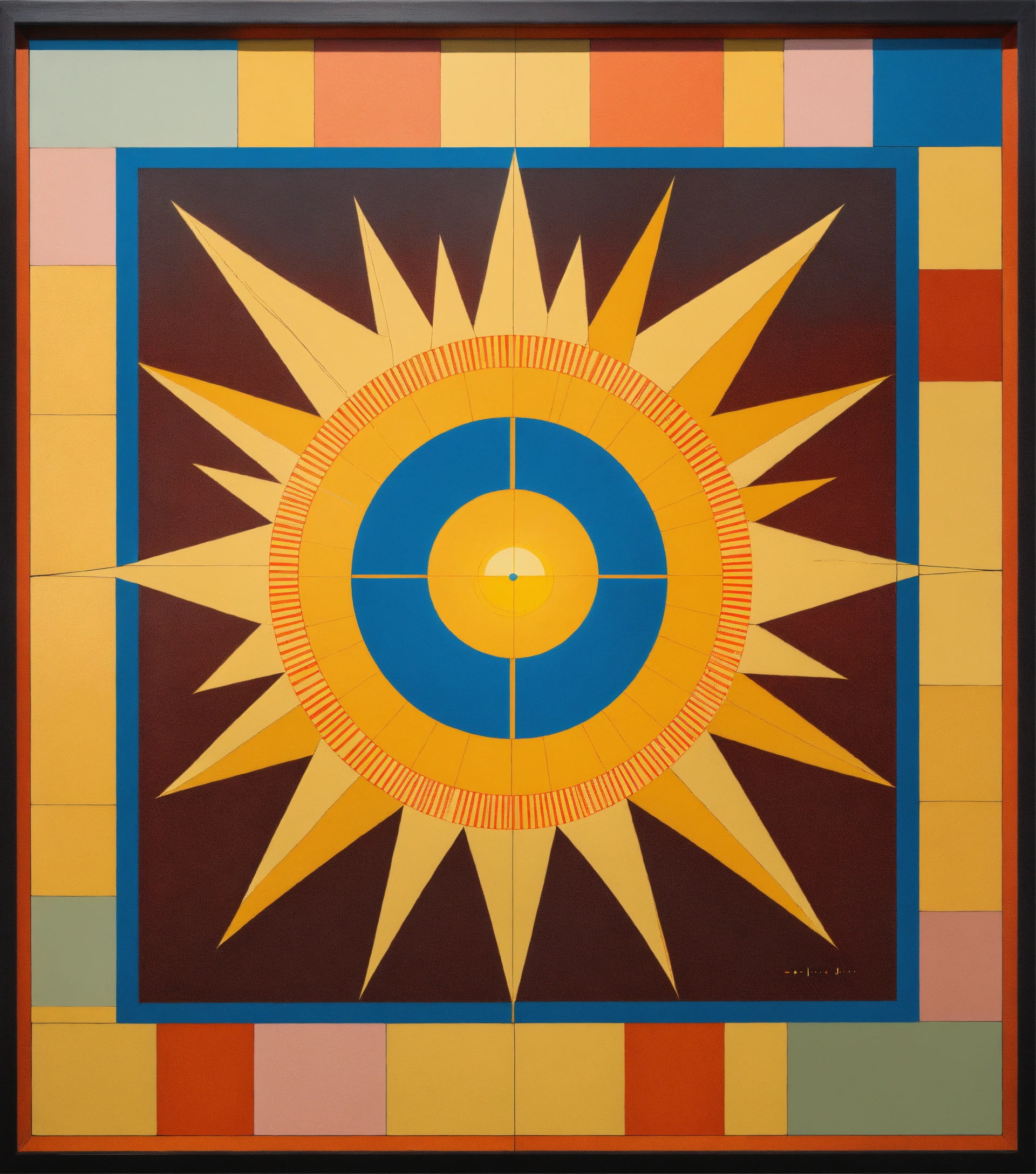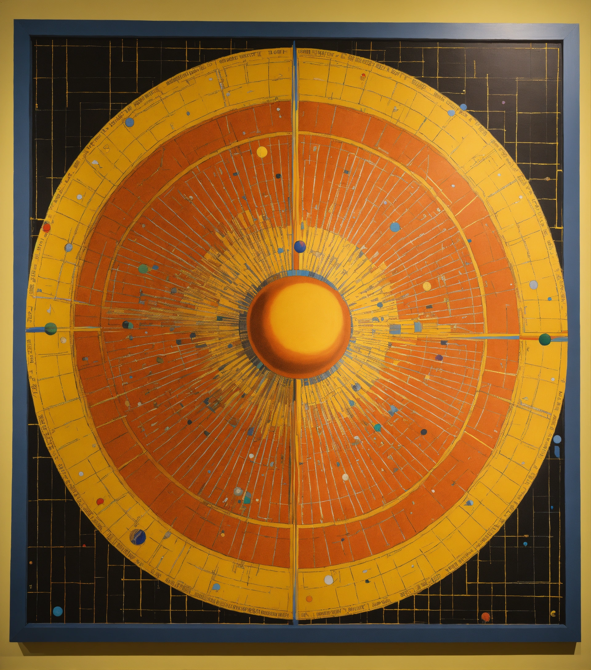 Conceptual painting of sun square uranus astrological aspect in the style of joseph kosuth, marcel duchamp, sol lewitt