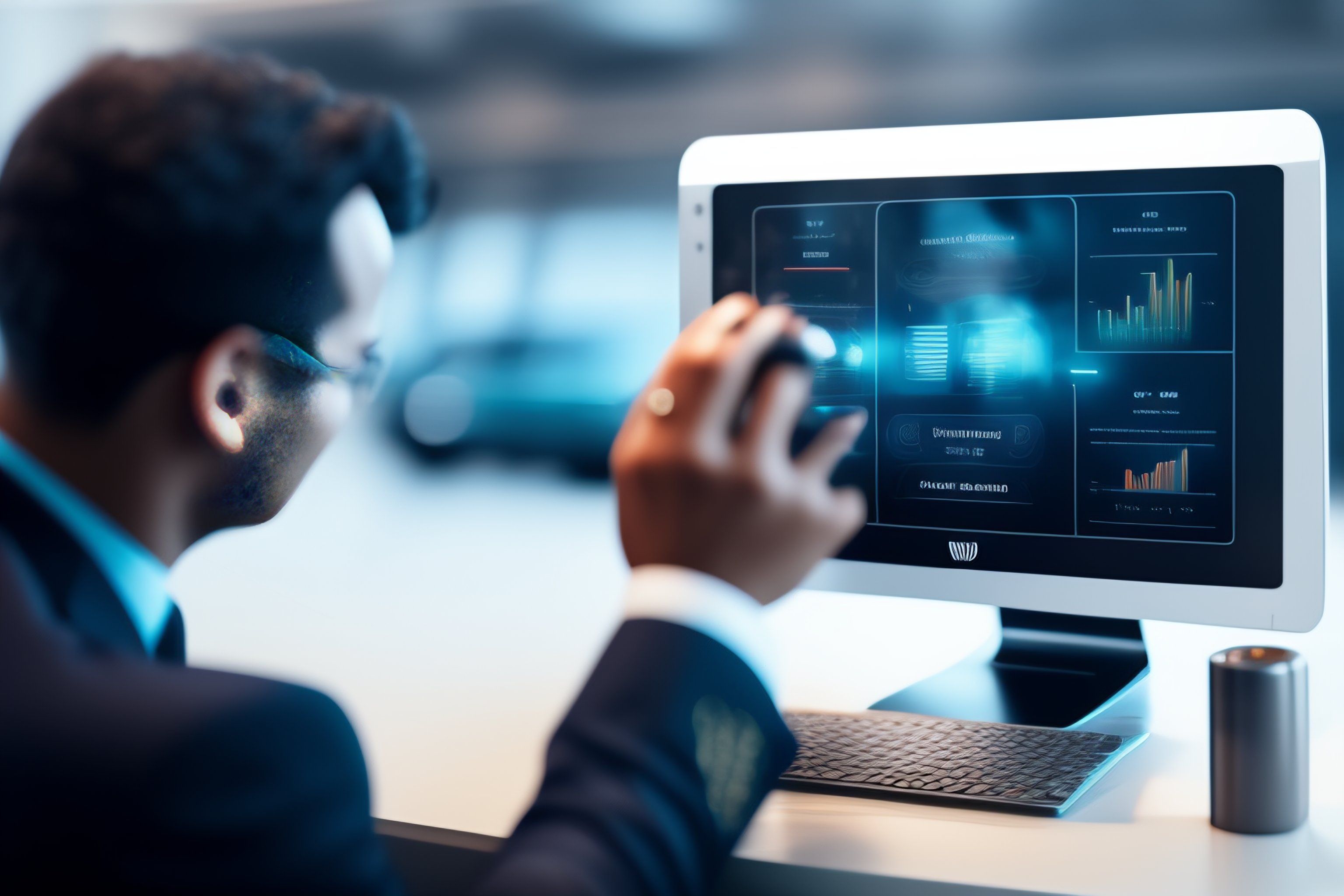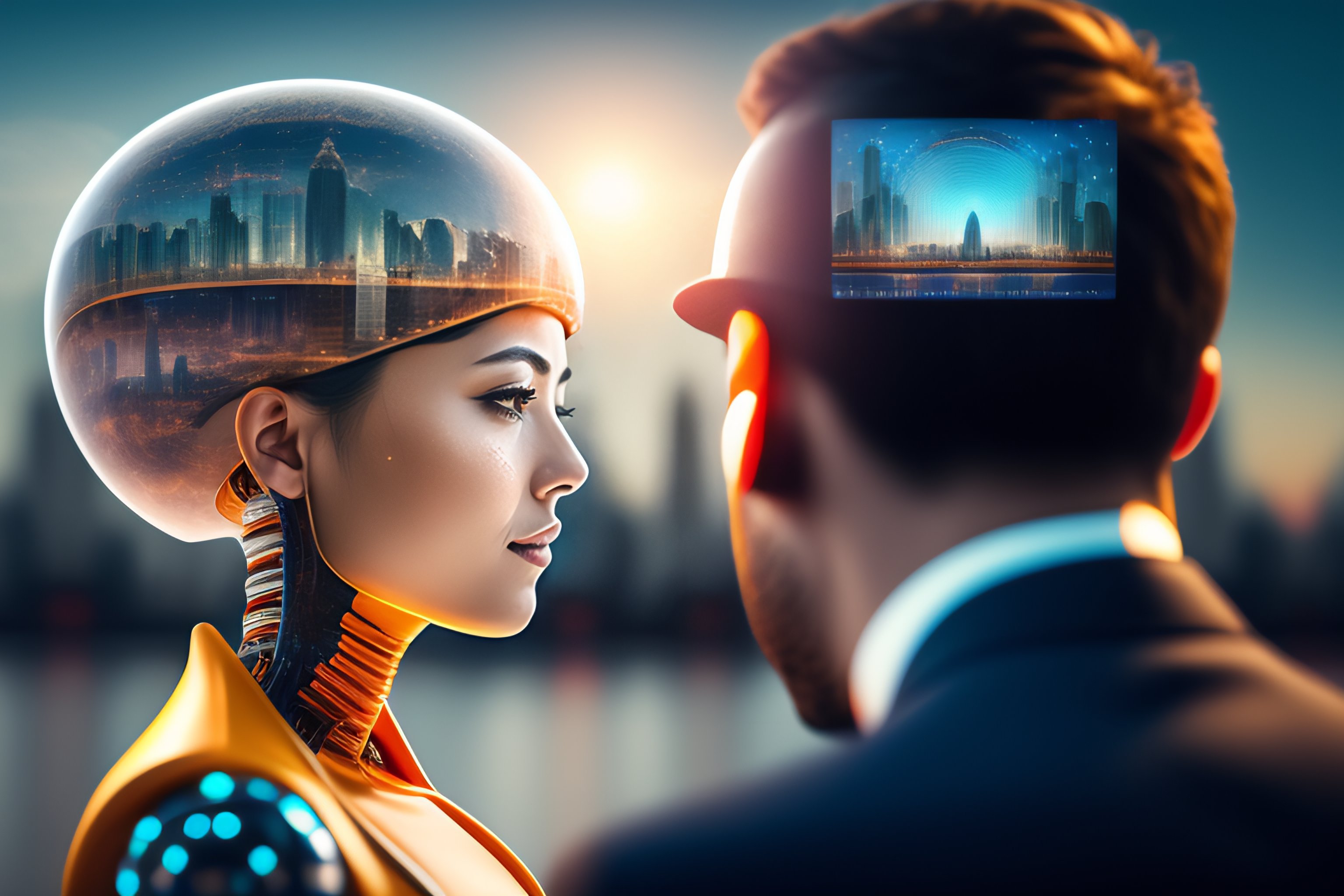 Generate a realistic image that represents the integration of artificial intelligence in the business world, with a focus on improving customer service and efficiency
