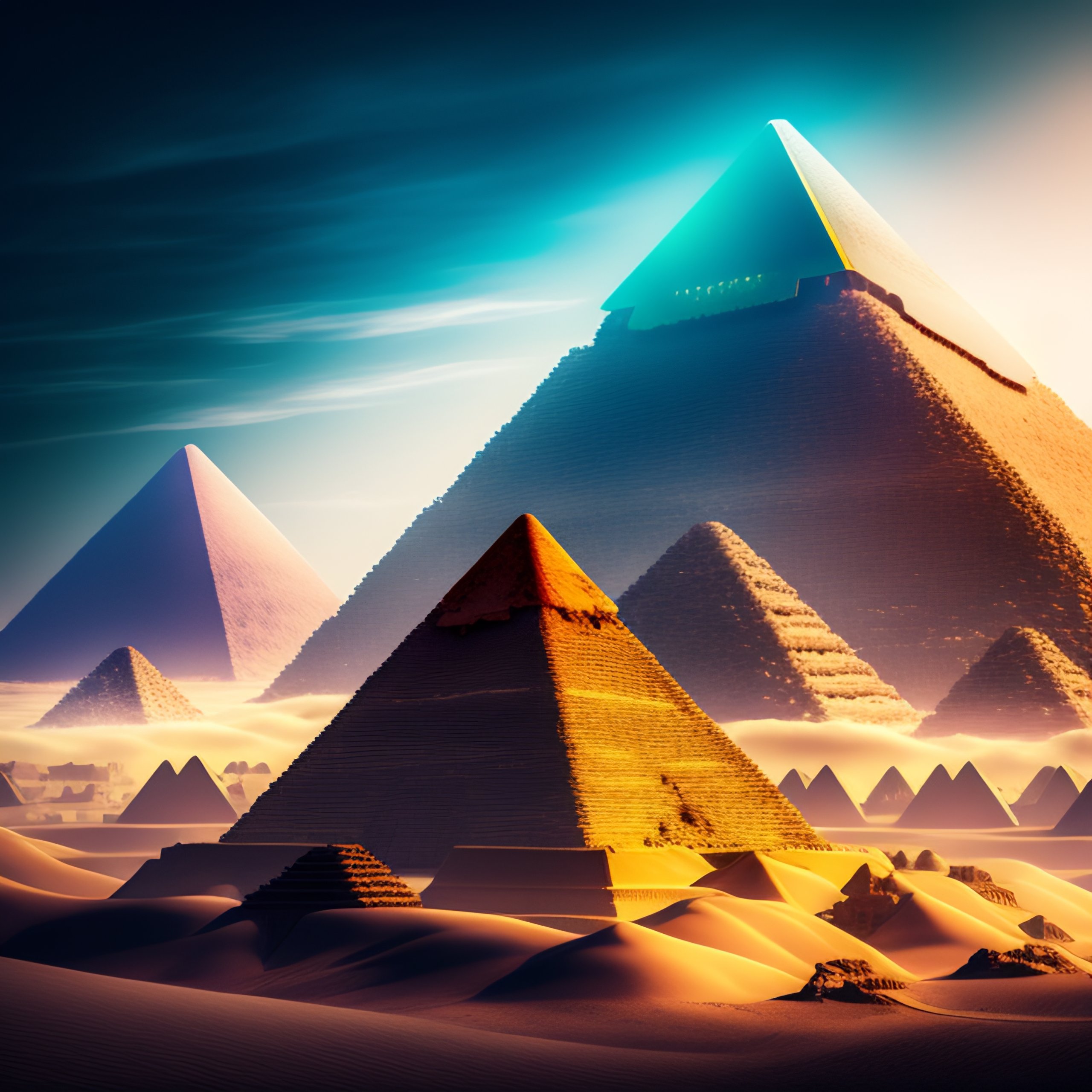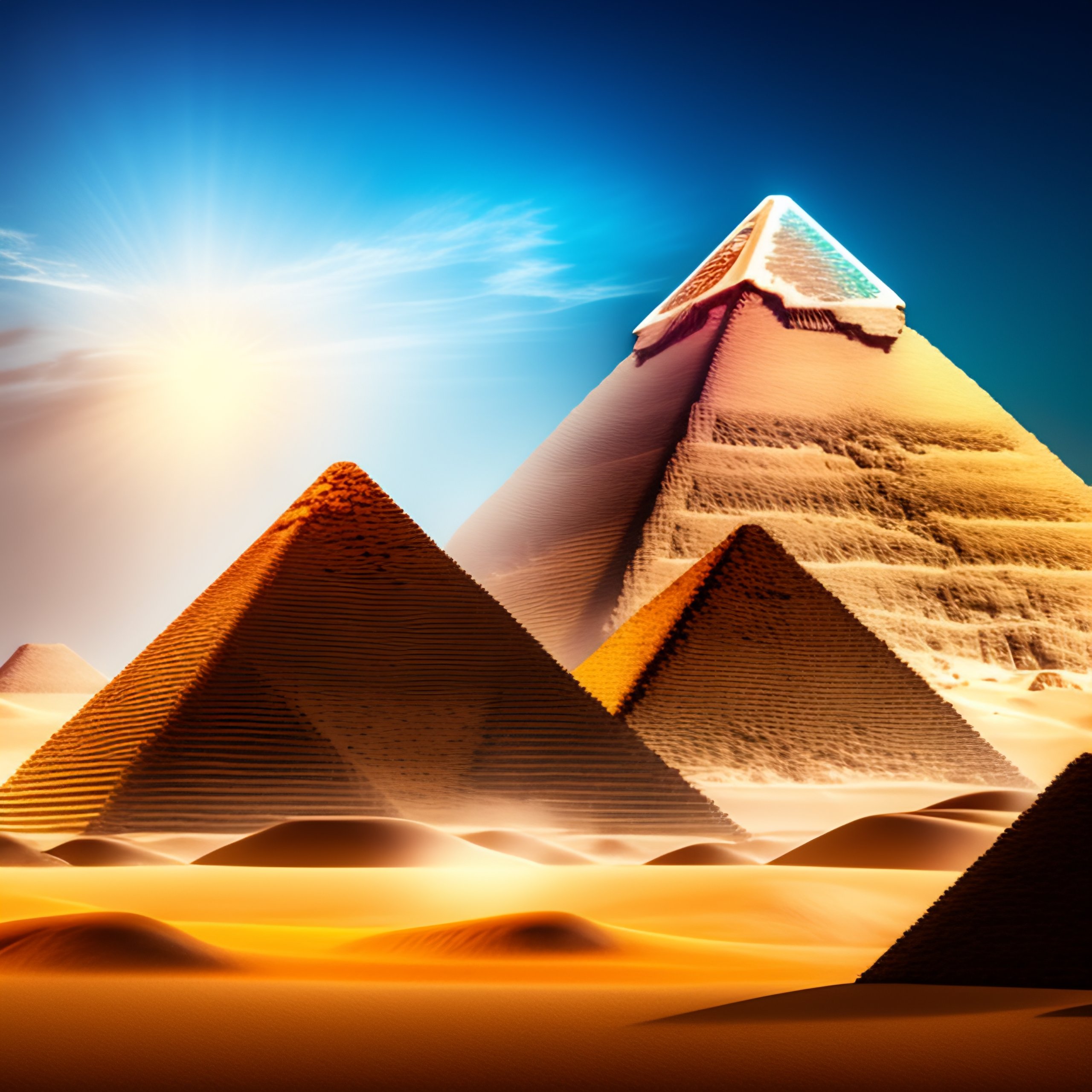 A photo of the pyramids of giza in white color, in the sky, in natural light, with bright colors, close-up.