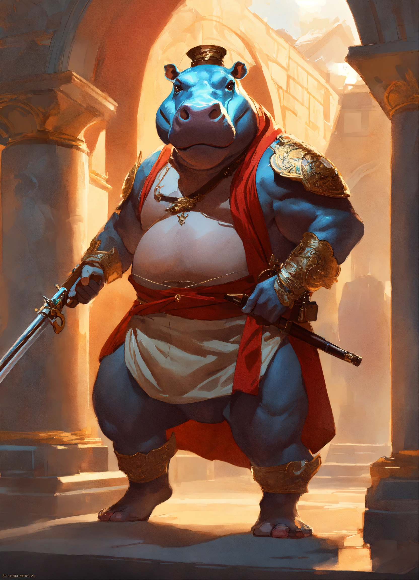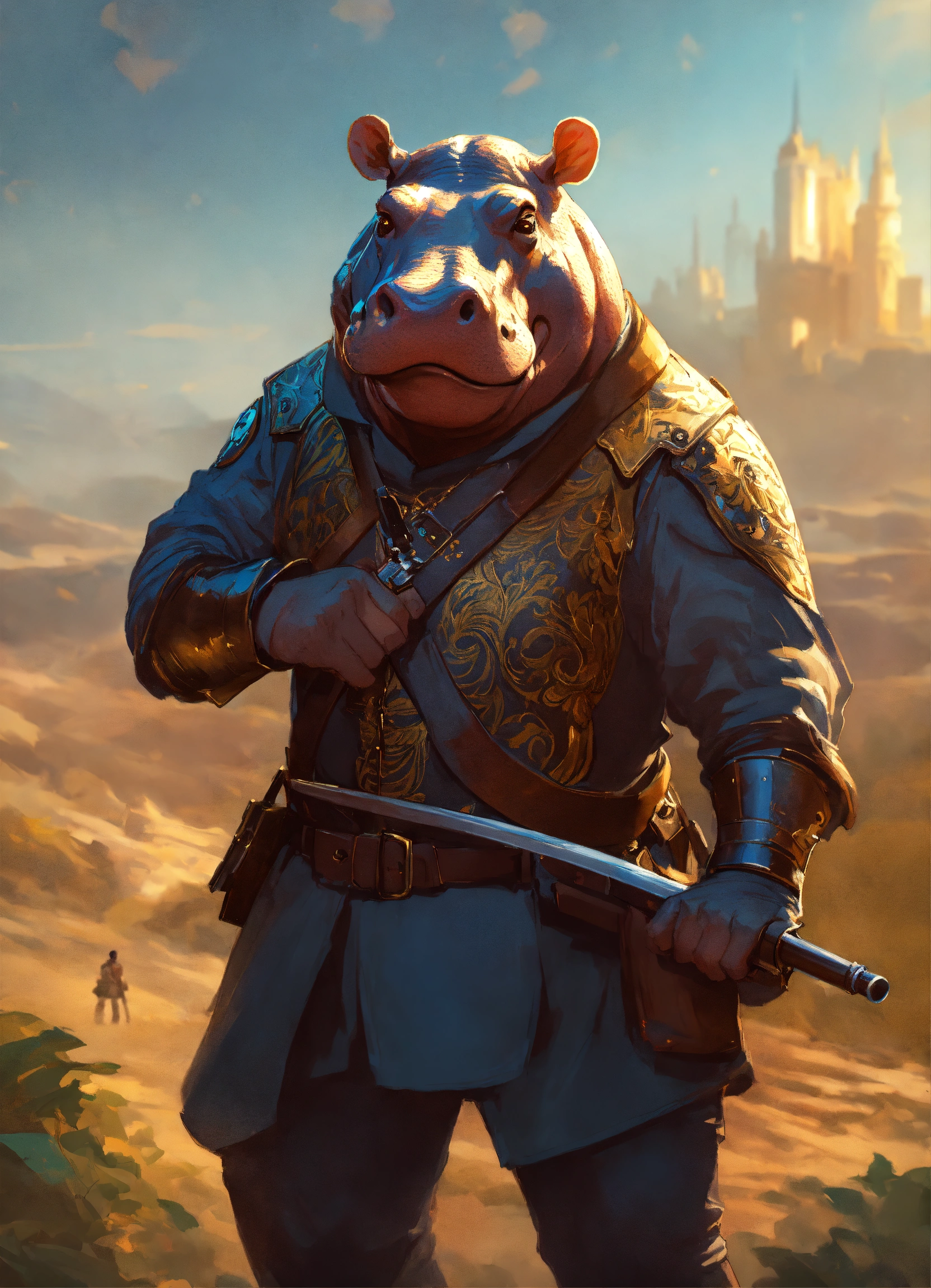 Hippo man with a musket, posing for a fight intricate, elegant, highly detailed, digital painting, artstation, concept art, smooth, sharp focus, illustration, art by artgerm and greg rutkowski and alphonse mucha, 8 k