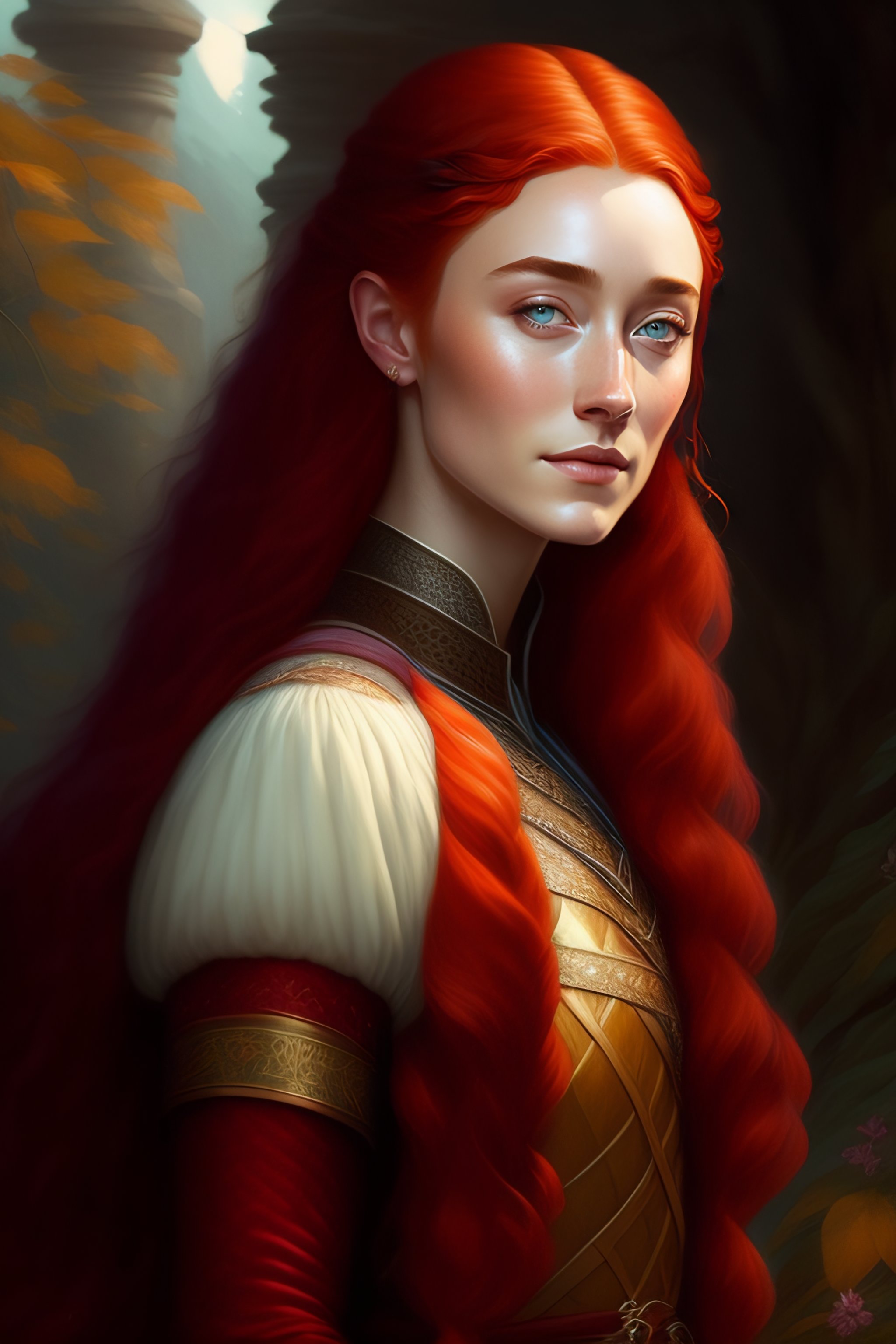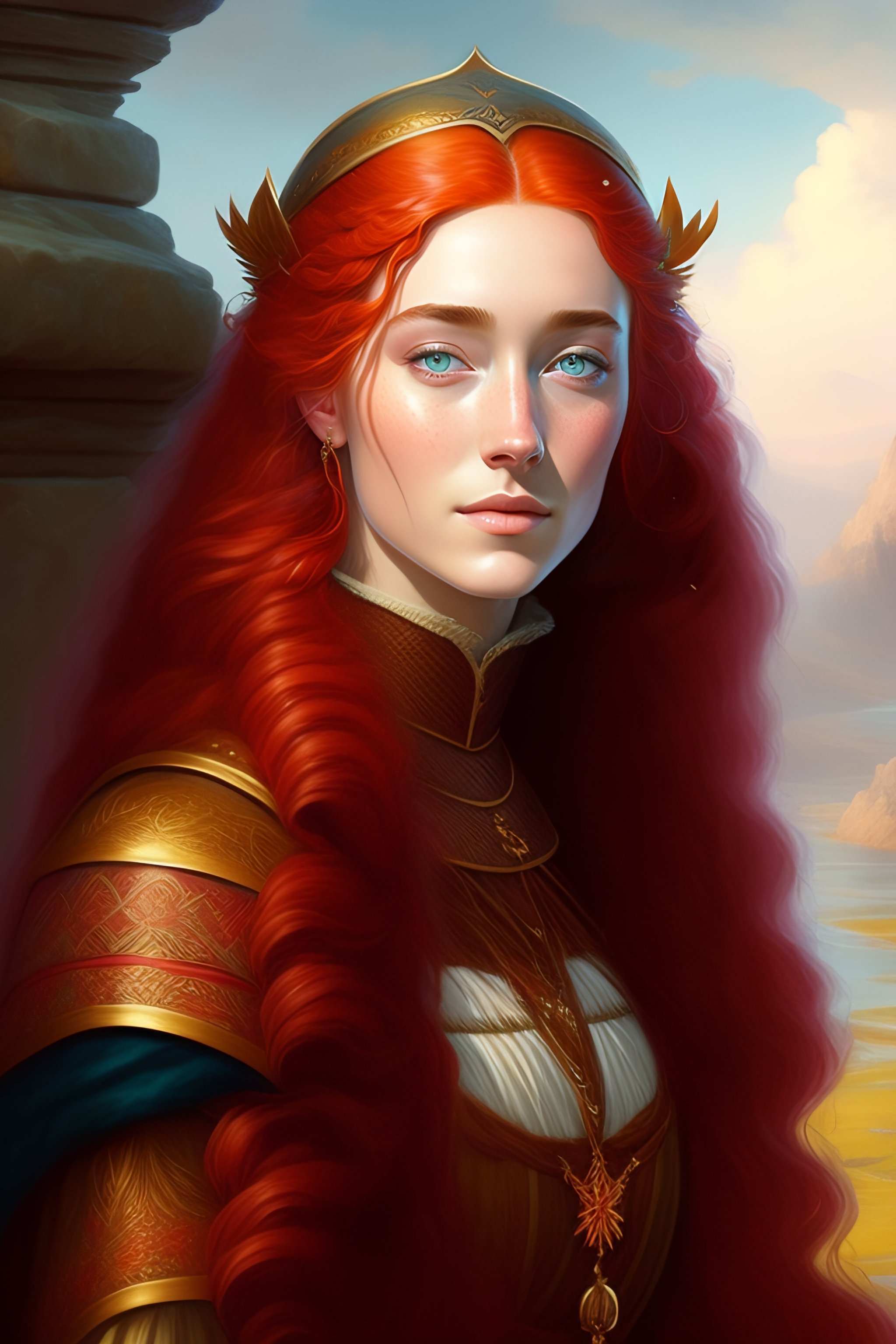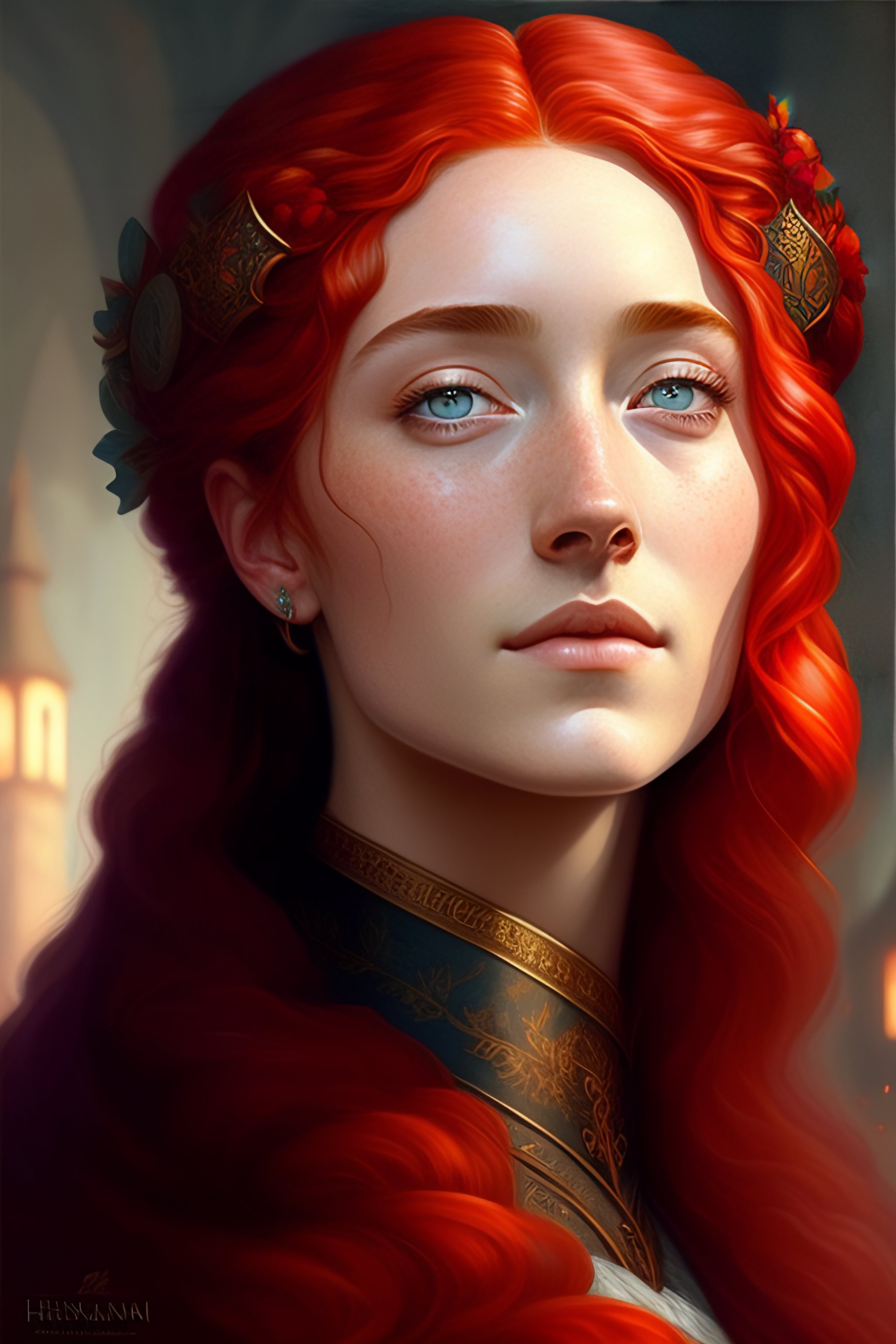 Saoirse ronan with red hair in medieval style! pretty face! amazing! magical, concept art, art by helena nikulina ferdinand knab greg rutkowski artgerm loish rhads, highly detailed, digital painting