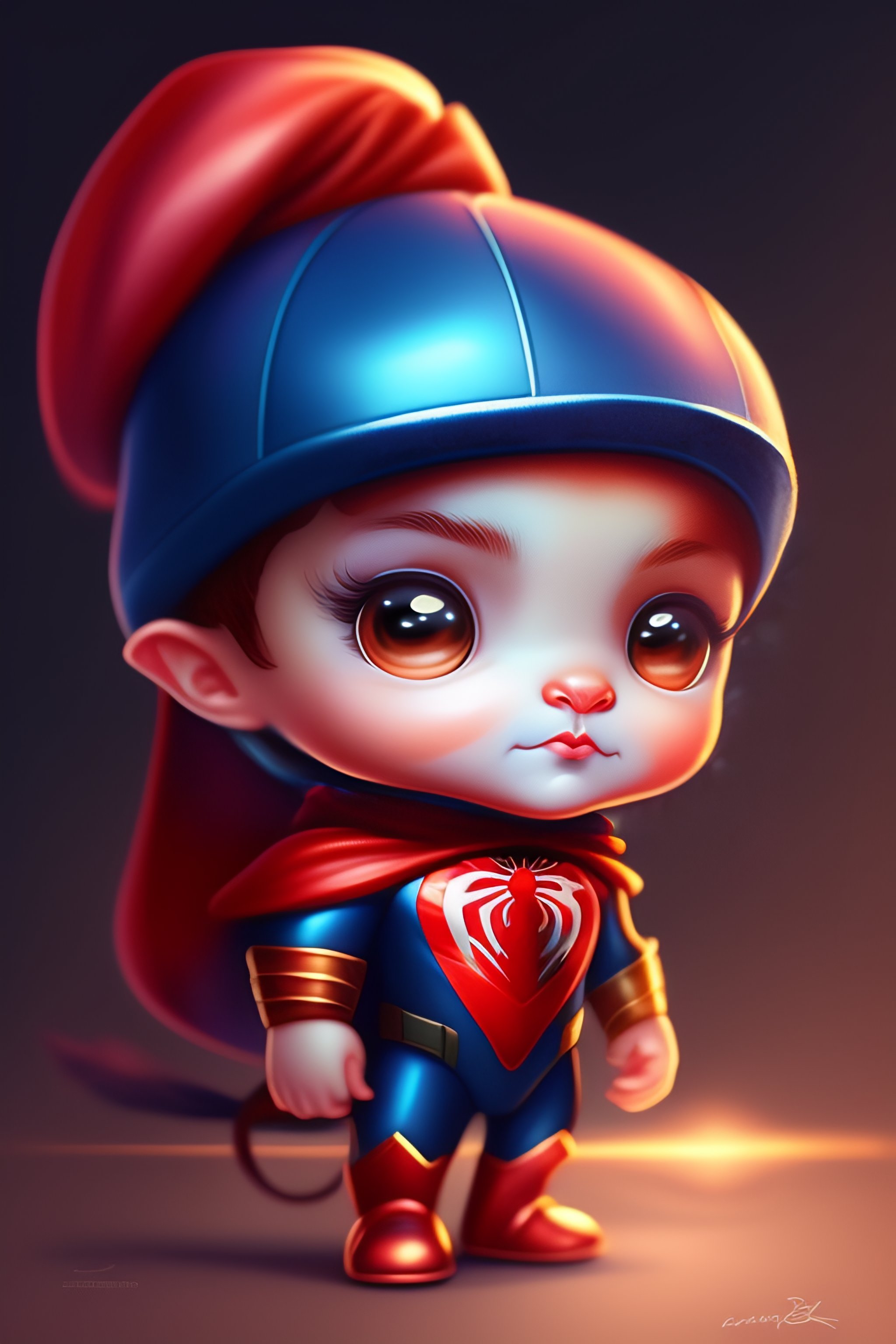 Cute and adorable cartoon spiderman baby, fantasy, dreamlike, surrealism, super cute, trending on artstation