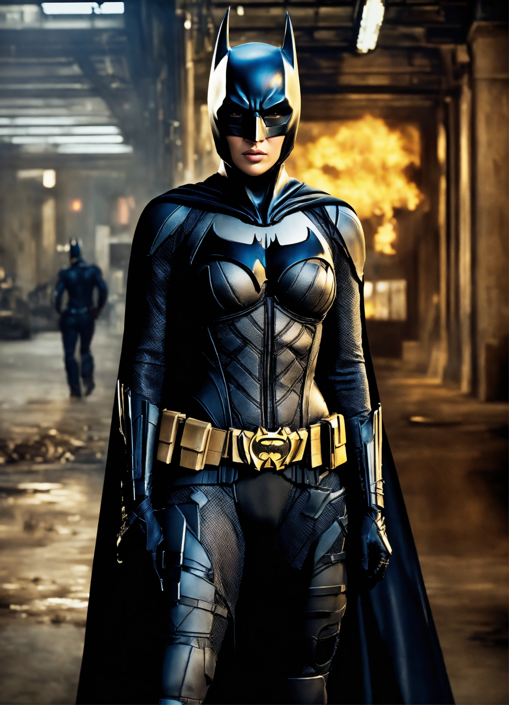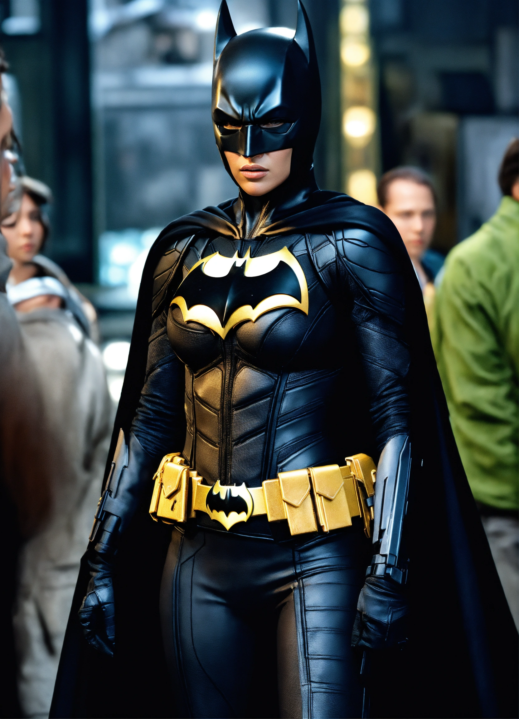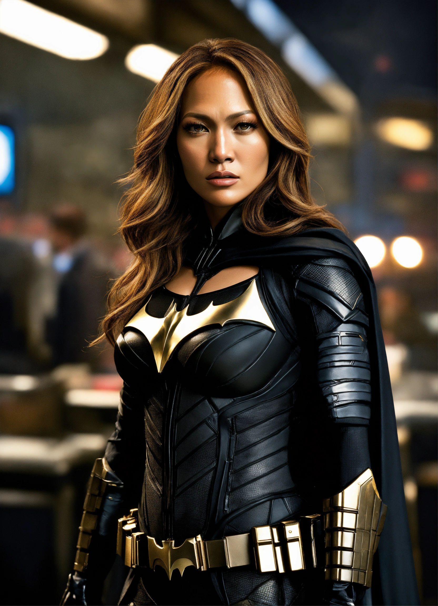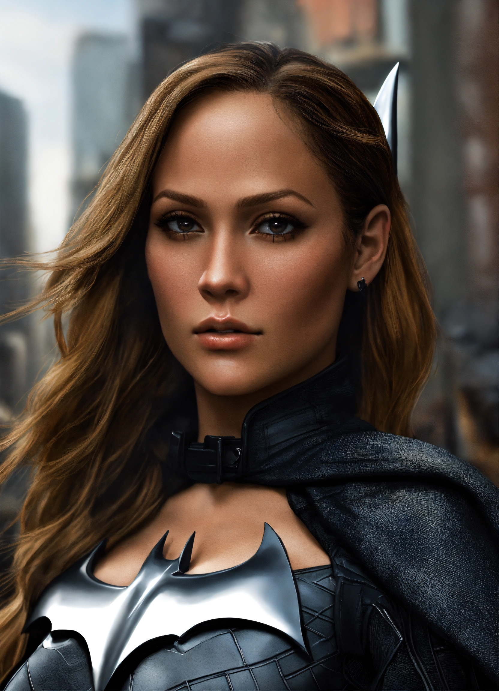 Full body portrait, {{{movie}}} {{{the dark knight rises}}} {{{the year 2012}}}, jennifer lopez {{{female}}} cosplaying the cast role of character batman, 8k resolution concept art by greg rutkowski, hyperdetailed, intricately detailed, unreal engine, hyperrealism, depth of field, photorealism, digital art, photorealistic