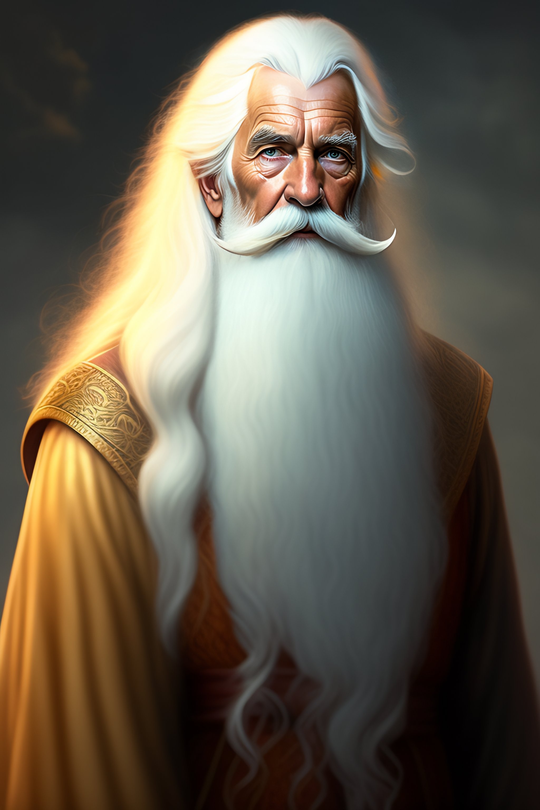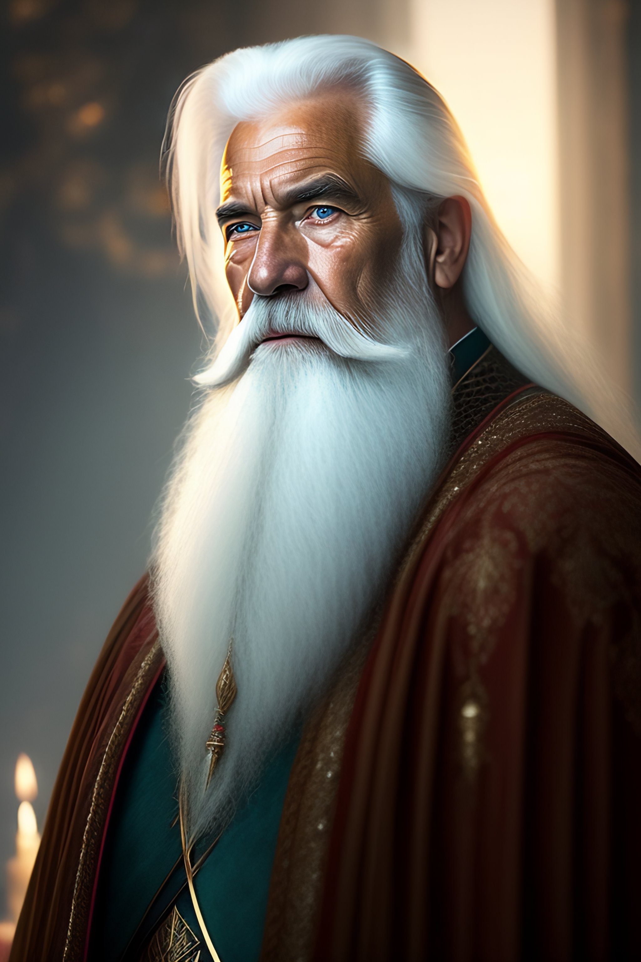 An old wizard with a long white beard and long white hair