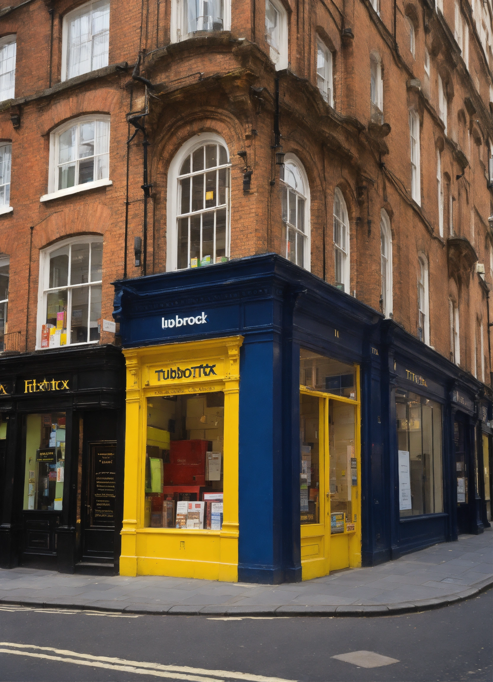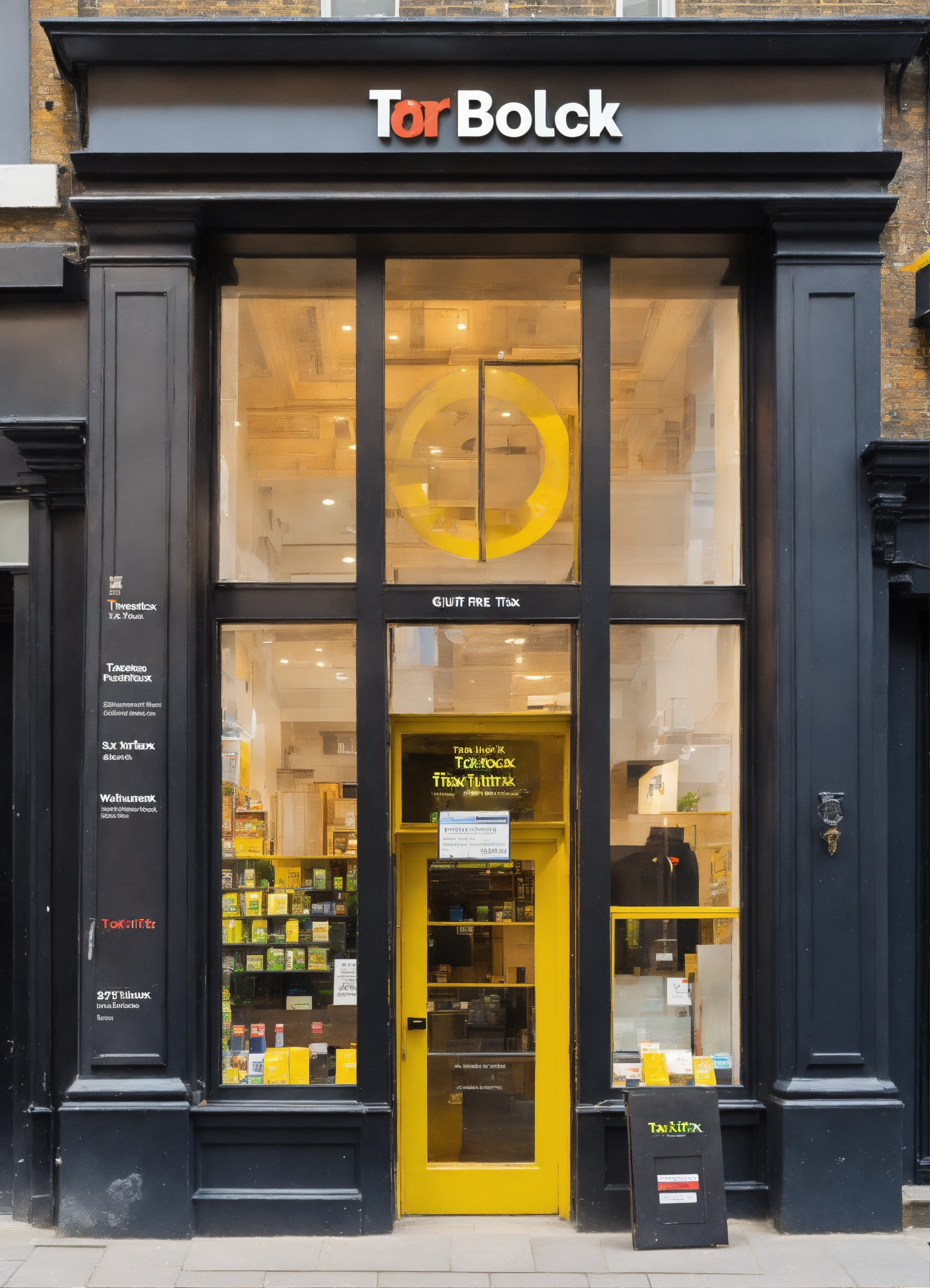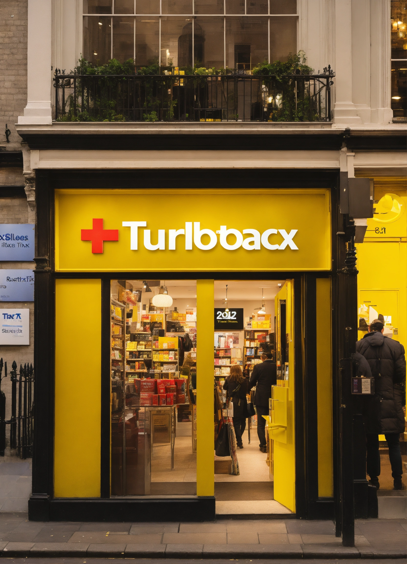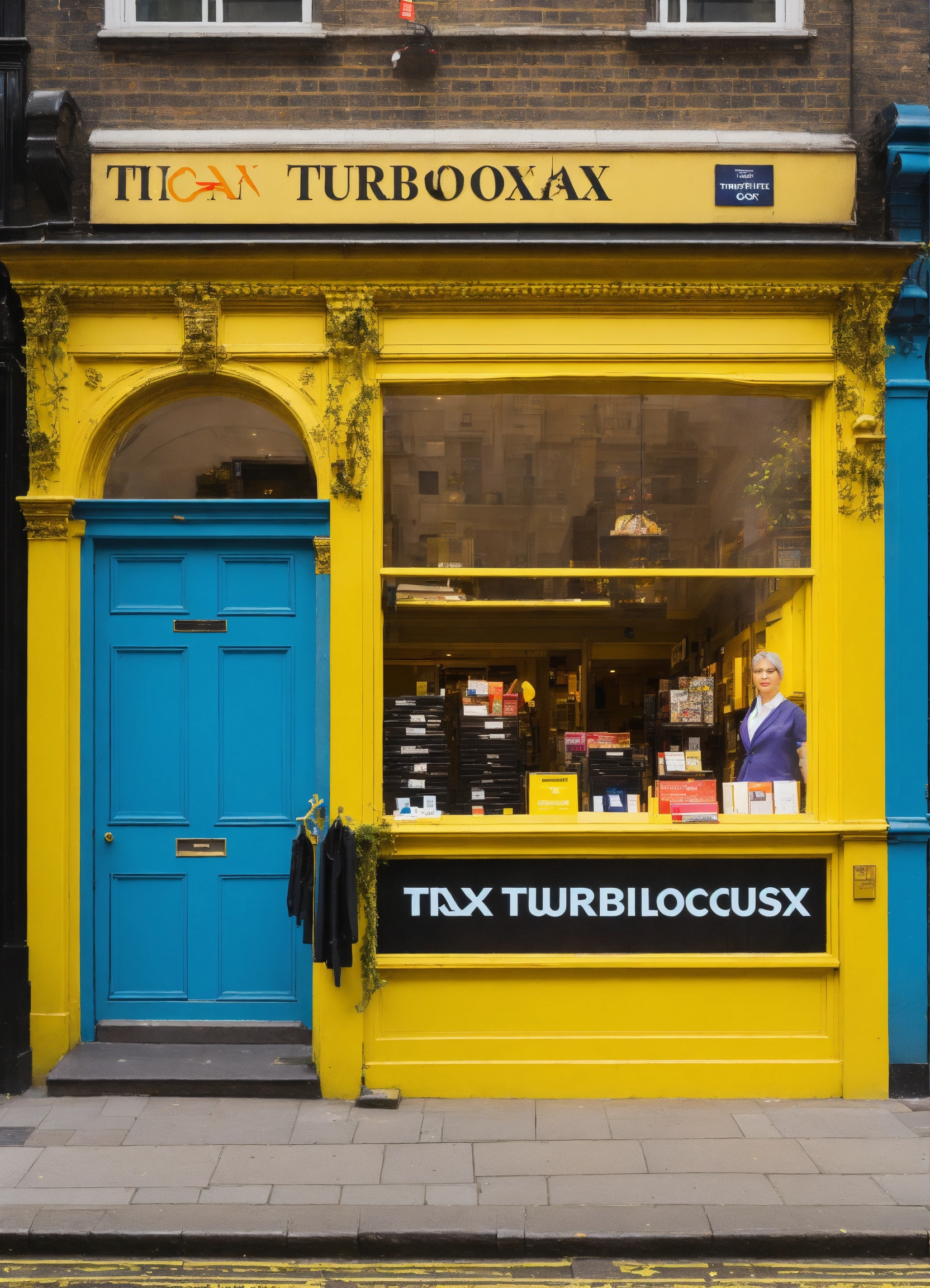 The store is named tax refund, the logo is white and yellow, the store address is 27 old gloucester st, london wc1n 3ax, united kingdom. inside sells items such as turbotax, h&r block