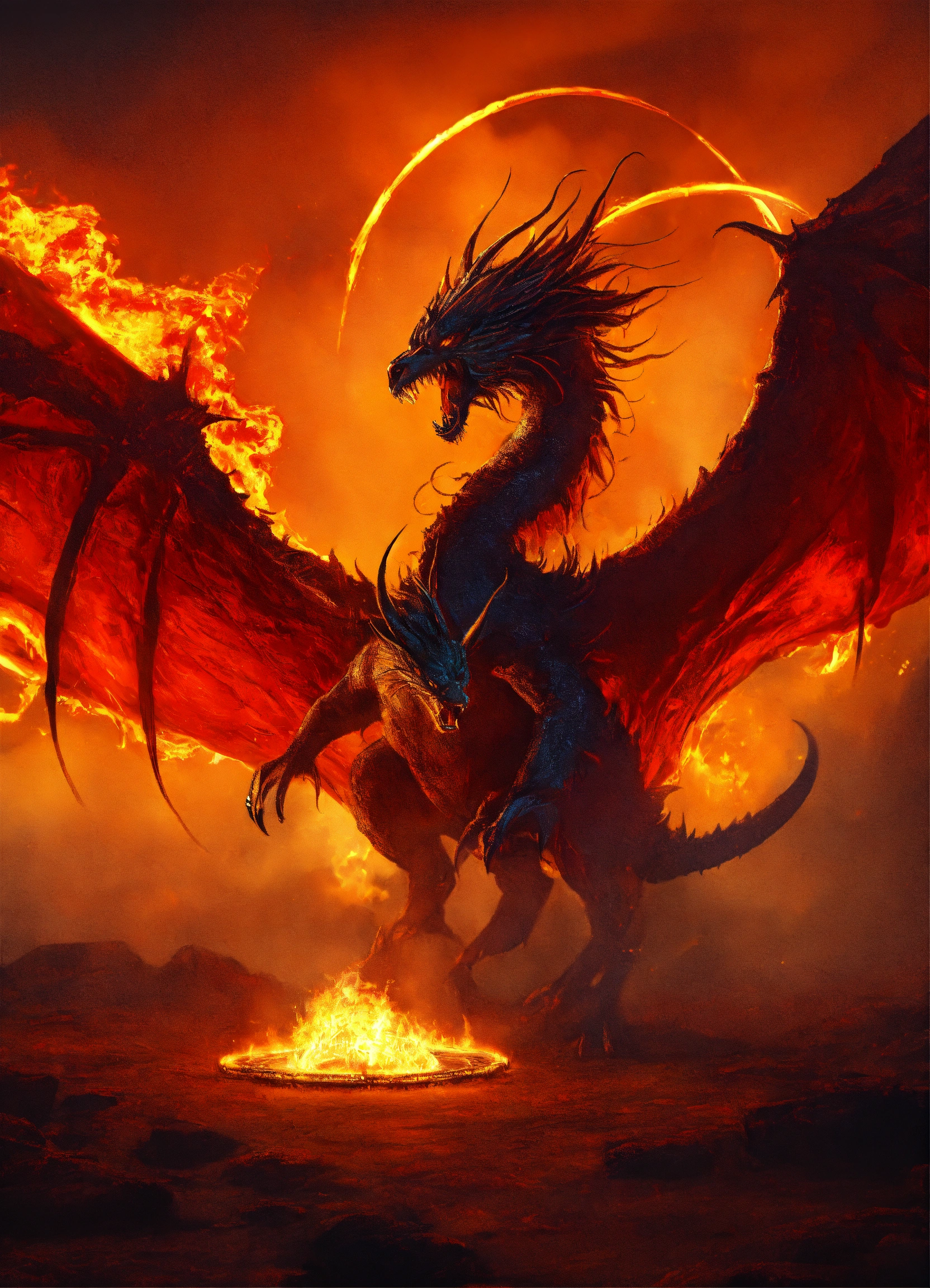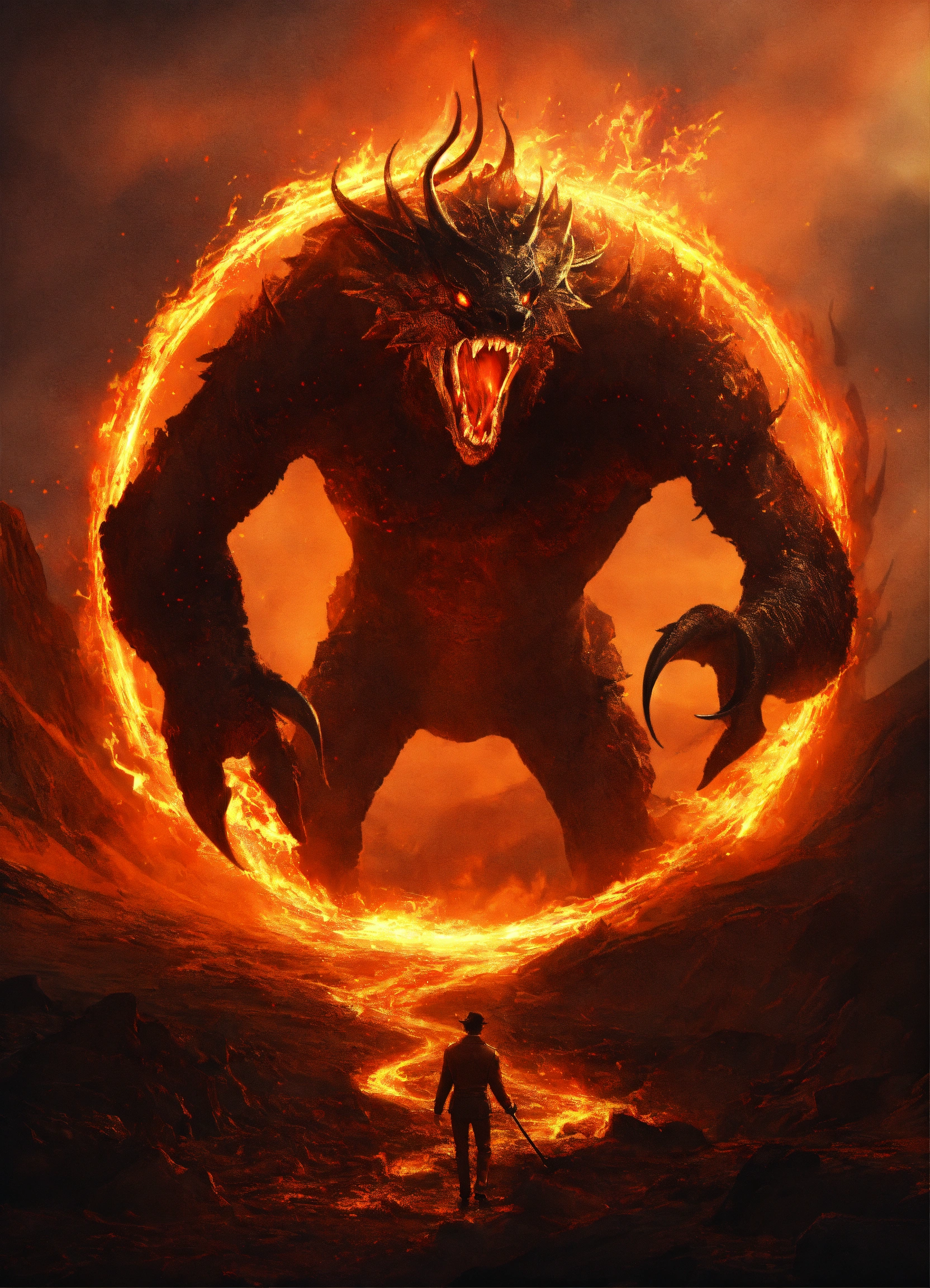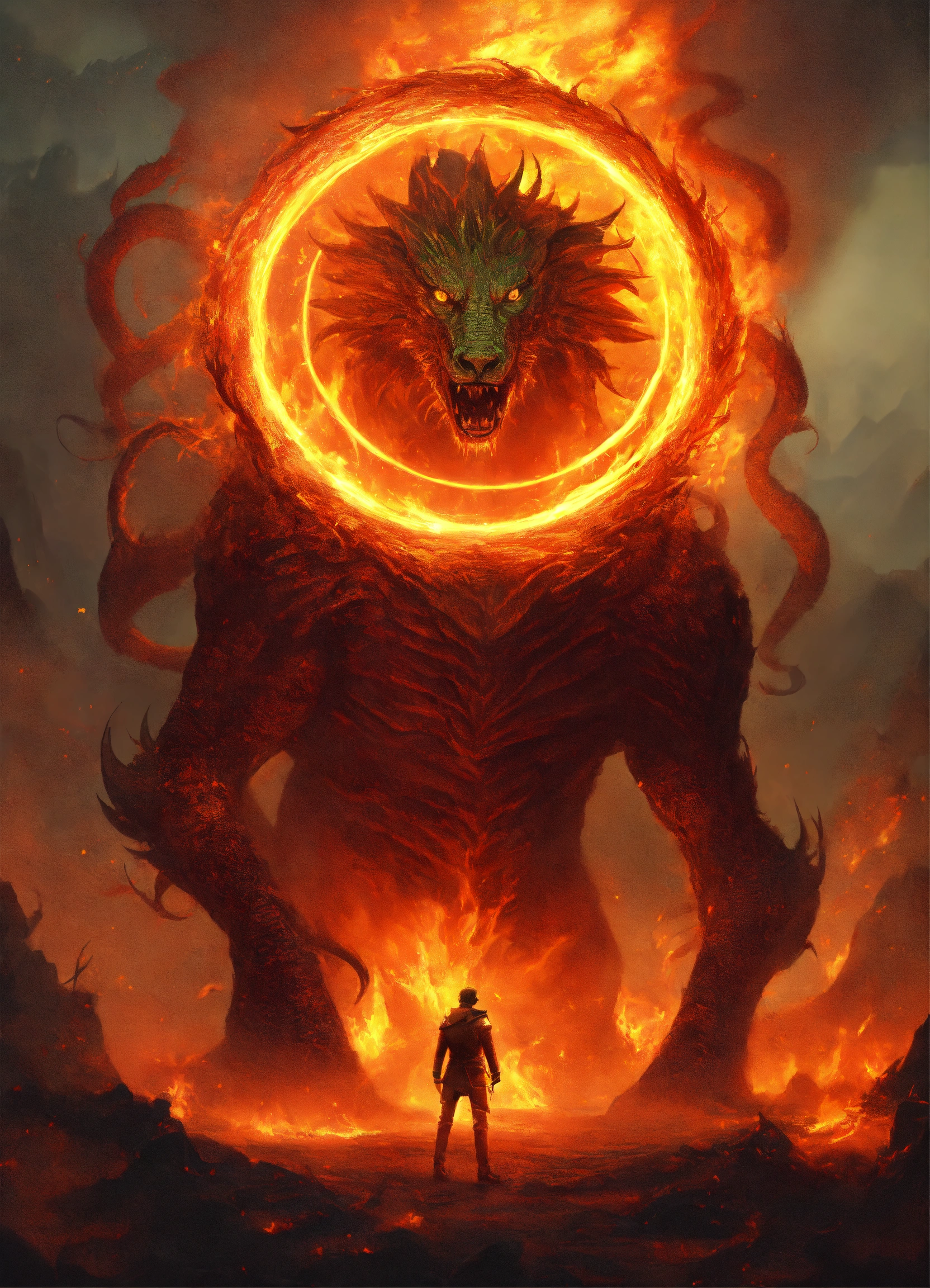 Creature locked in the middle of a ring of fire