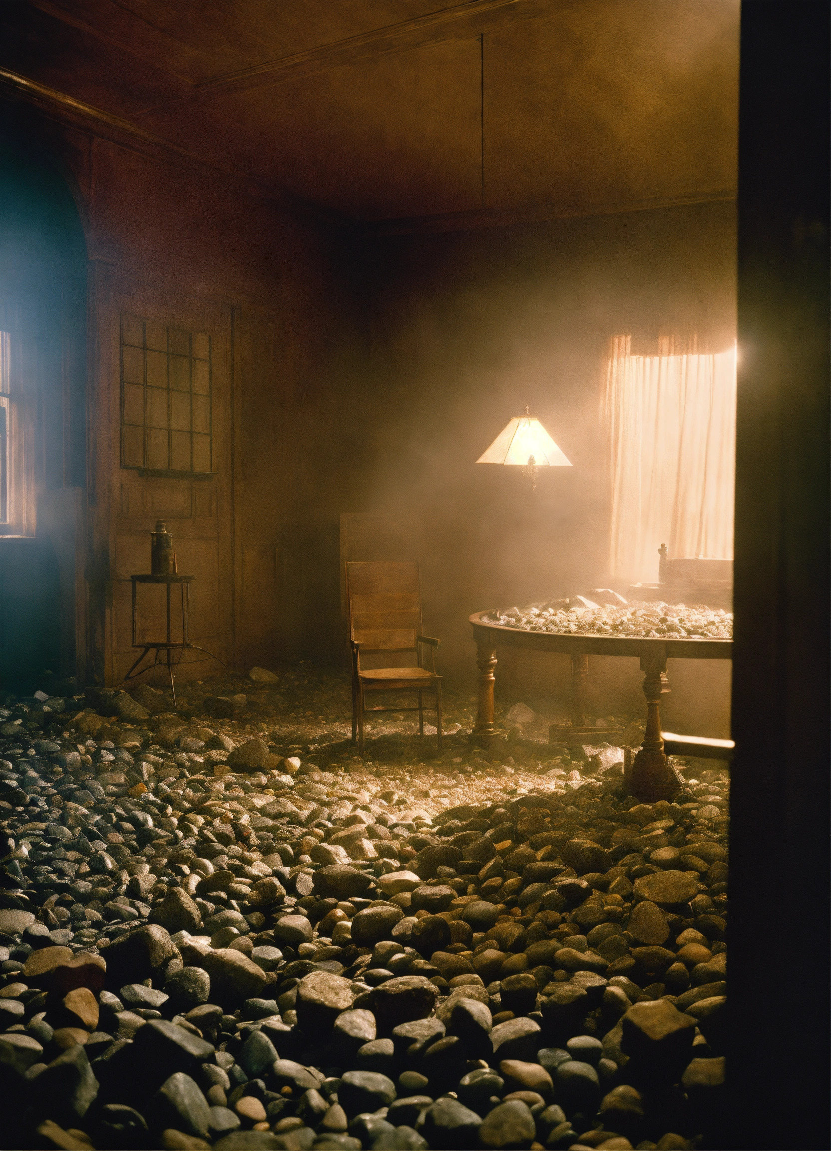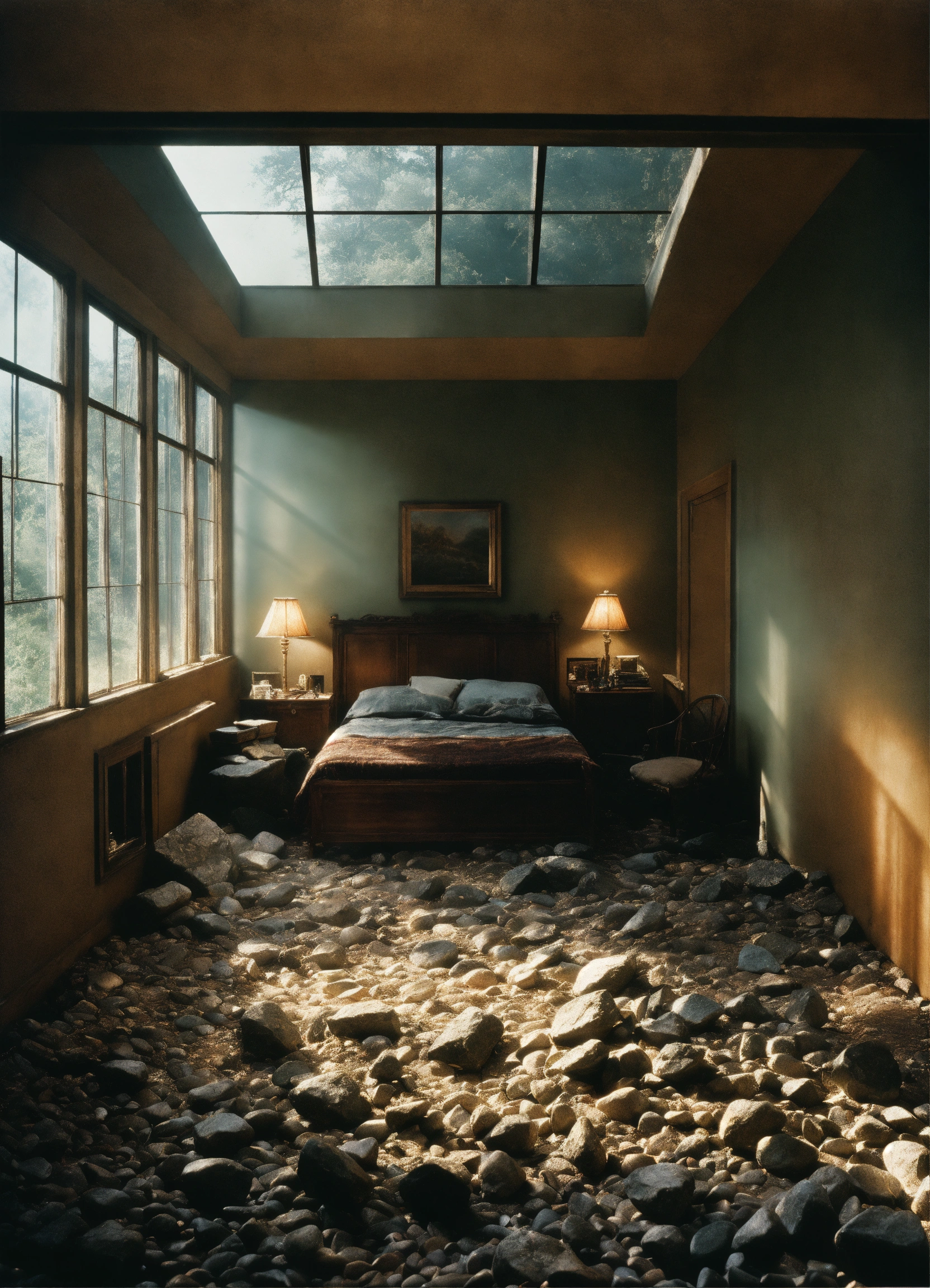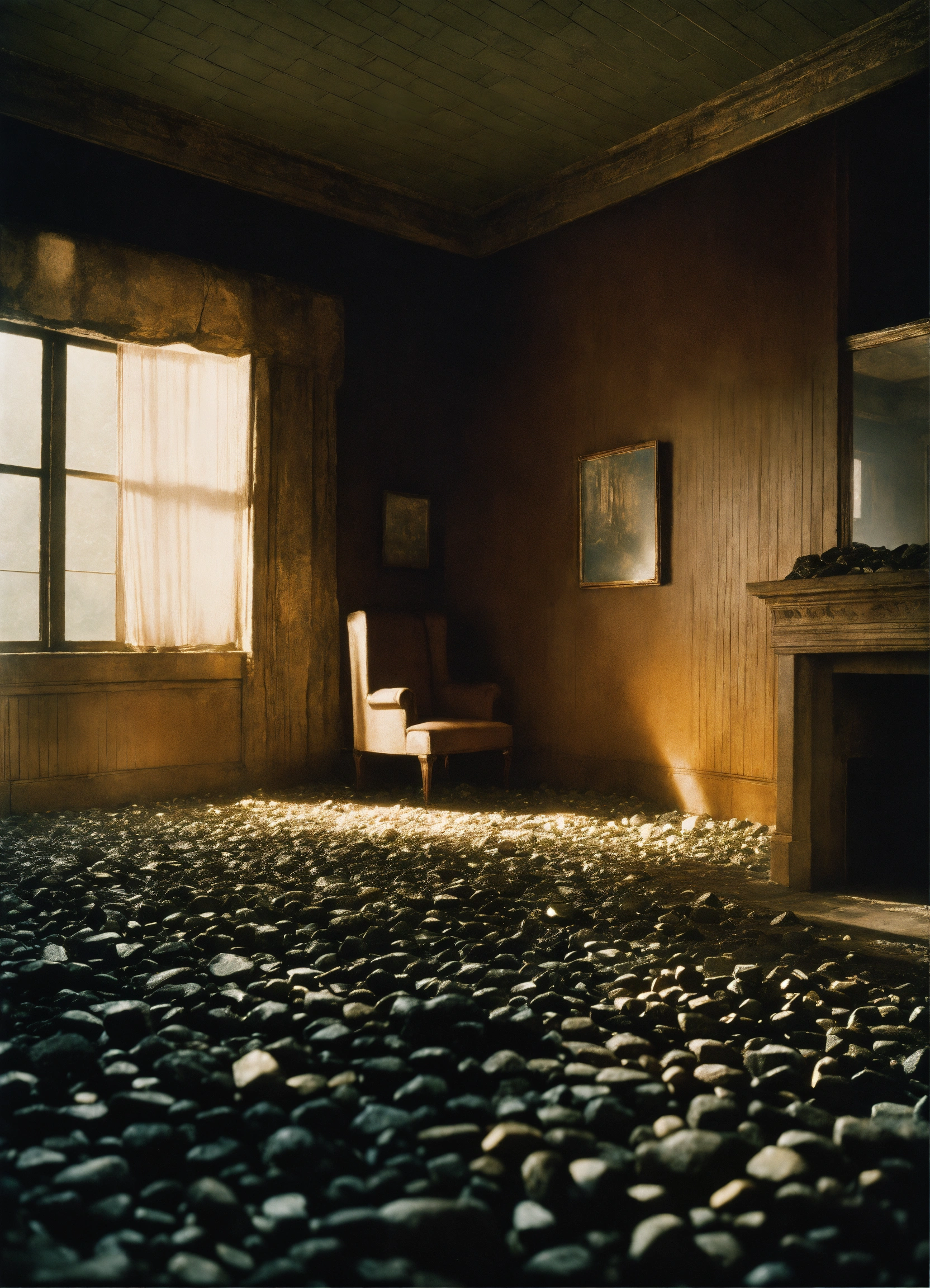 Analog photographic highly detailed cinematic photograph of an empty chamber made of razor-sharp rocks, hyperdetailed, ominous, ethereal, dramatic lighting, gregory crewdson