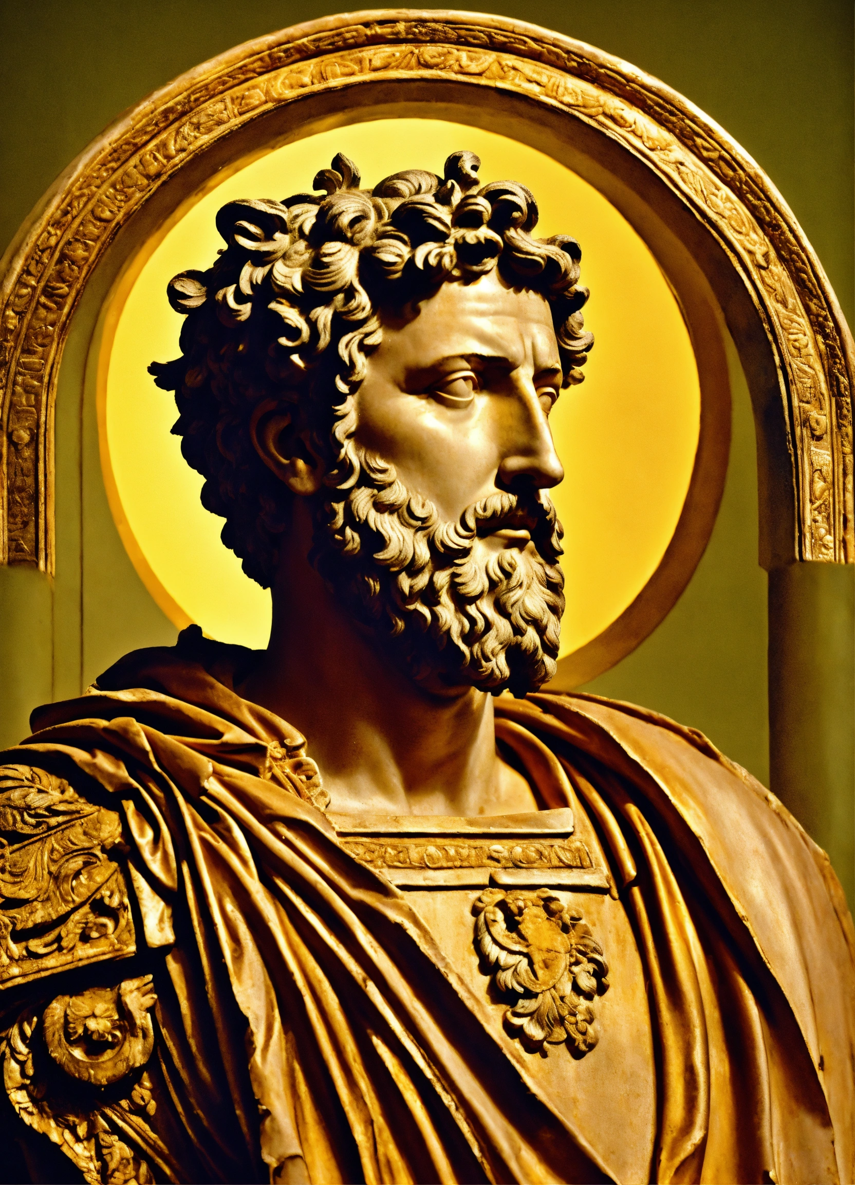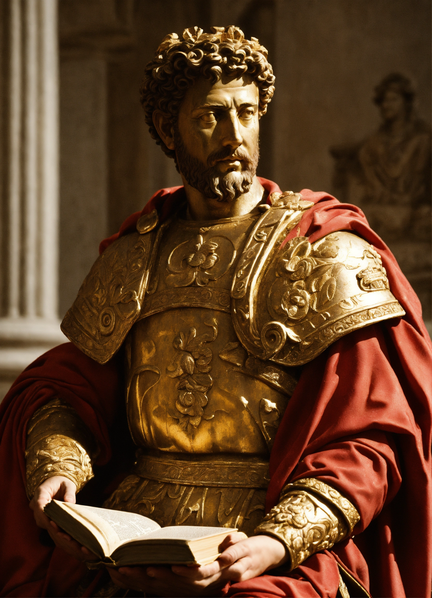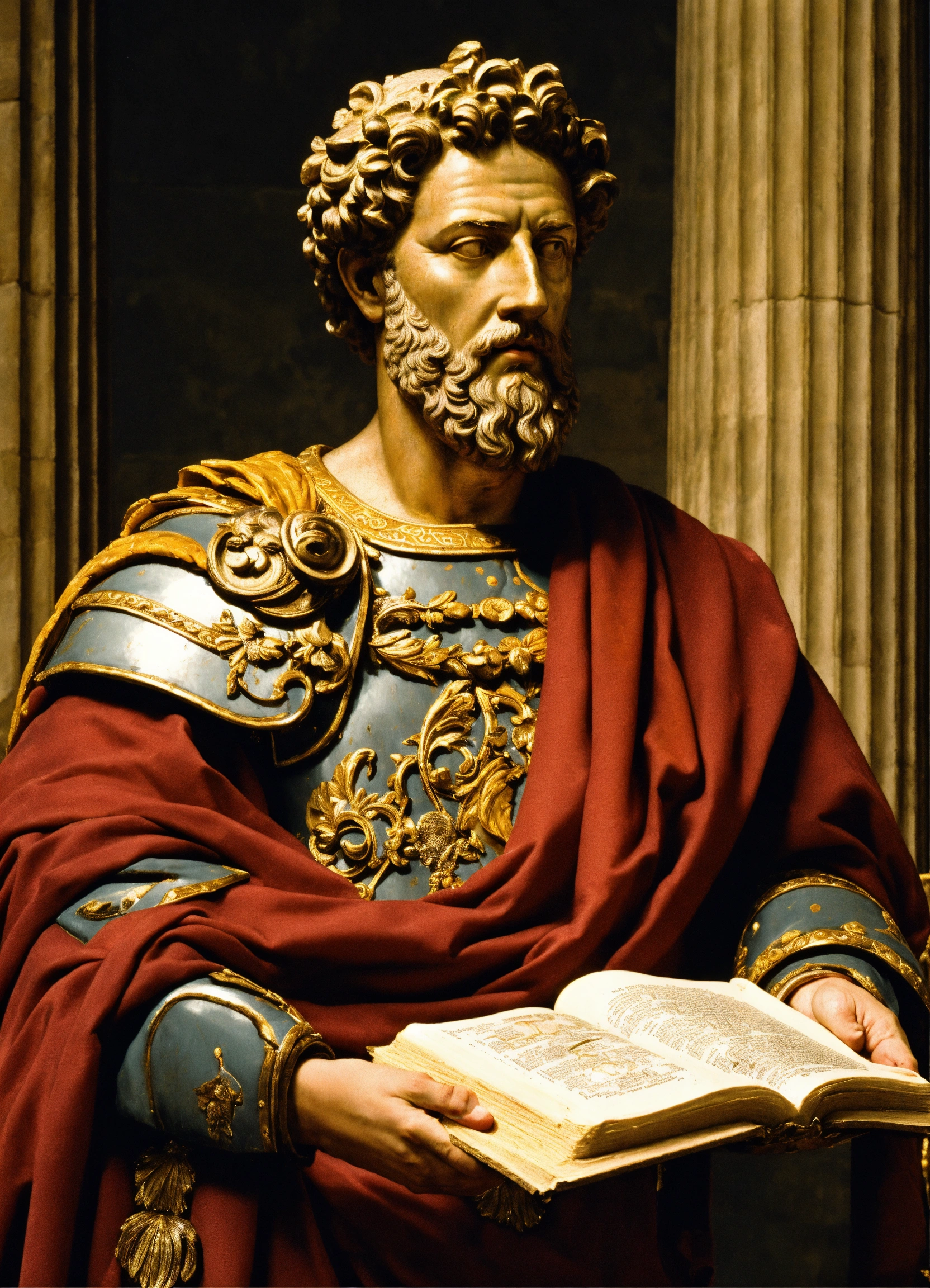 Marcus aurelius (roman emperor) (121-180) was a roman emperor holding a book and thinking