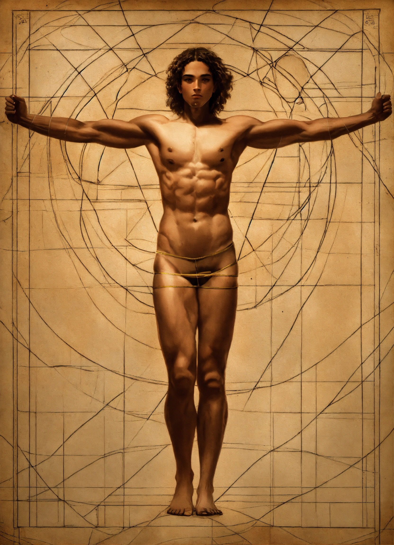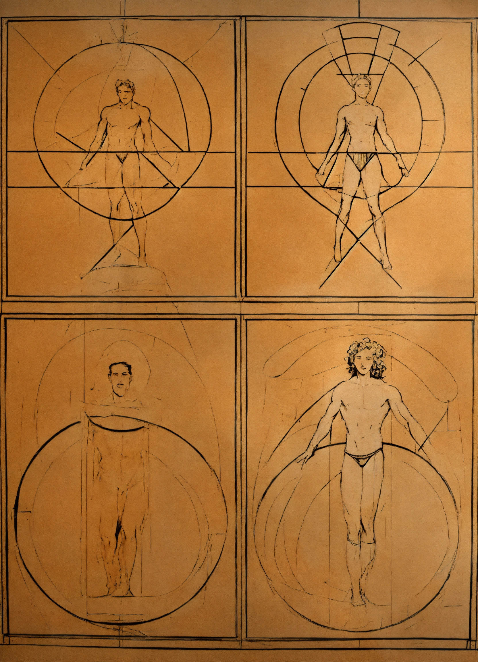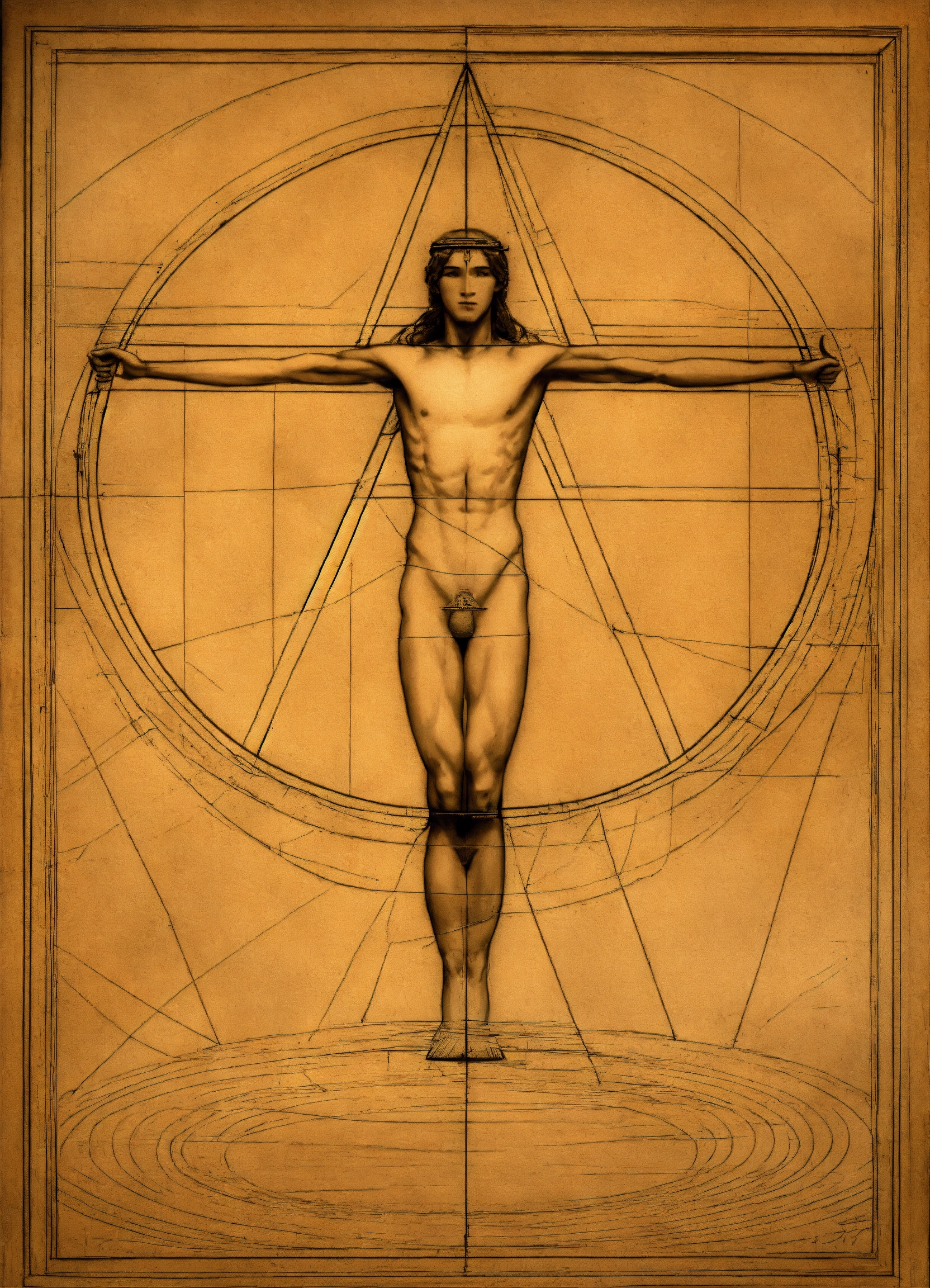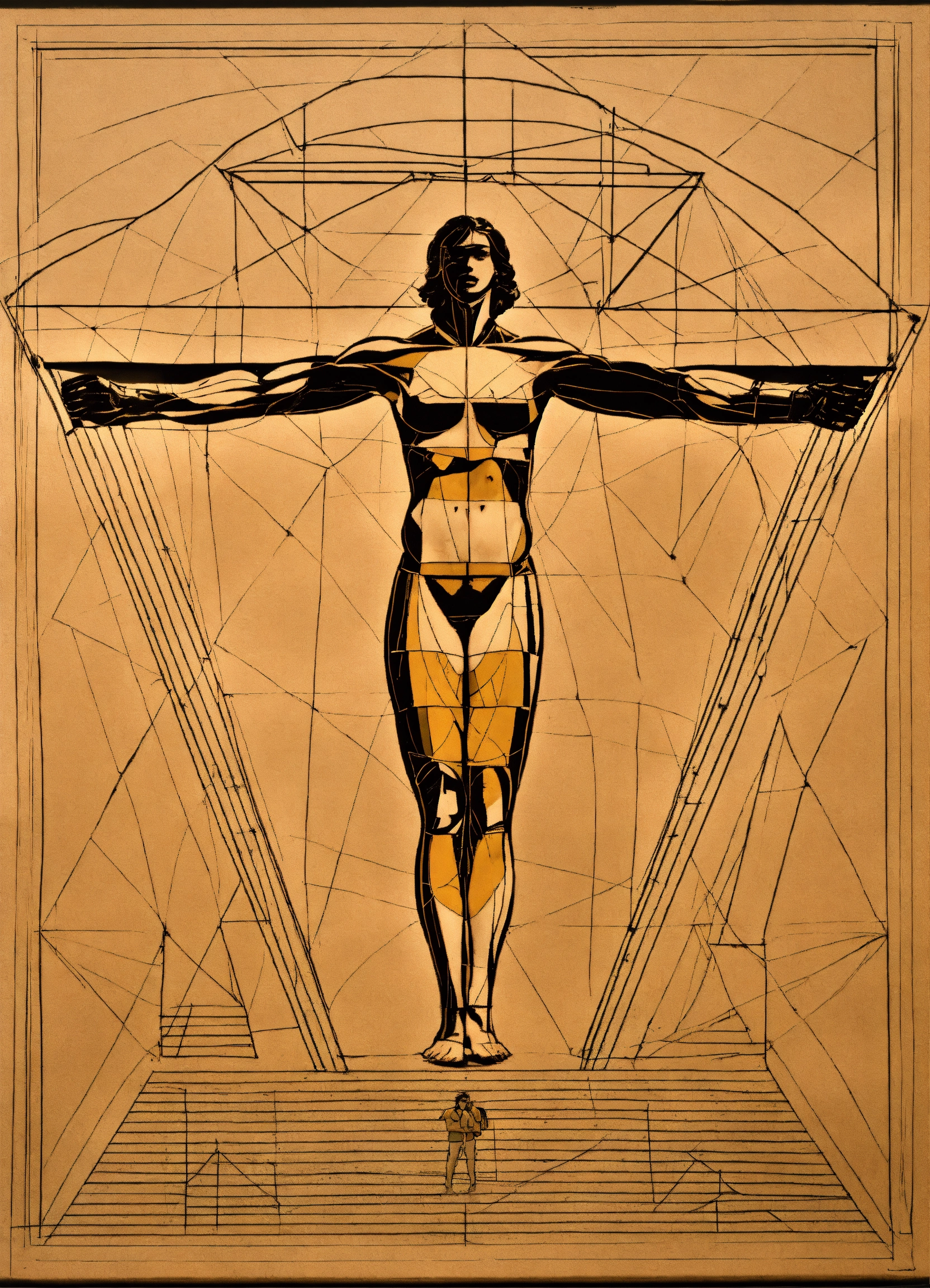A vitruvian male athlete and a female athlete surrounded by a triangle