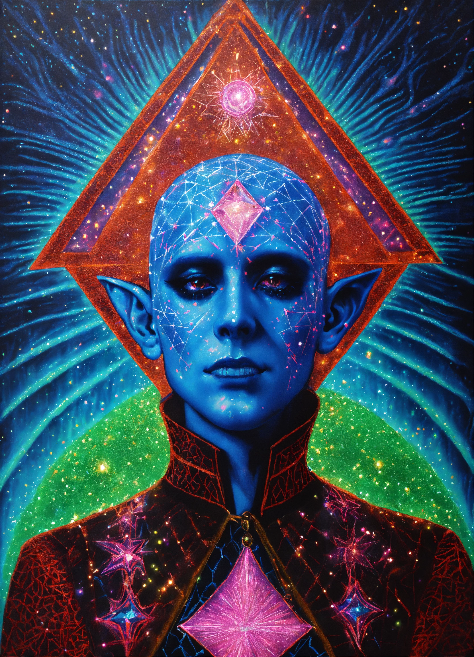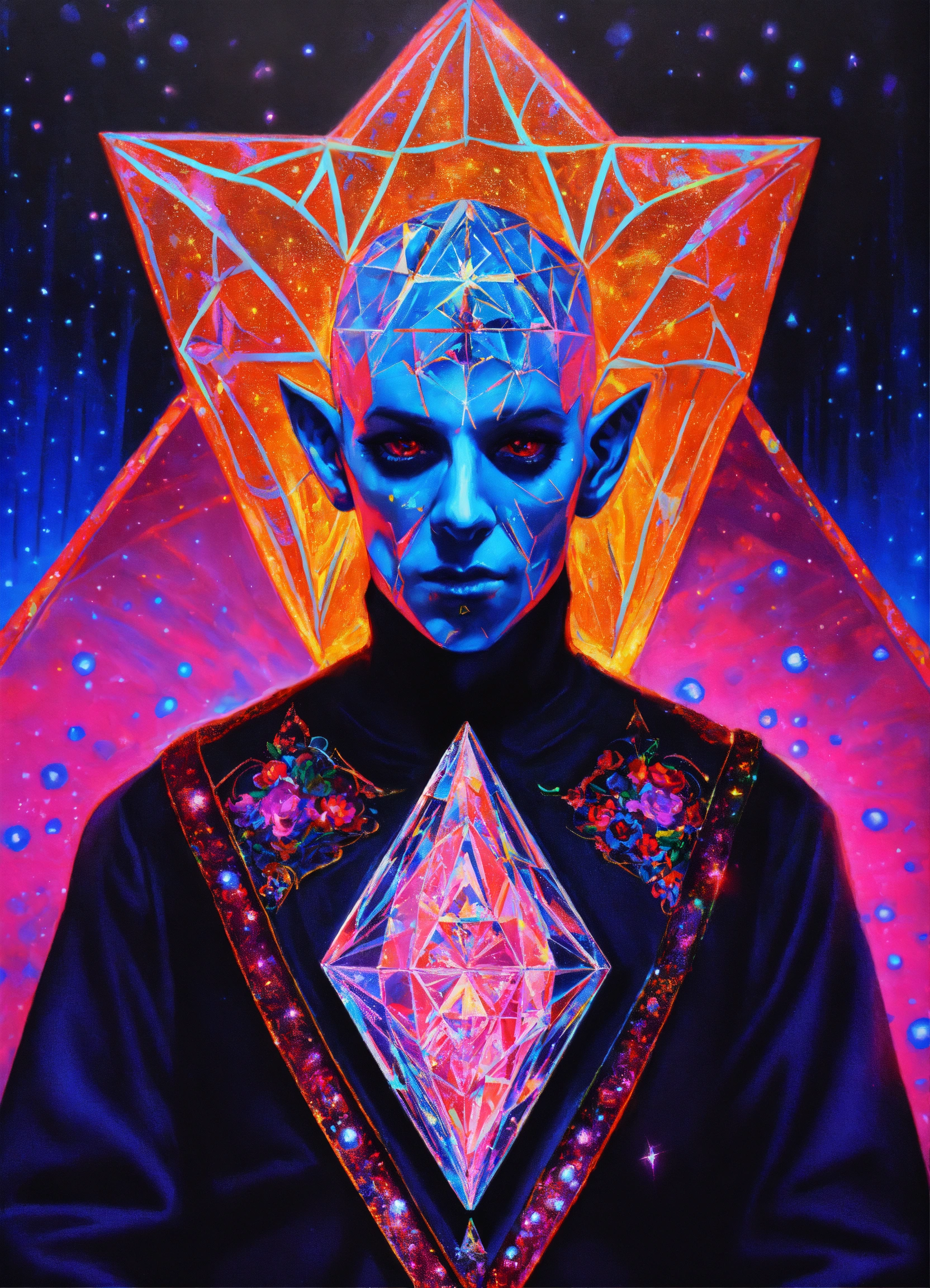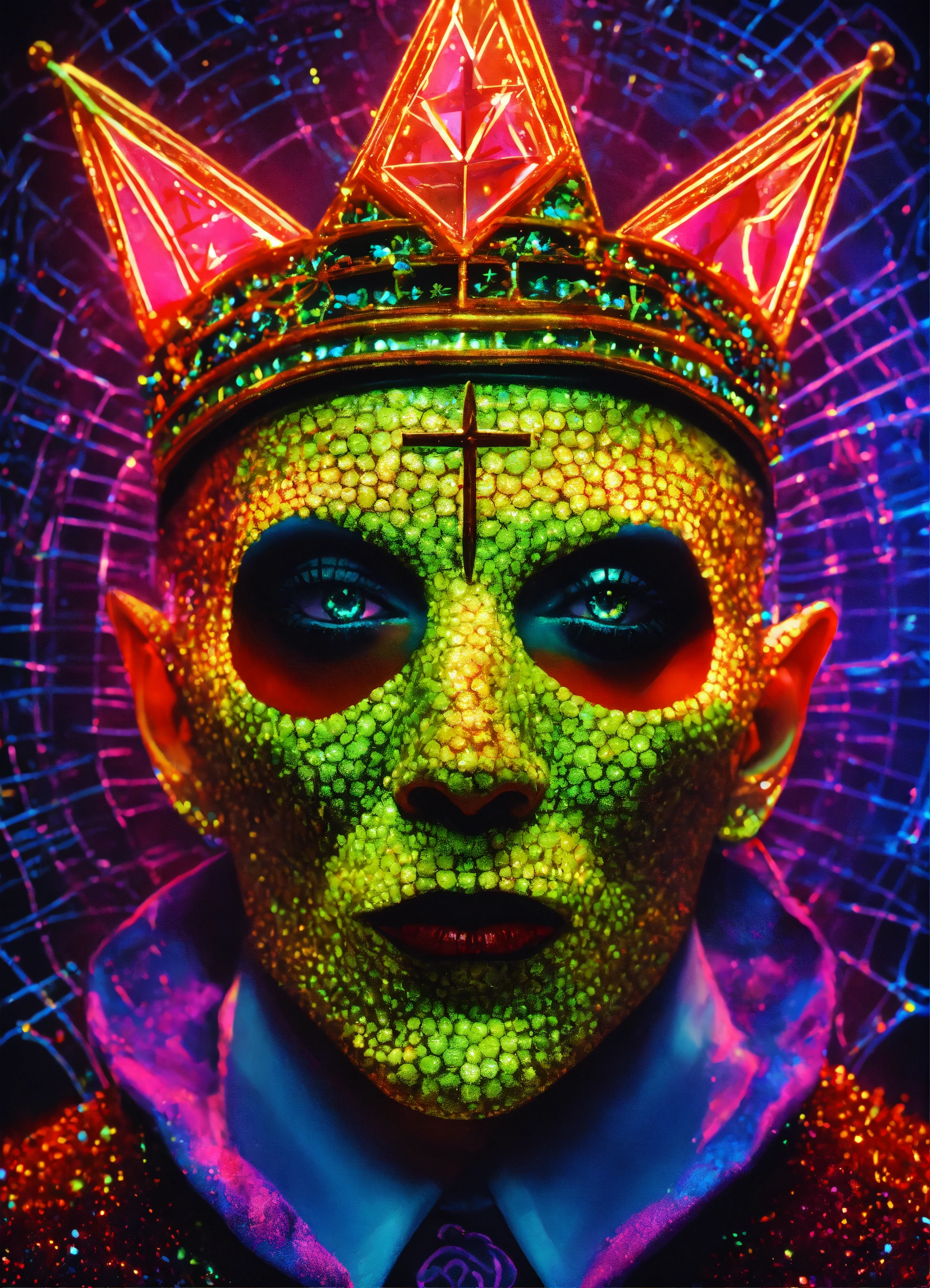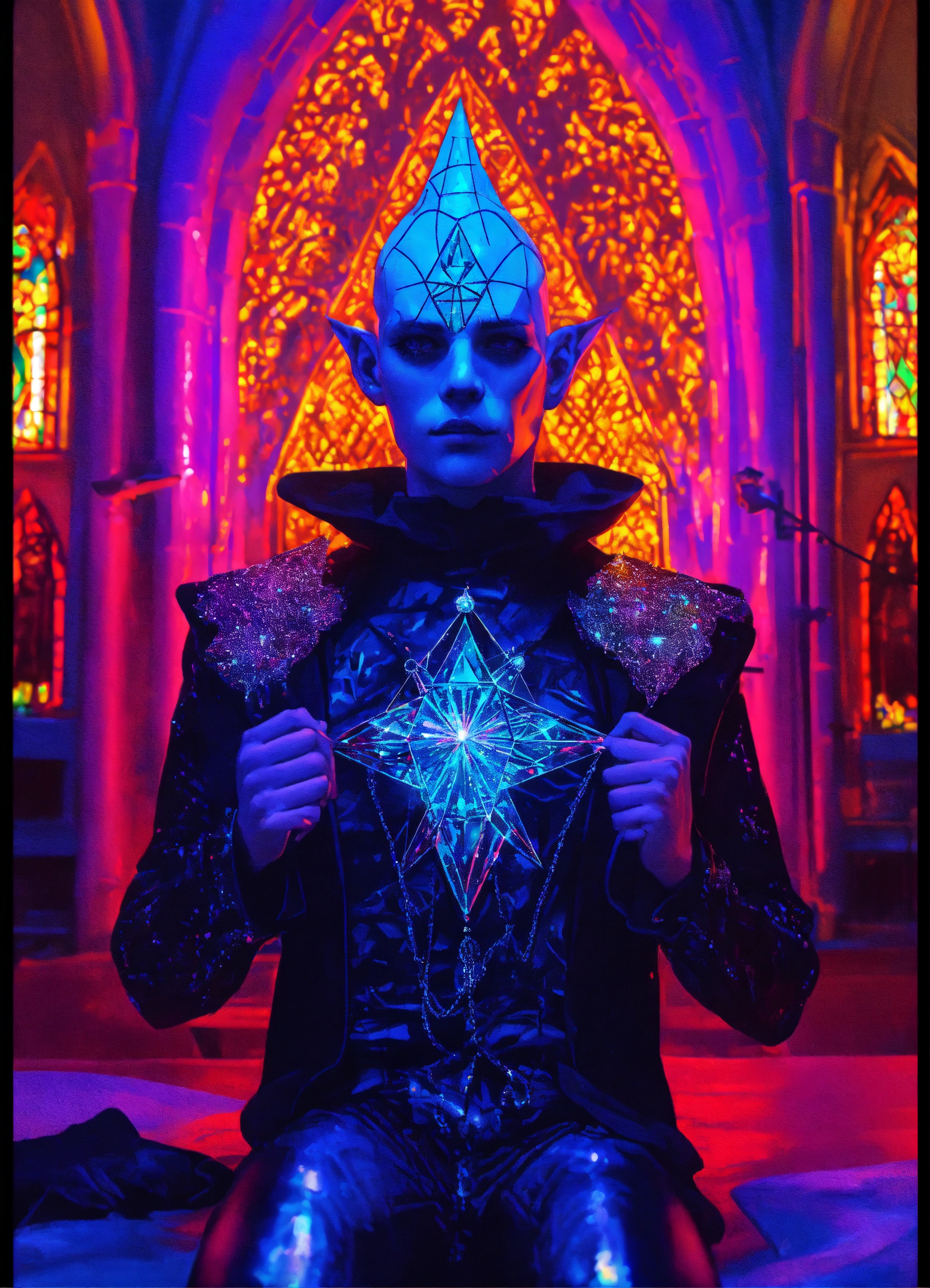 Photorealistic pinhead in a diamond blacklight dmt demon glitter gothic church