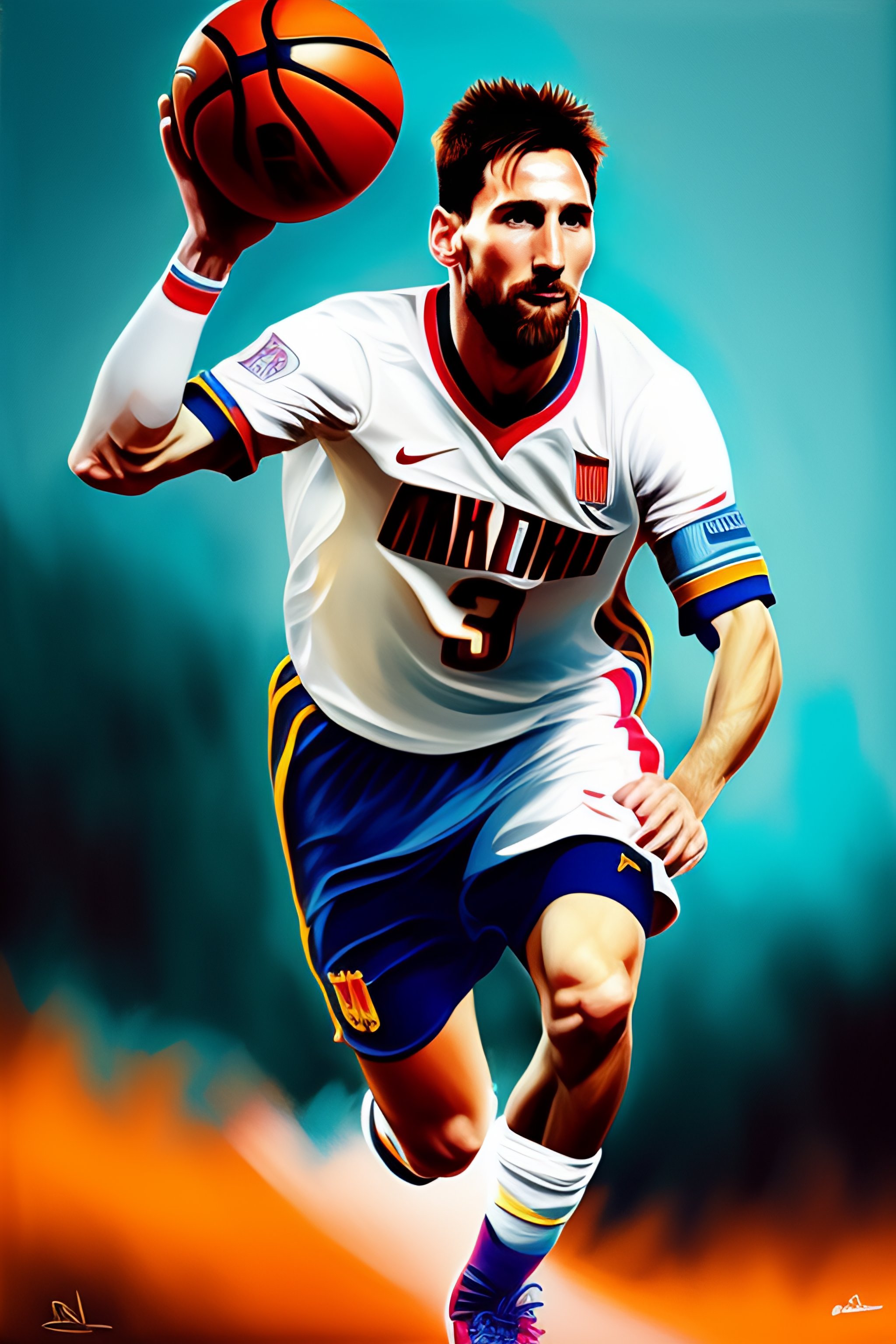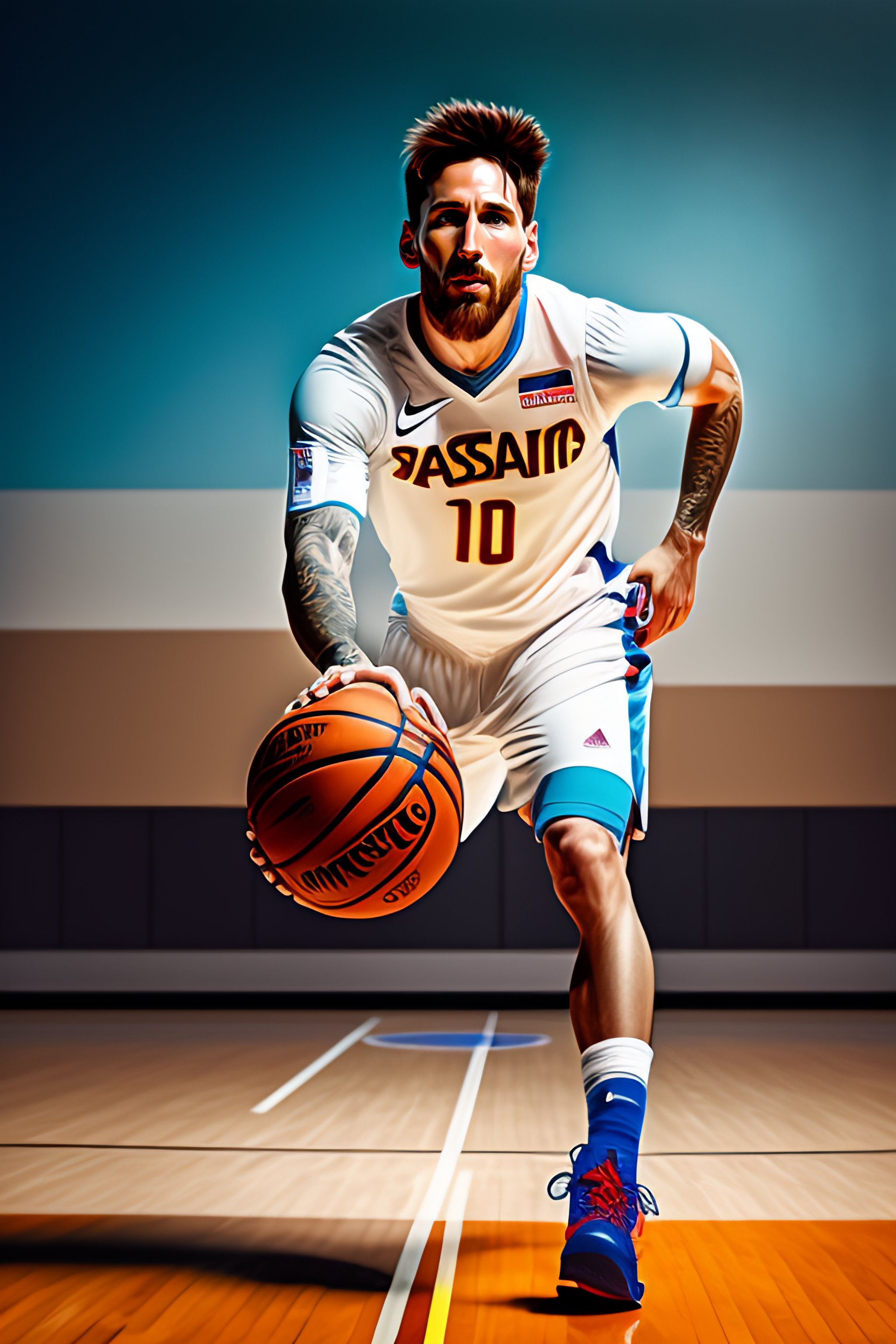 Portrait of messi playing basketball