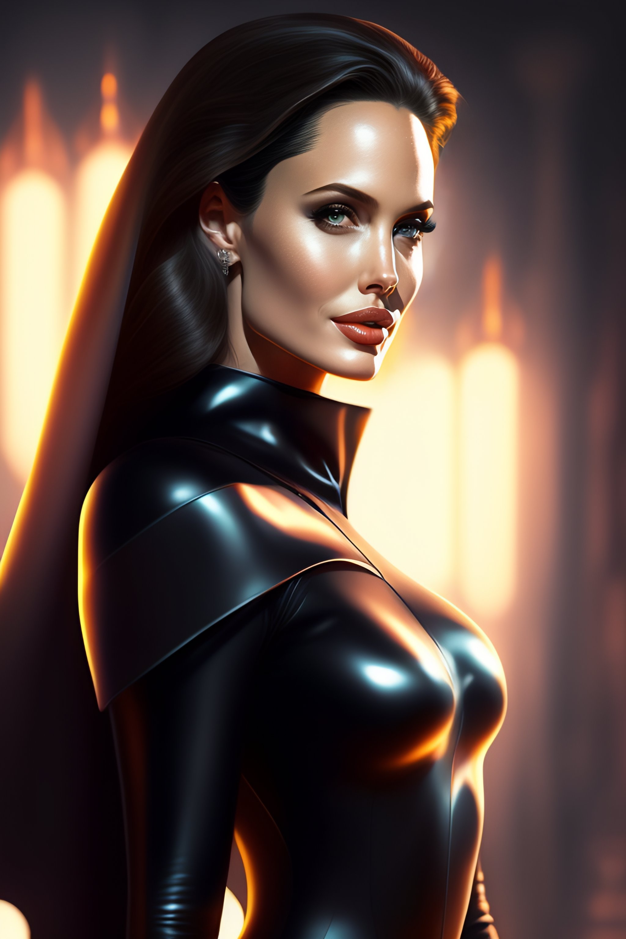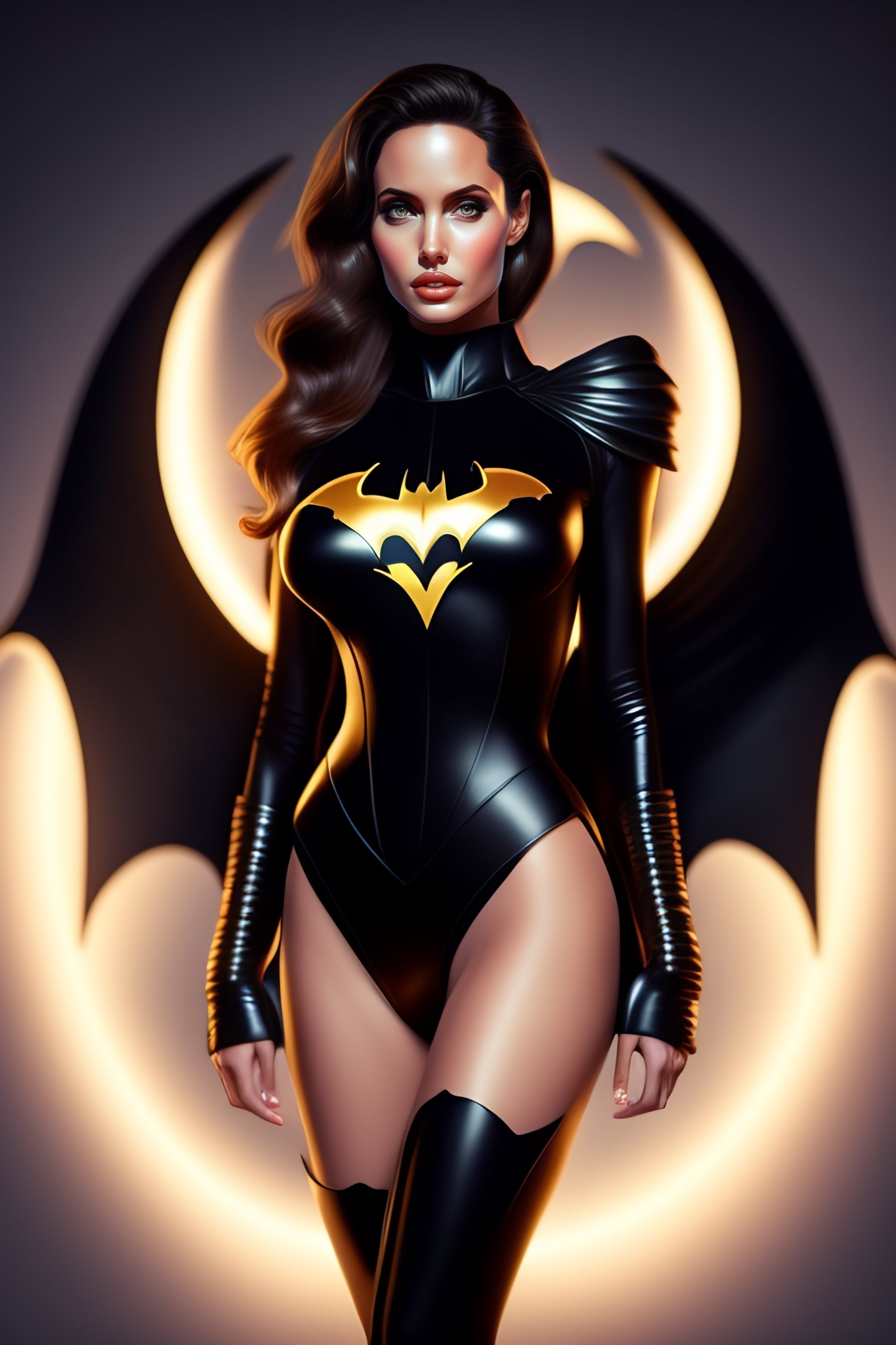 Young angelina jolie dressed in the batman uniform, elegant, glowing lights, waist to top, hights detailed, digital painting, artstation, glamor pose, concept art, smooth, sharp focus, illustration, art by artgerm and greg rutkowki