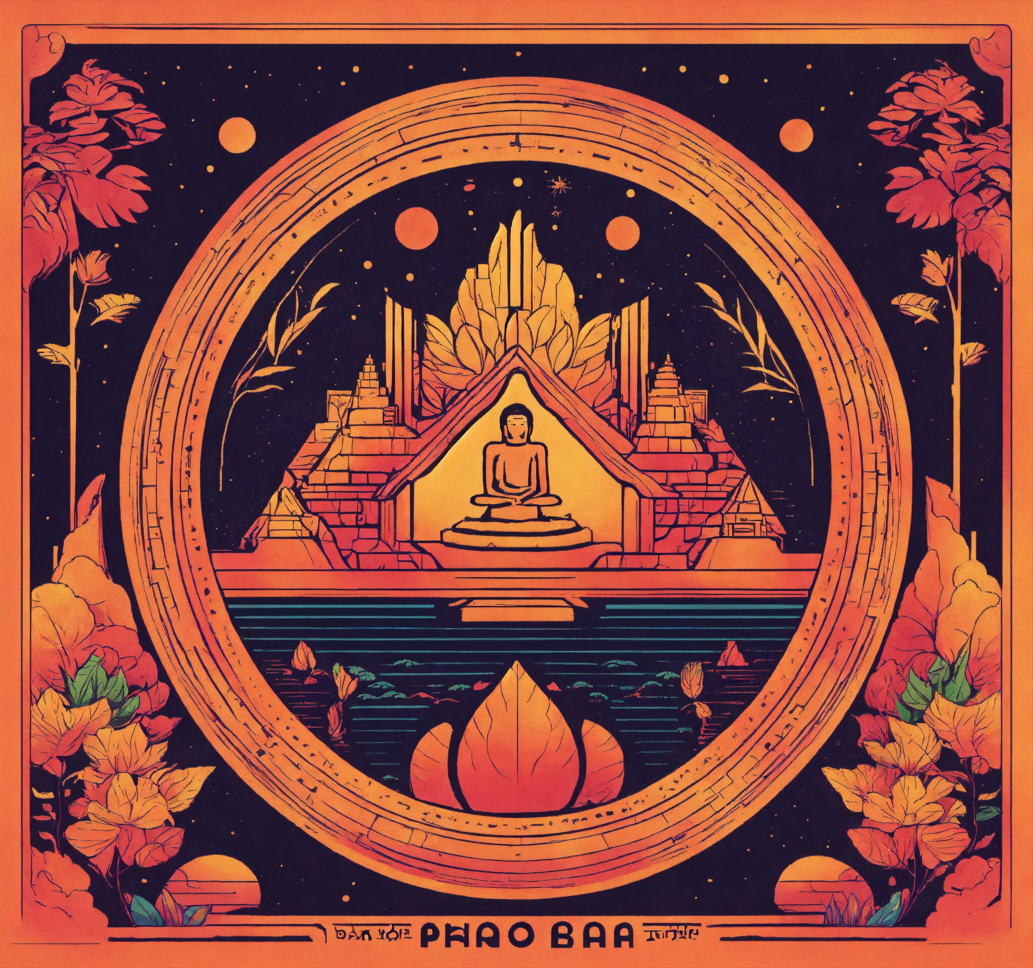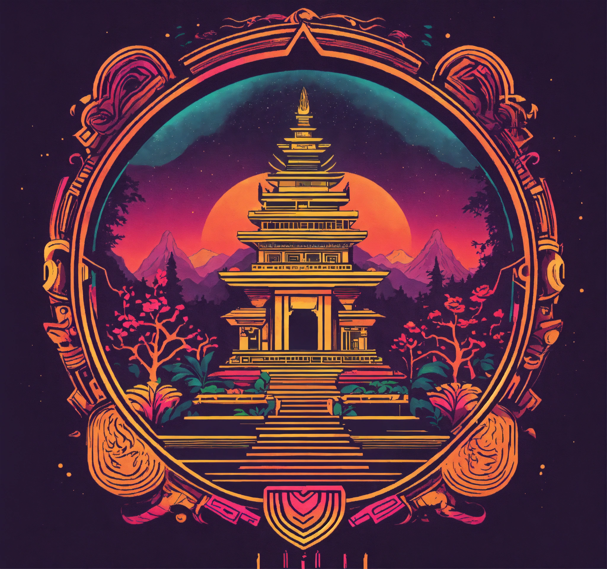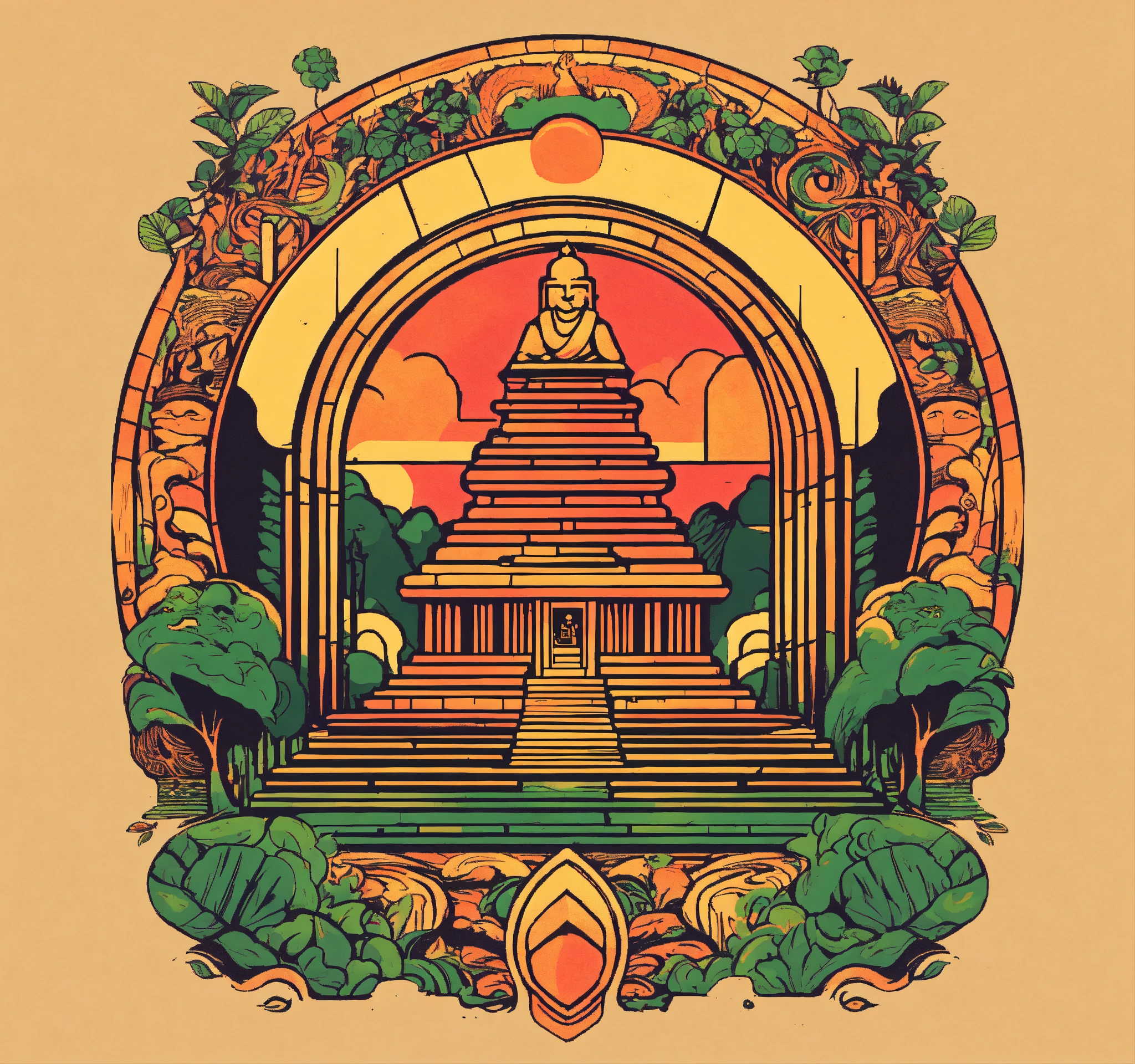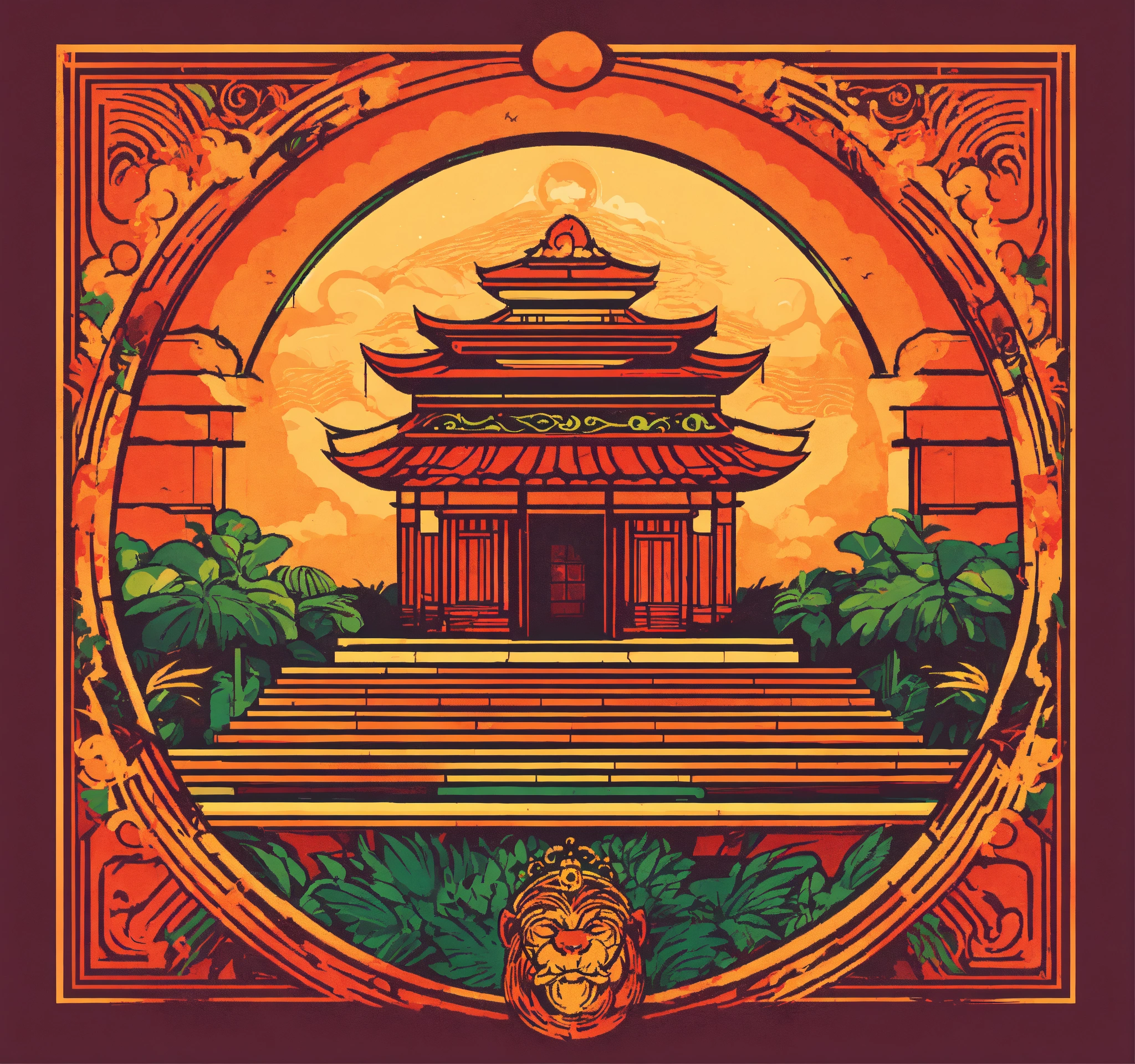 Logo of a pheno bank seed store. minimalist, psychedelic, stylized according to modern logo design trends. tporical forests, monkeys, lizards, dragons, rainforest, mandala designs. abstract vintage retrofuturistic. buddha, thai arcitecture style on backstage