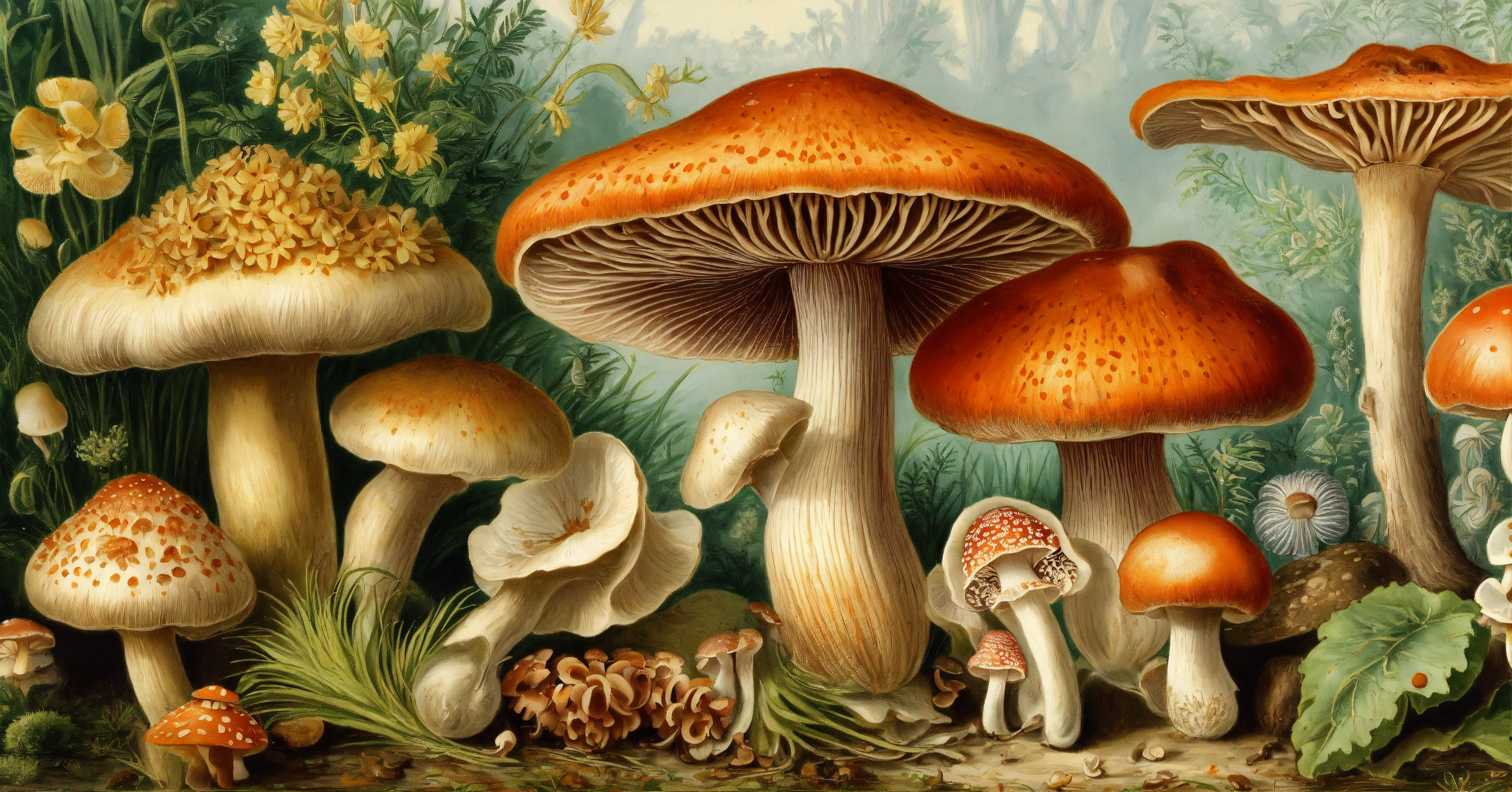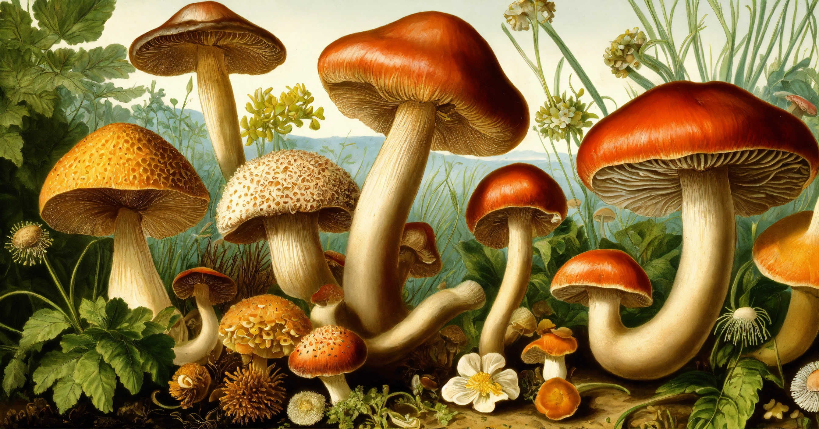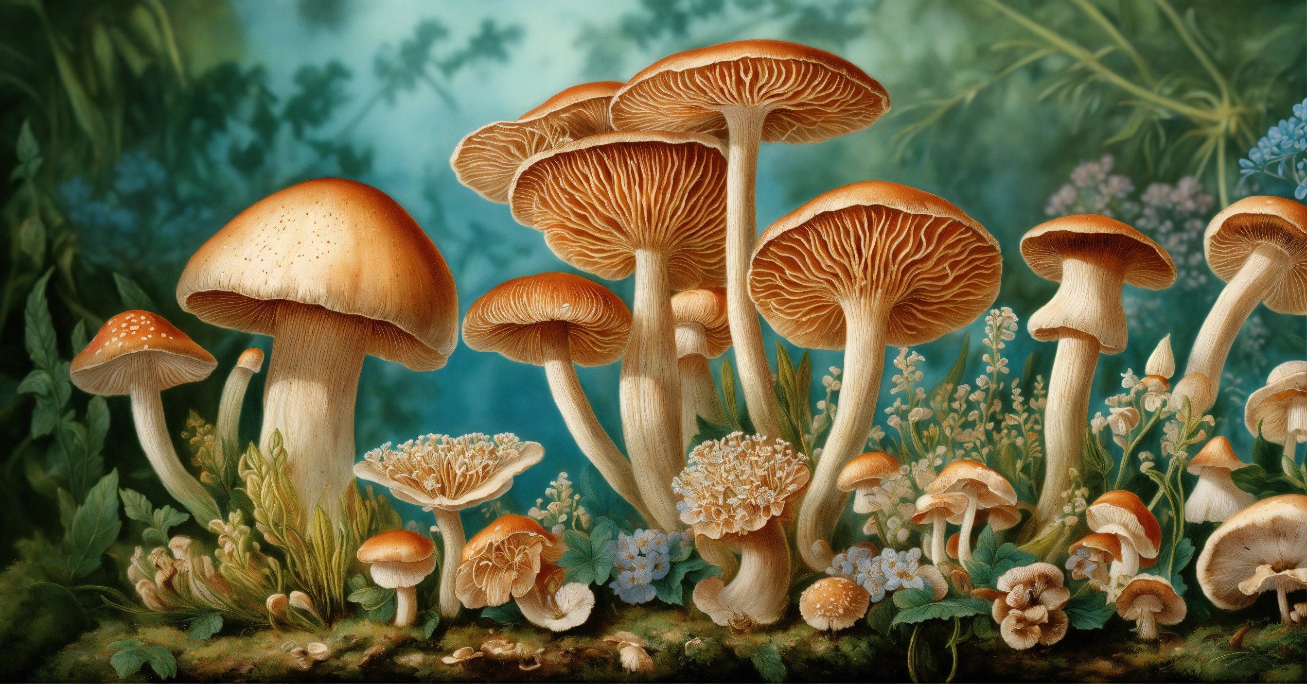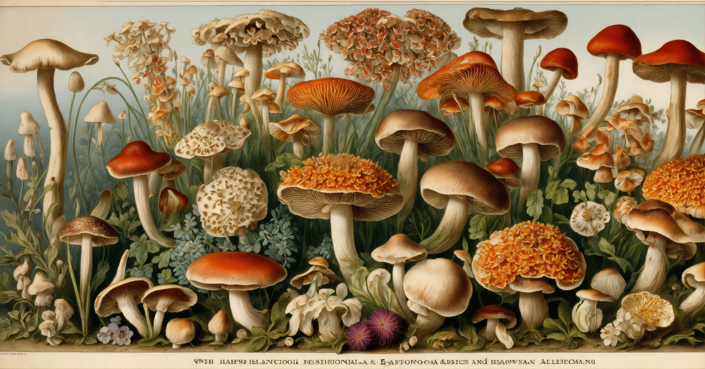 Mushrooms and flowers ernst haeckel botanical illustration from ancient encyclopedia