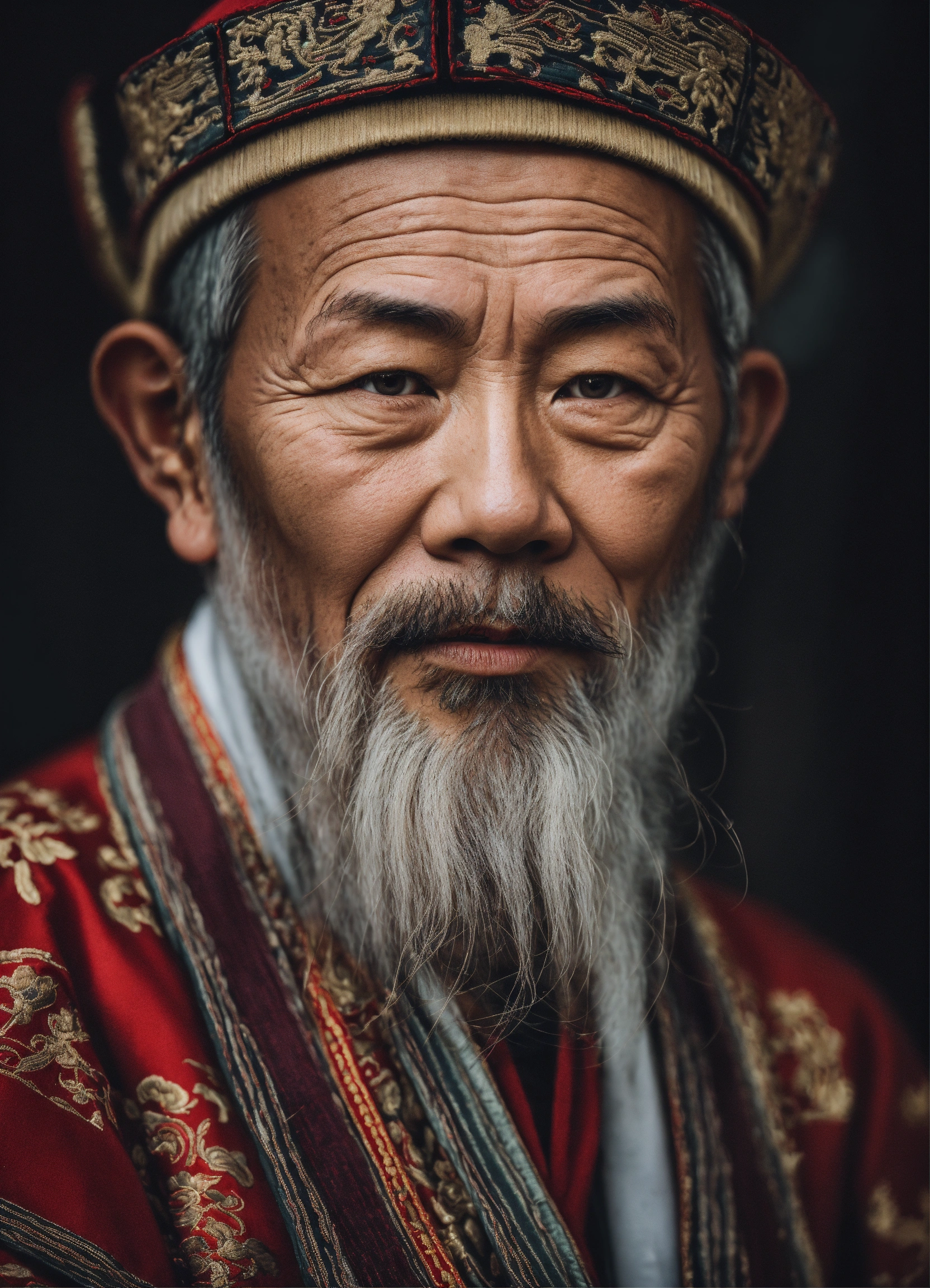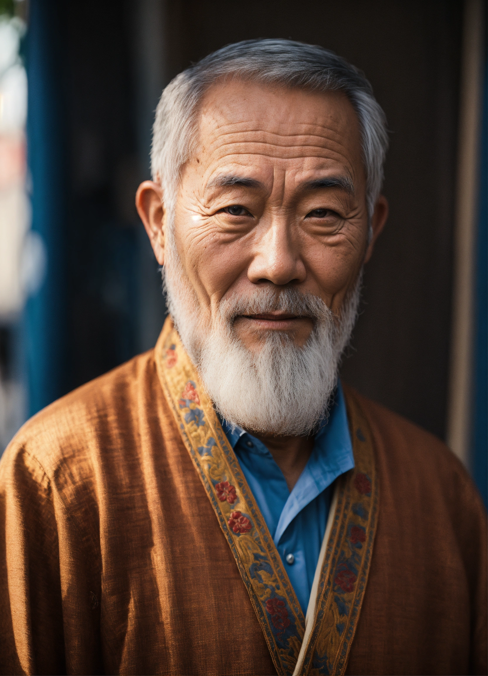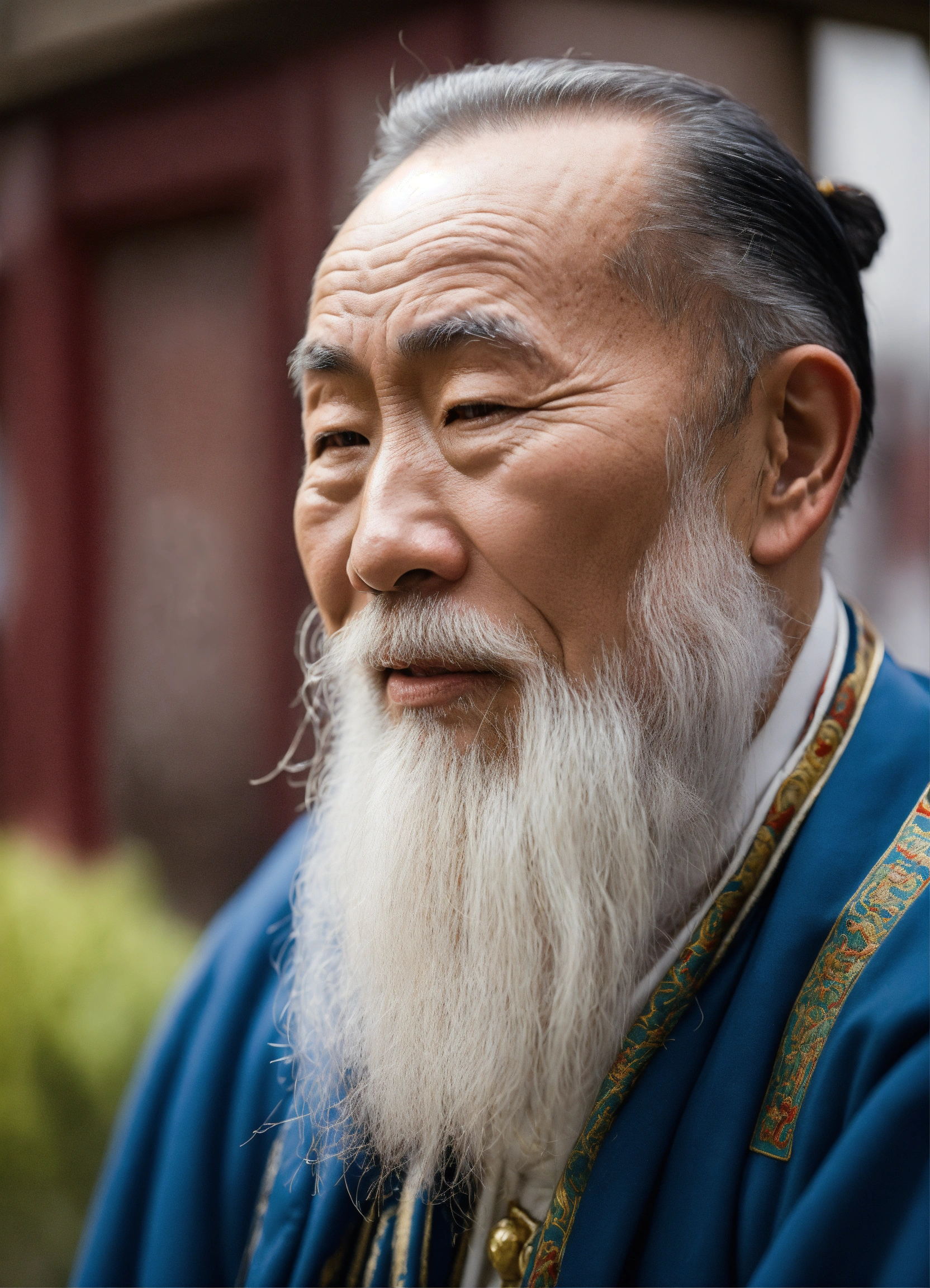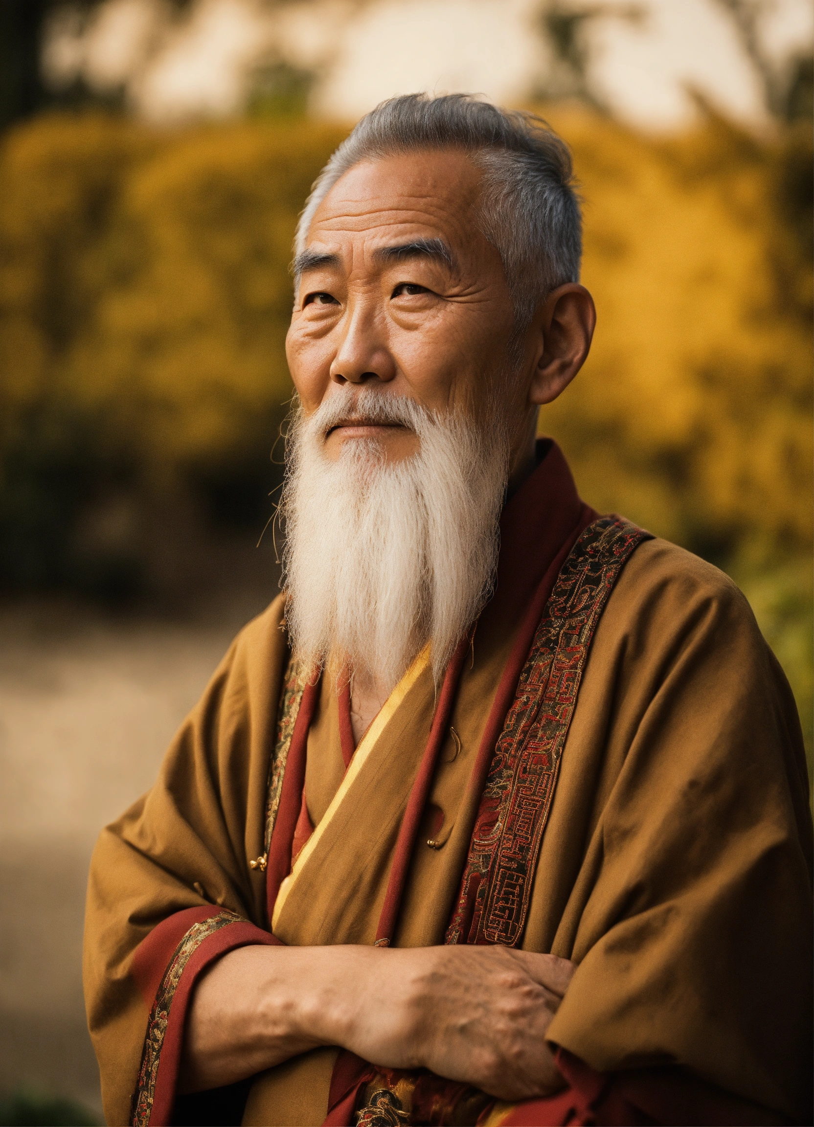 Un vieux homme chinois avec barbe blanche qui donne confiance