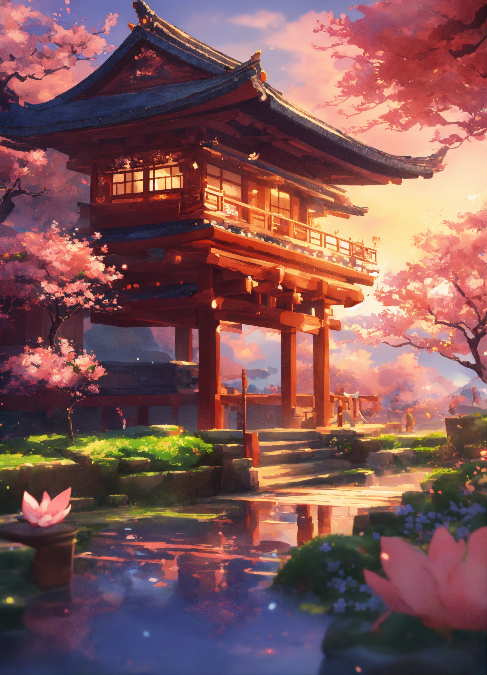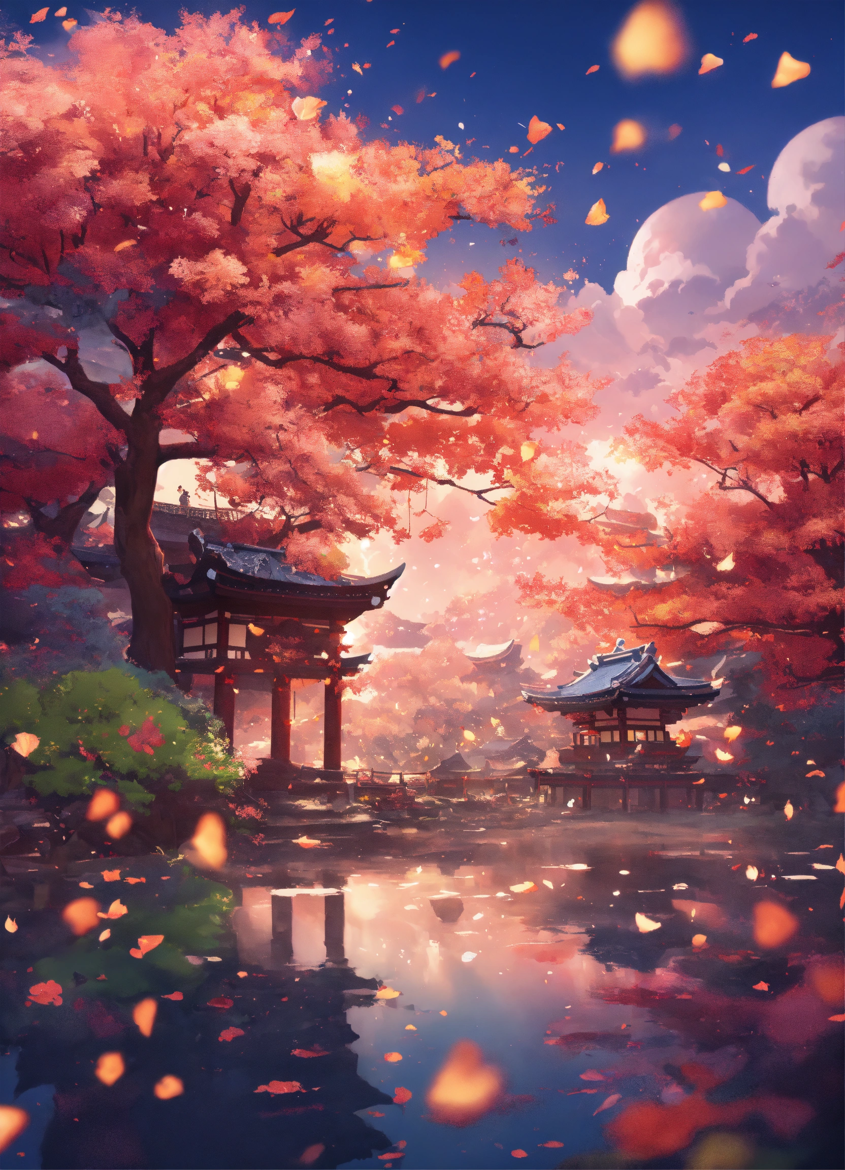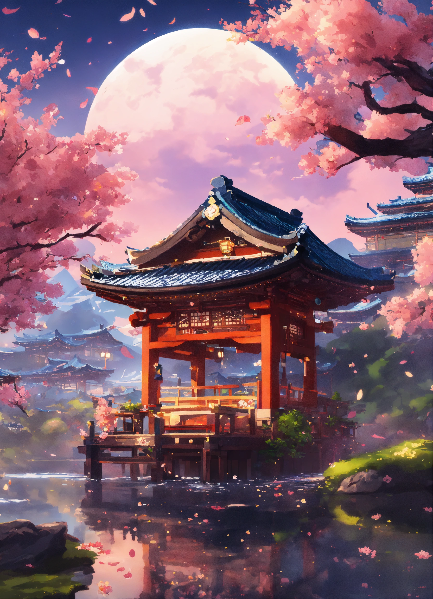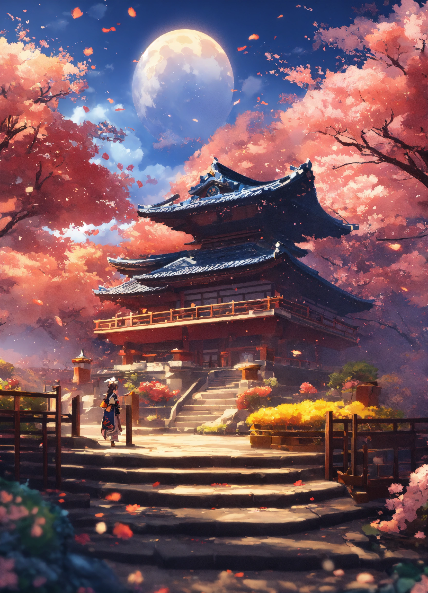 A detailed illustration a print of genshin impact inazuma background, flowers splash, shogun design, in the style of genshin impact, girls samurai, 3d vector art, fantasy art, bokeh, adobe illustrator, digital painting, ultra resolution, moonlight, isometric style, future aesthetic, 4k resolution, photorealistic rendering, using cinema 4d