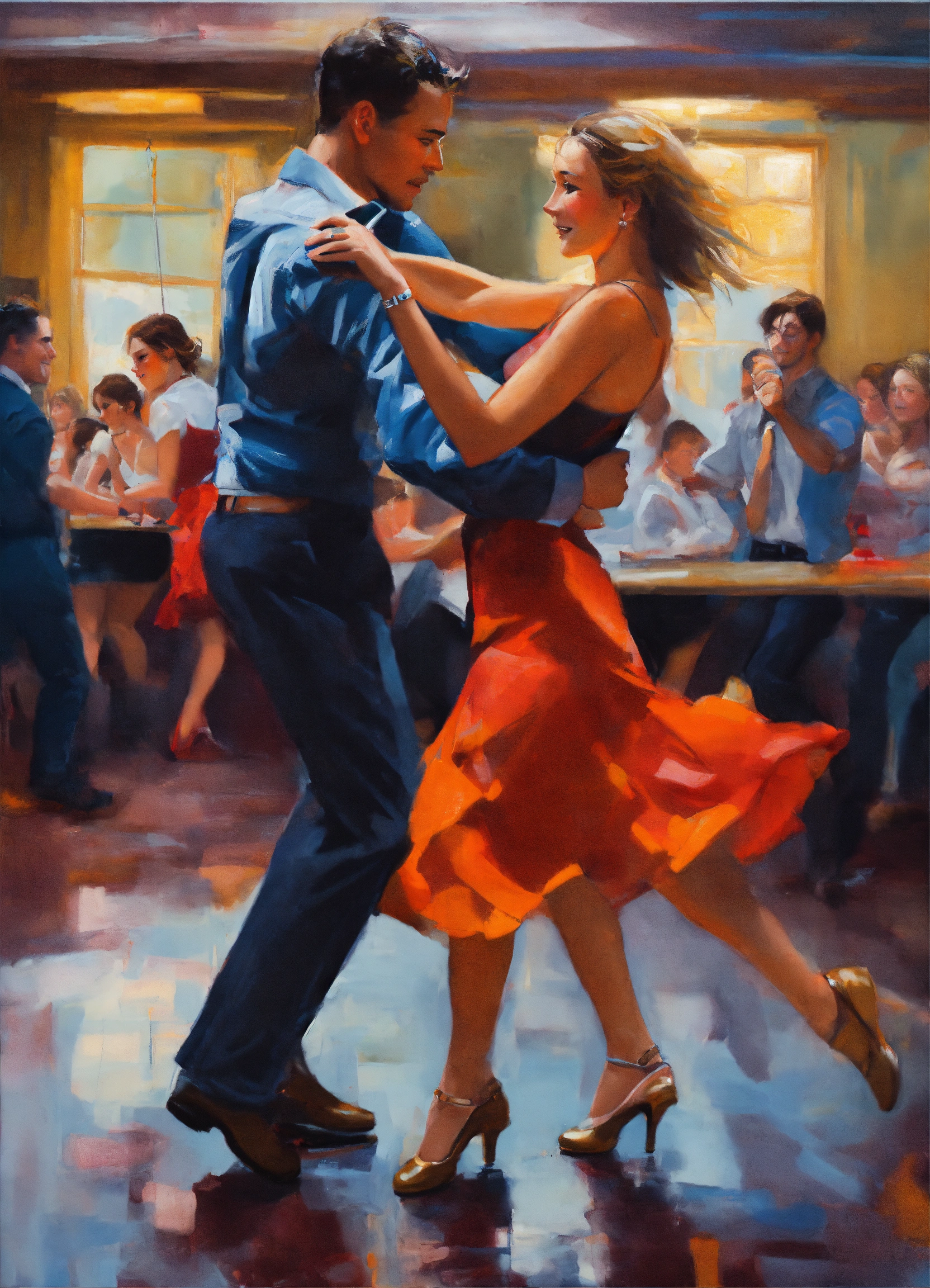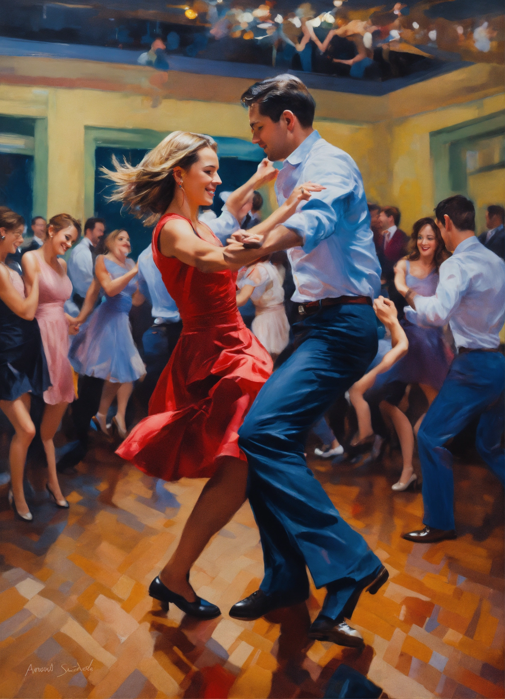 A young couple in their thirty's doing the swing dance, kicking and all, realistic picture, by andrew salgado
