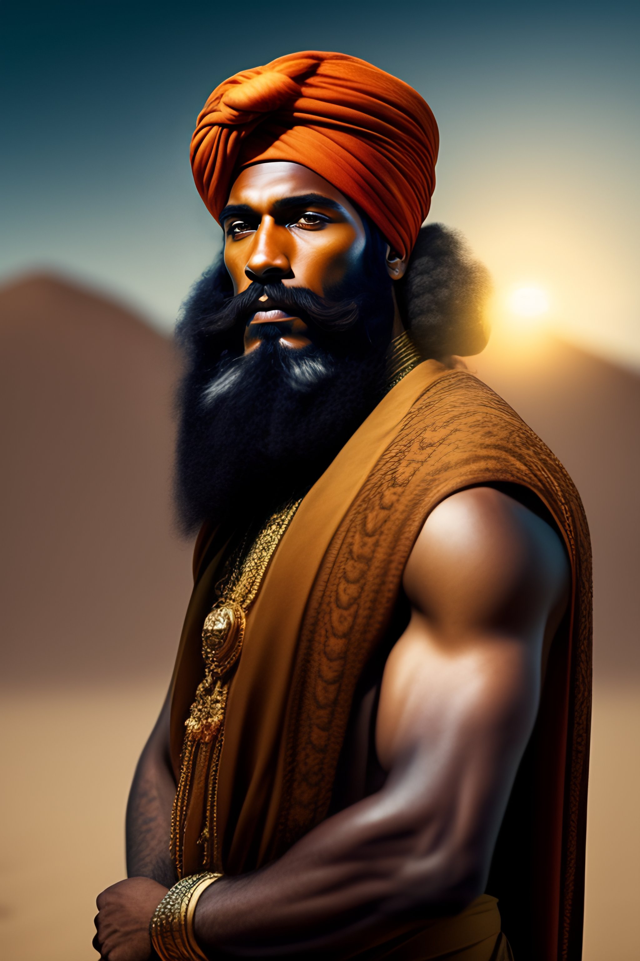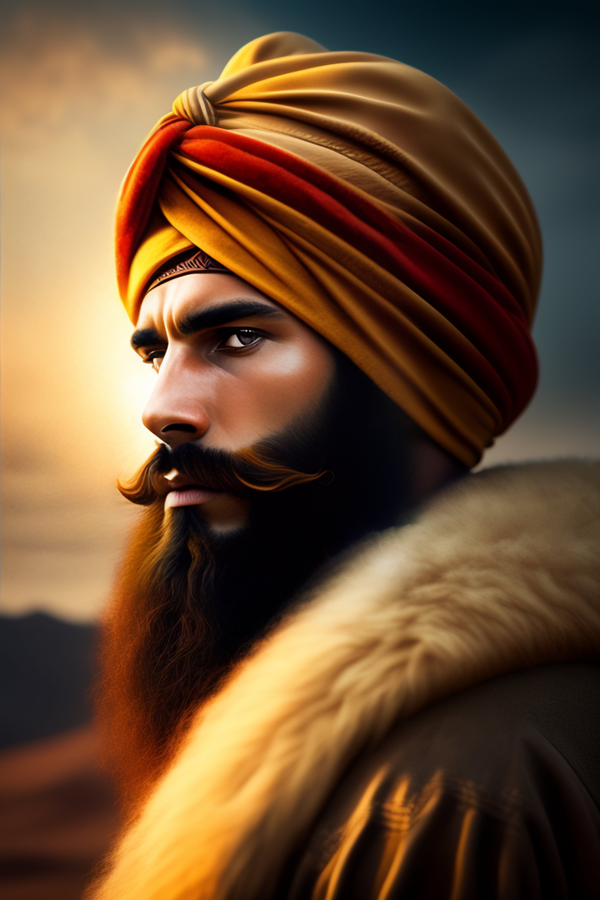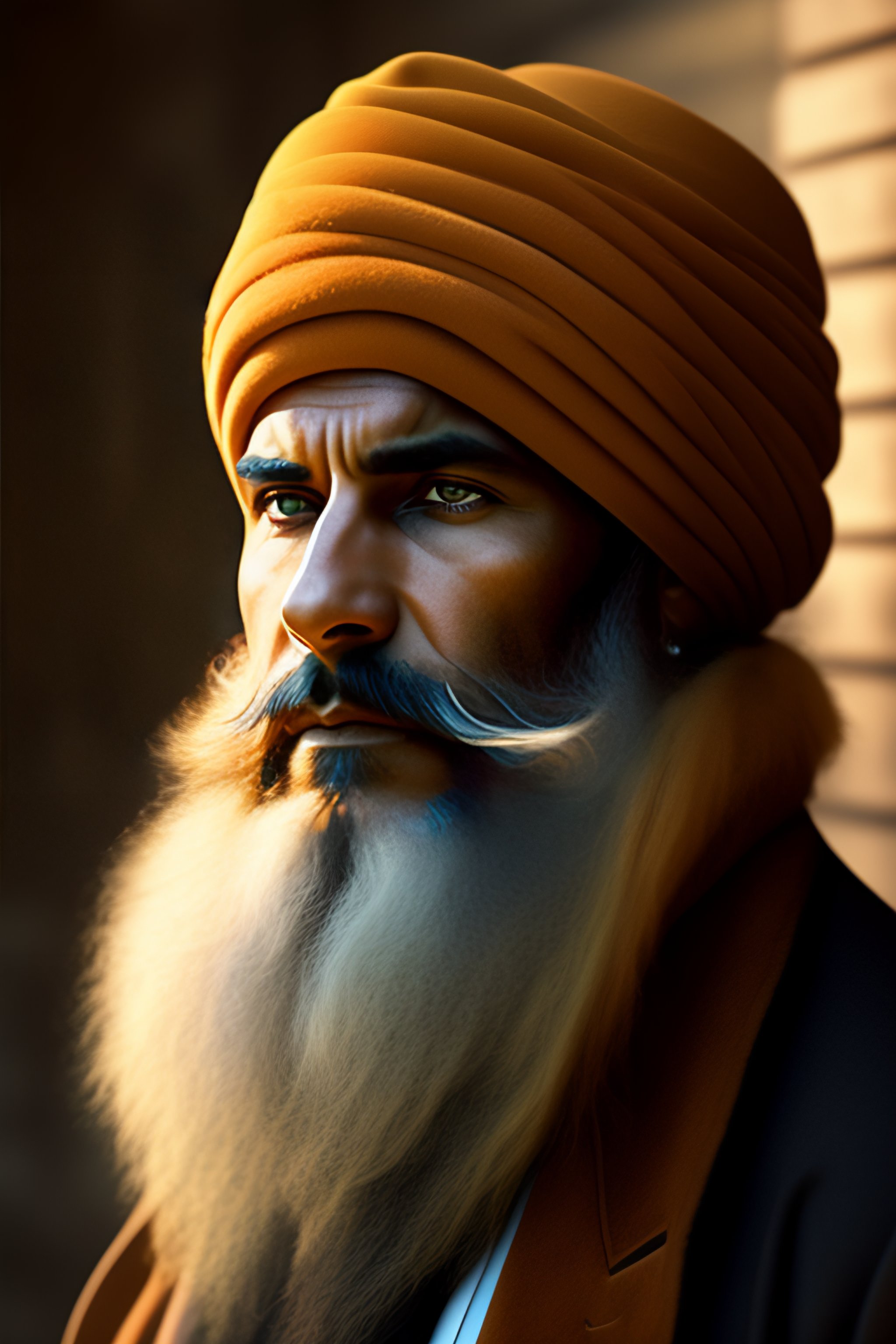 A man with the face of a lion wrapped in a jewish turban