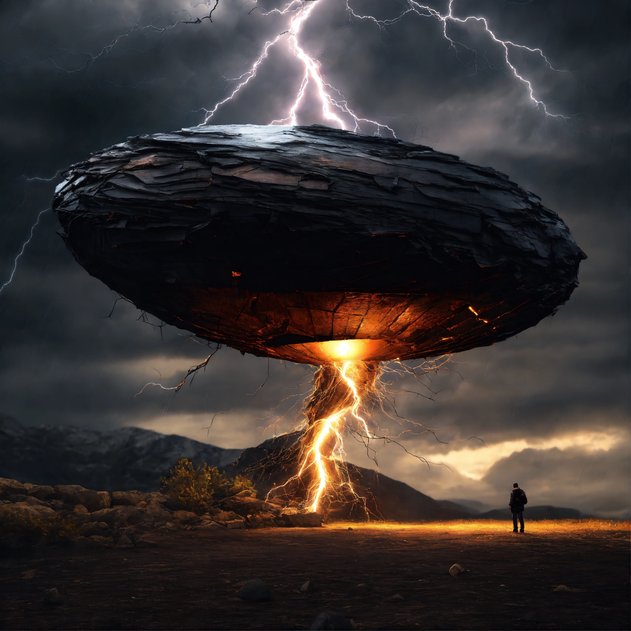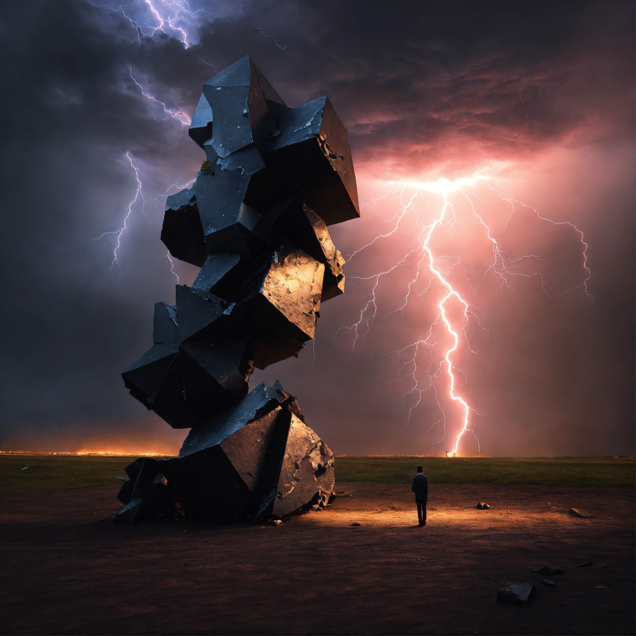 Photo 3d digital art black strange object odd shape damaged out of place lightning