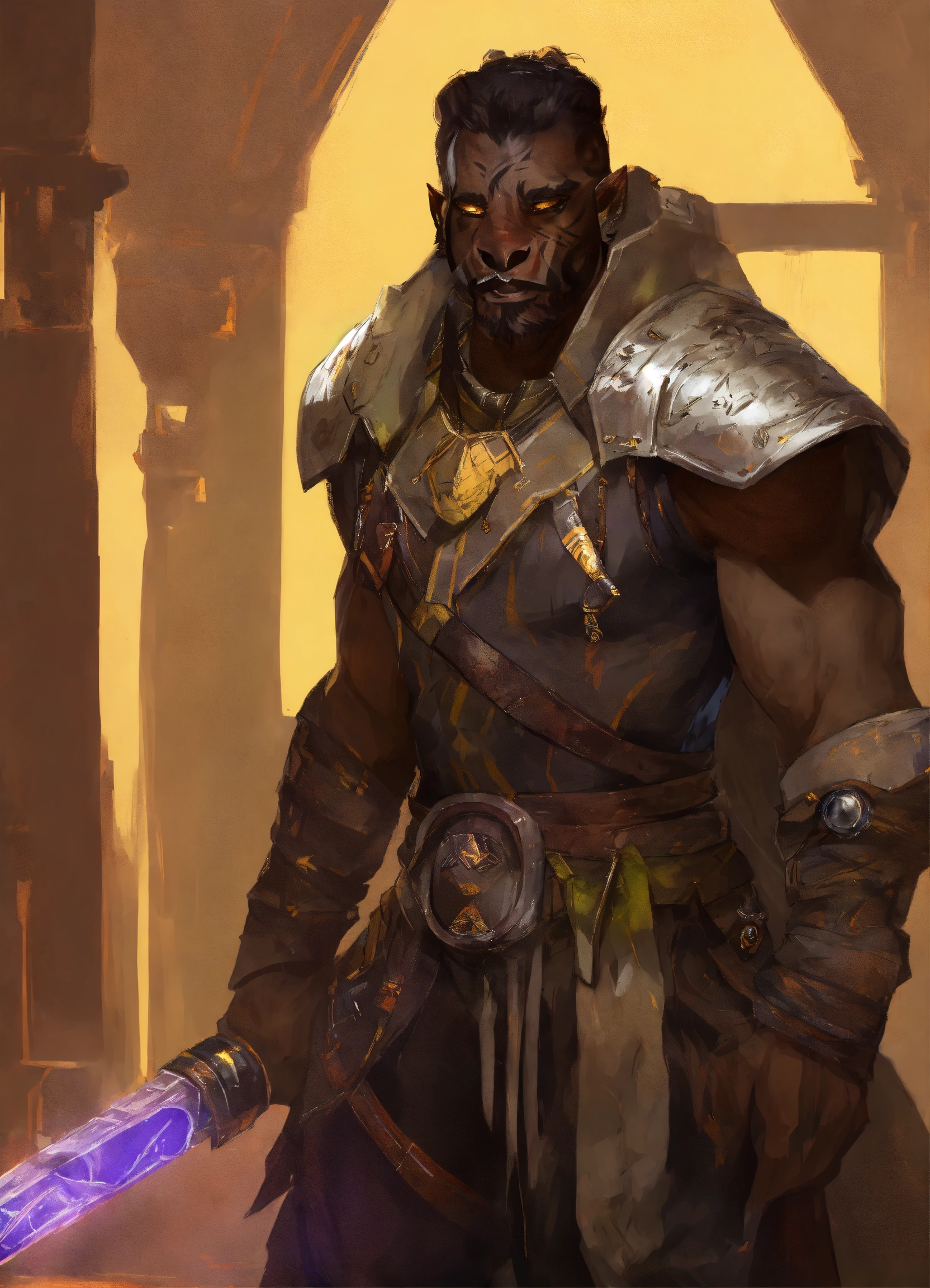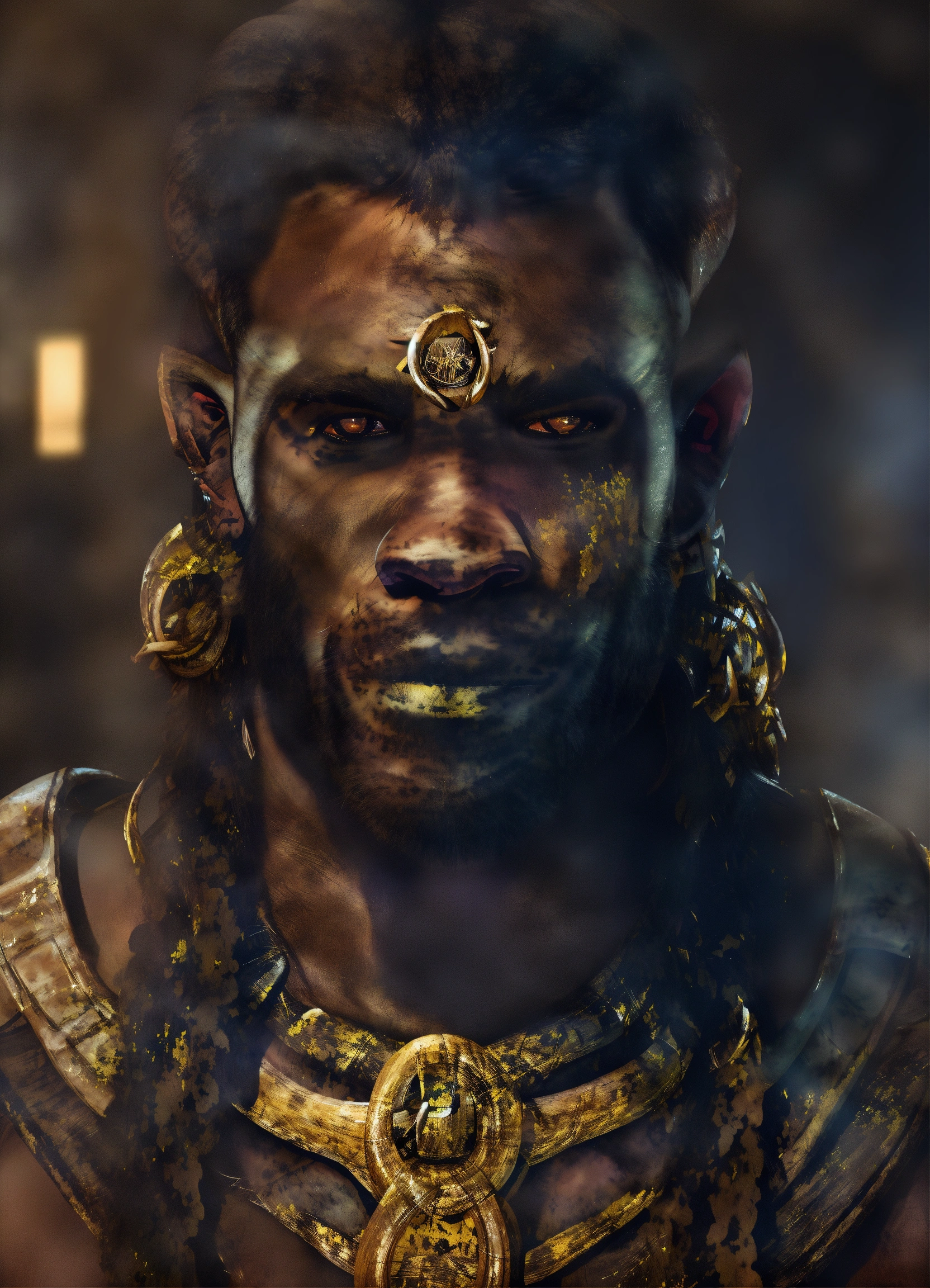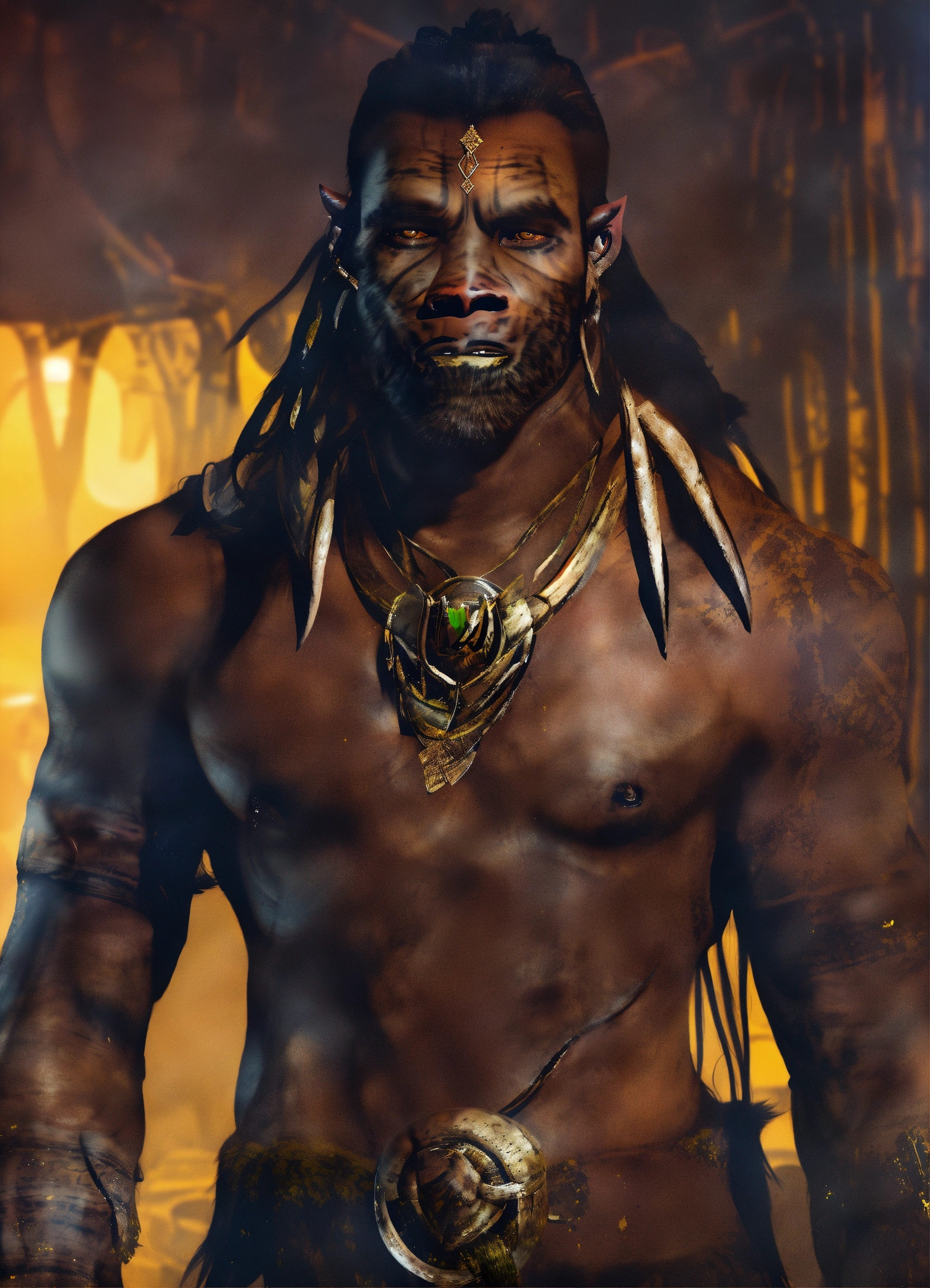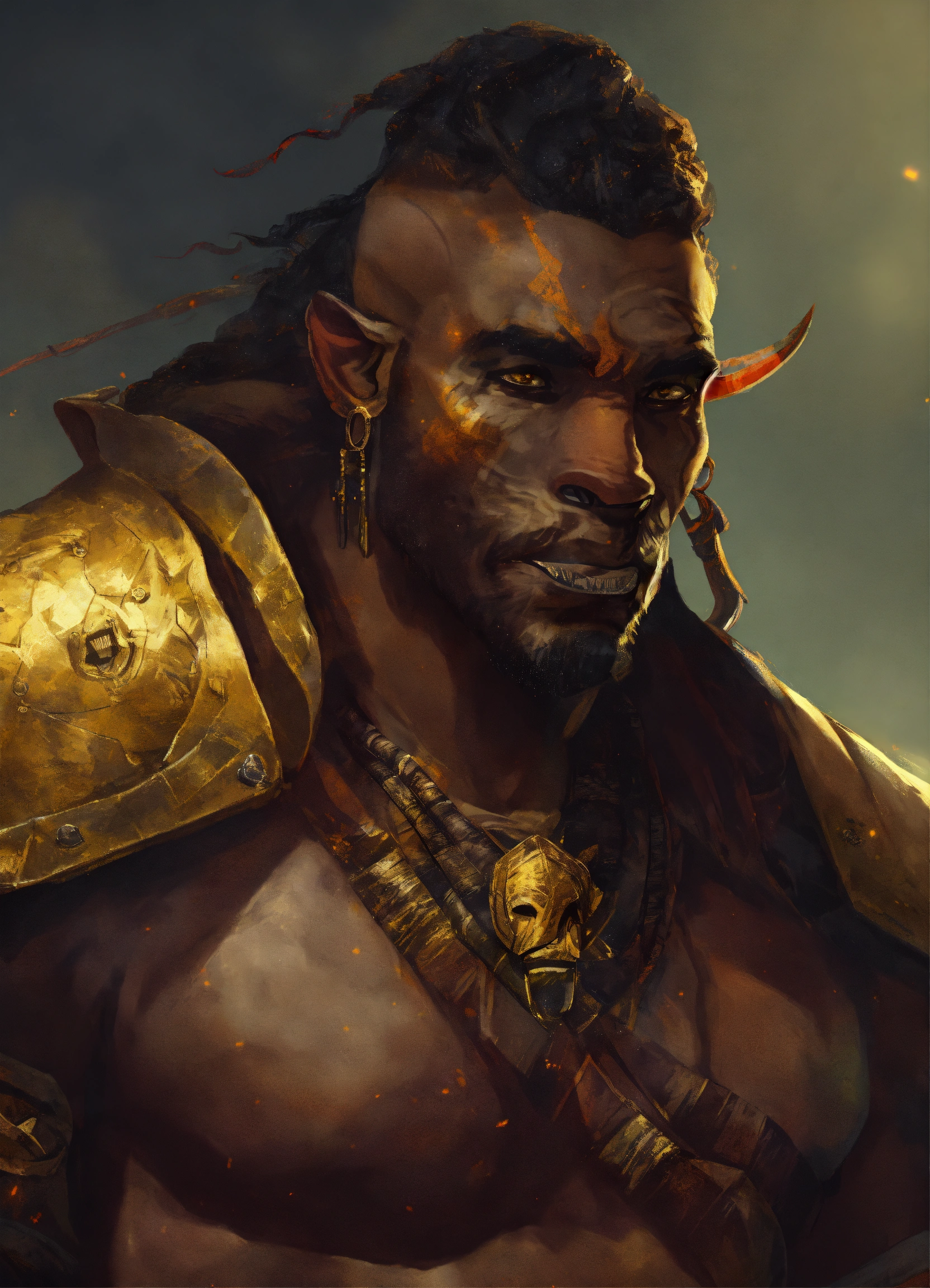 Handsome dark skinned half orc with ((((tusks))))