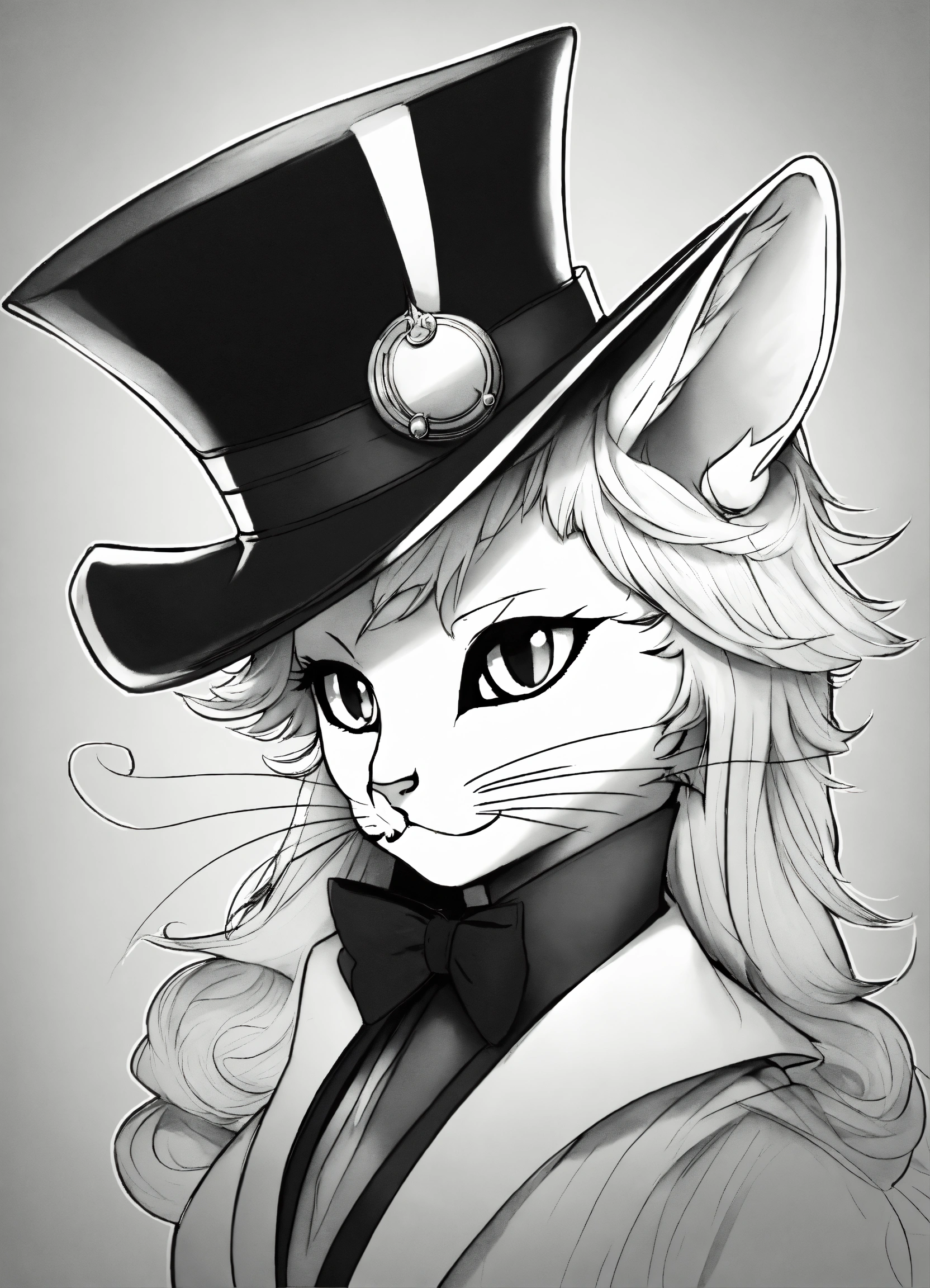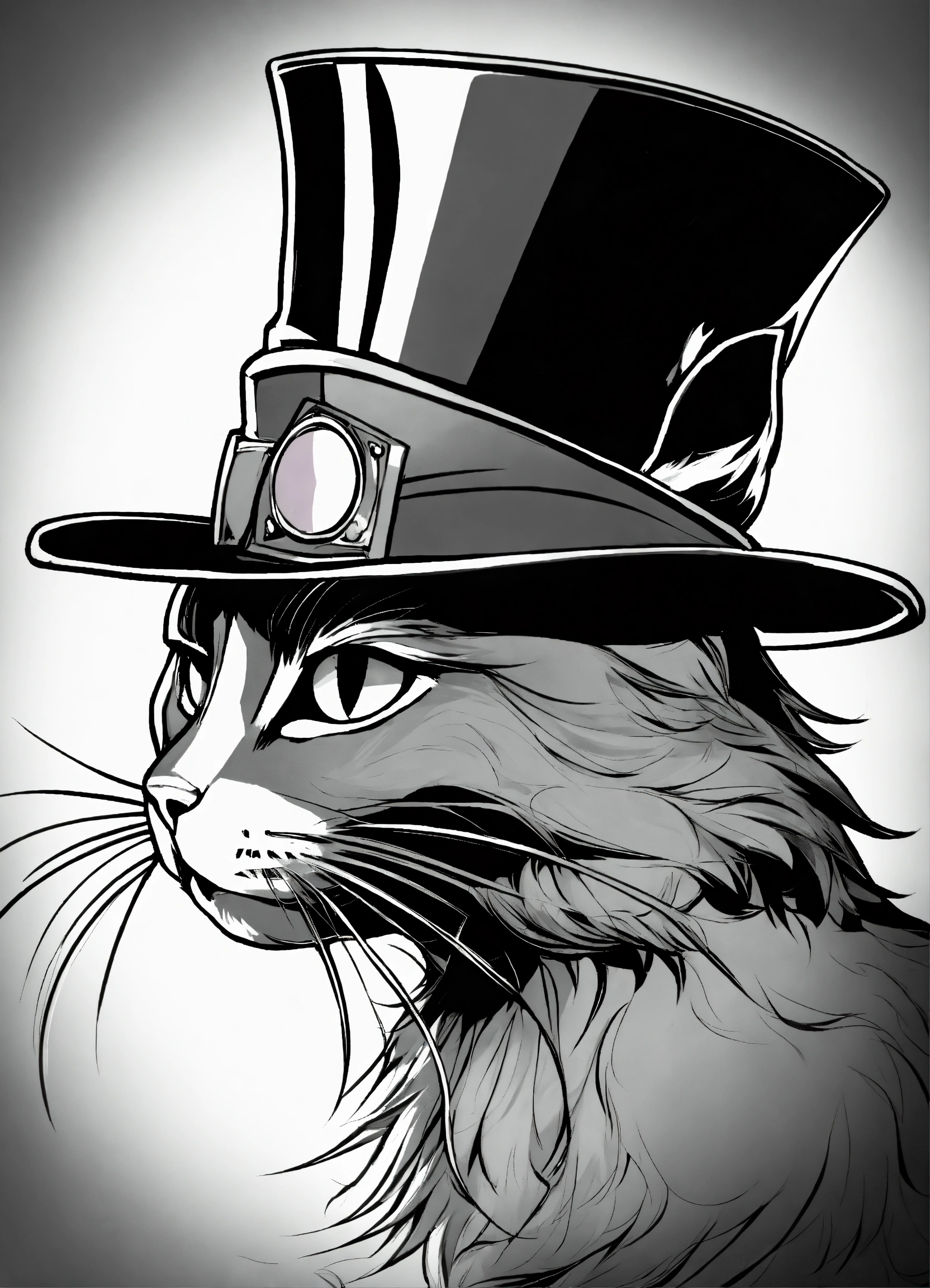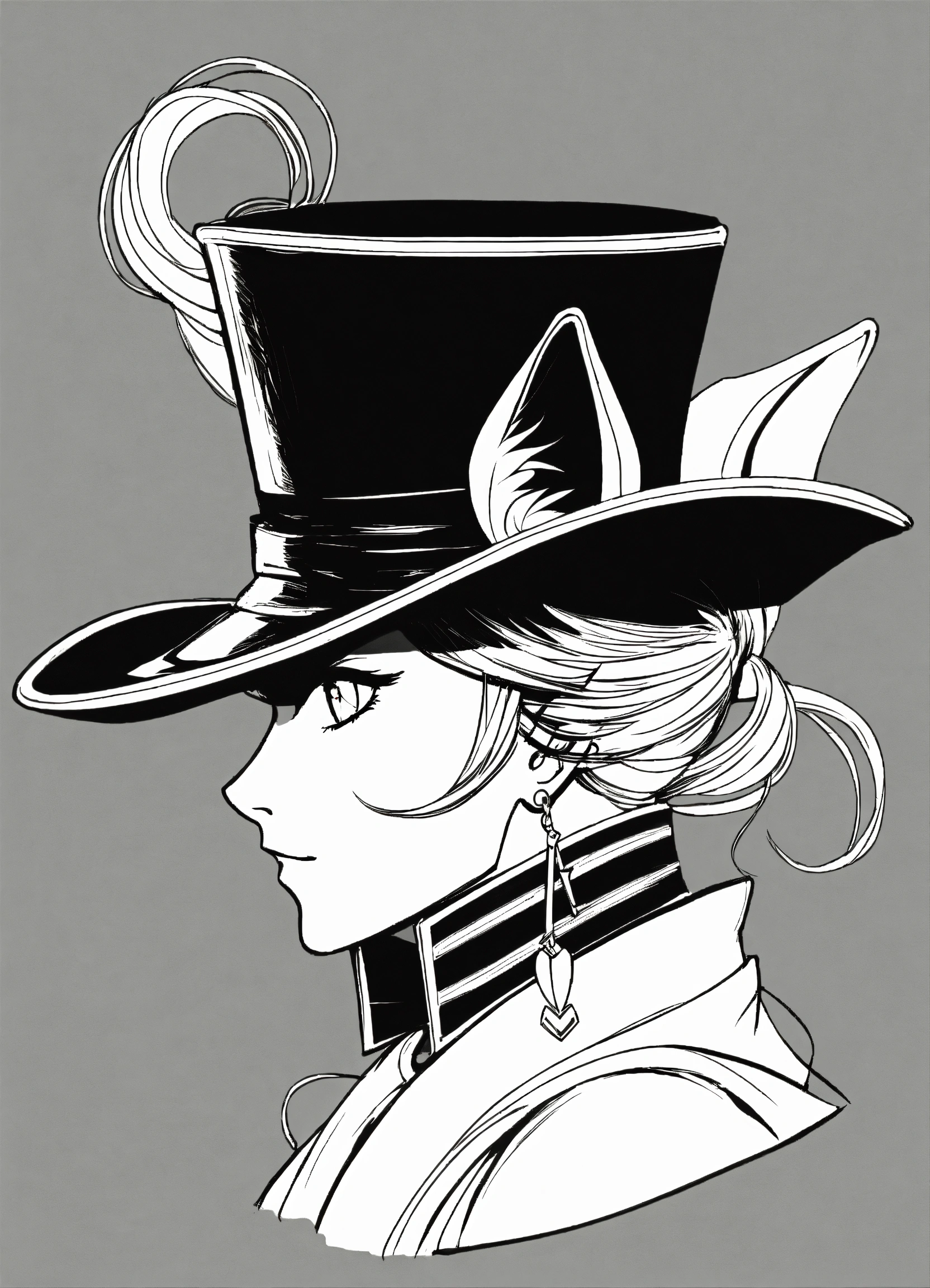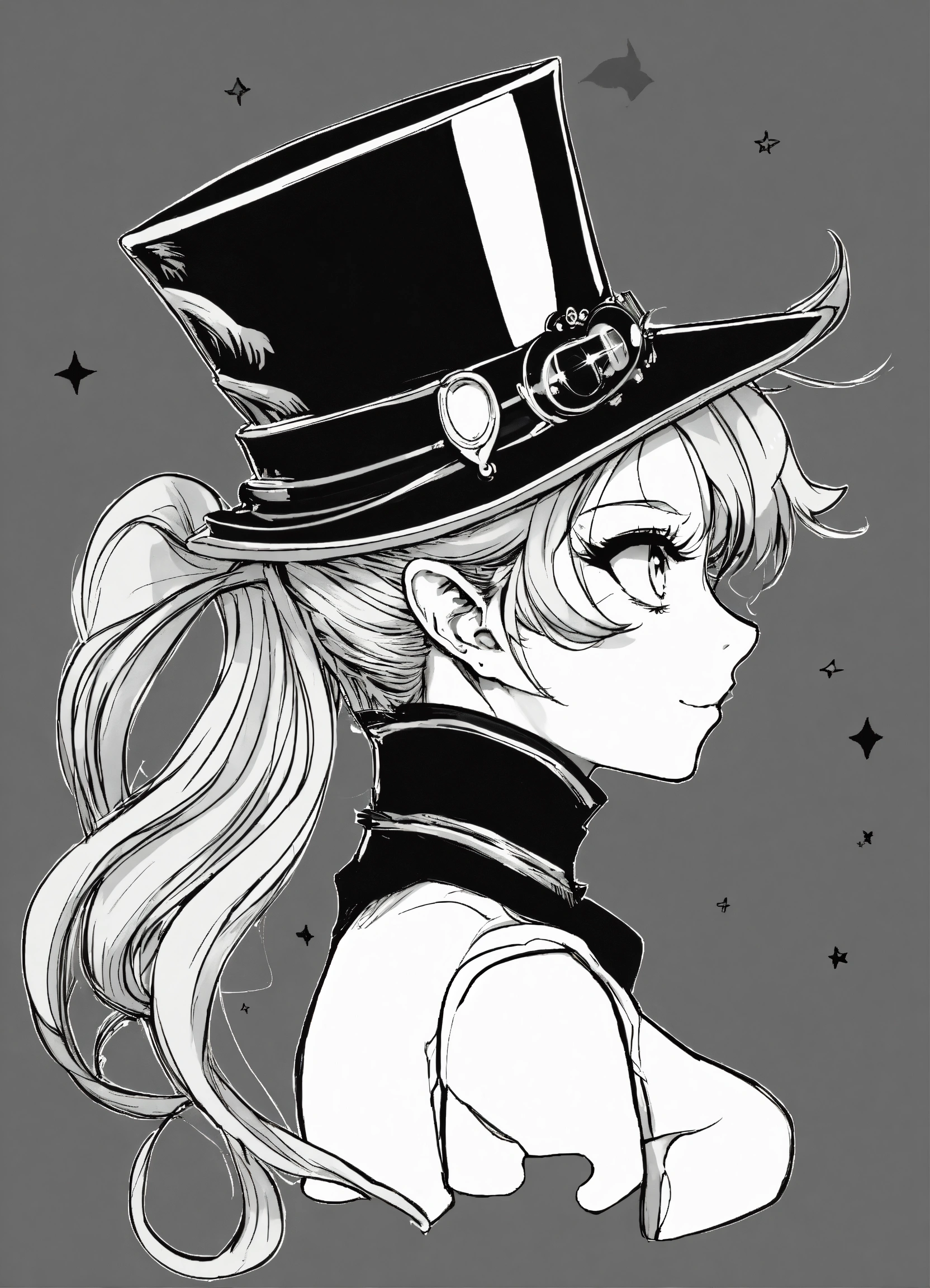 Wicked cat top hat in the anime style of sailor moon. profile view