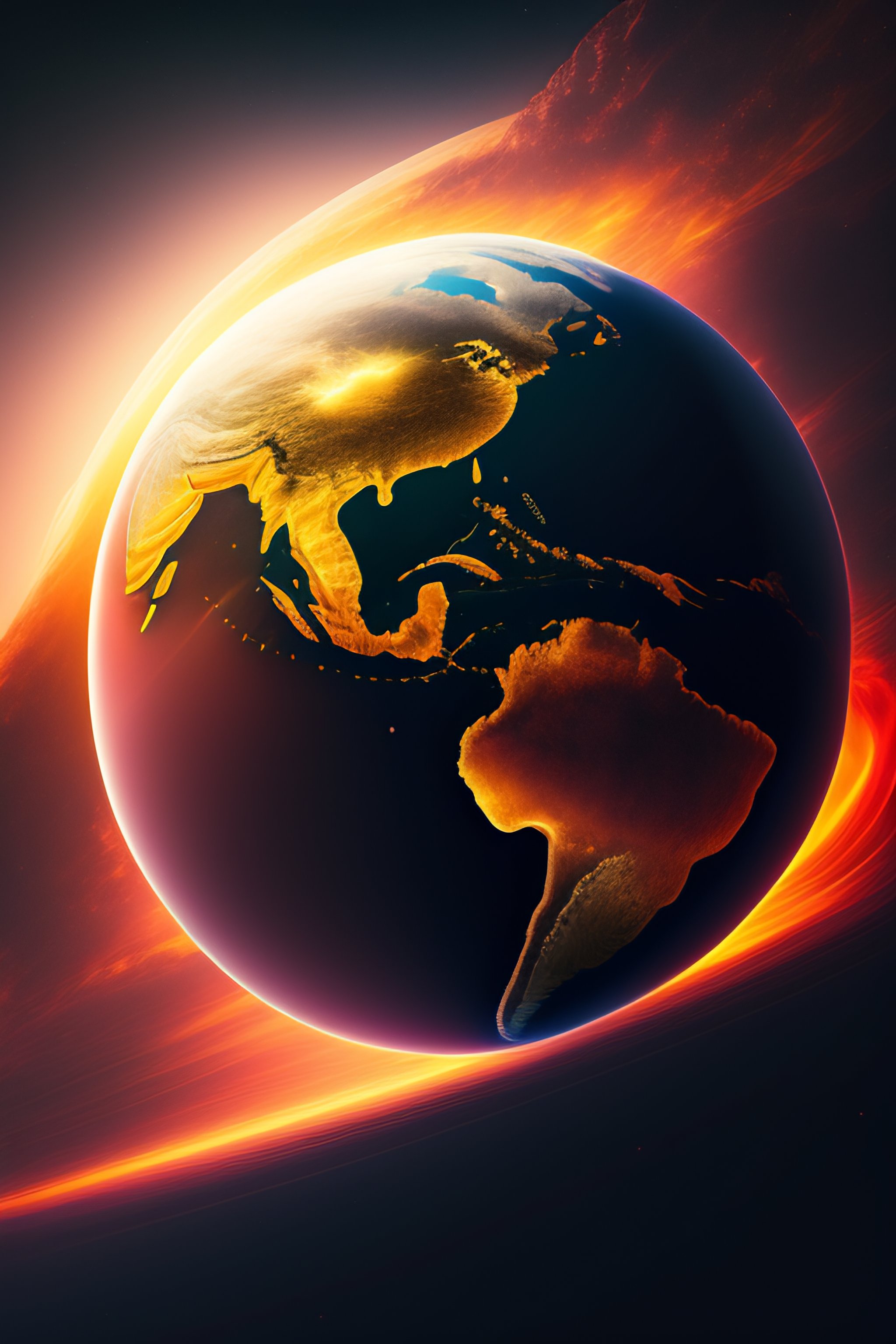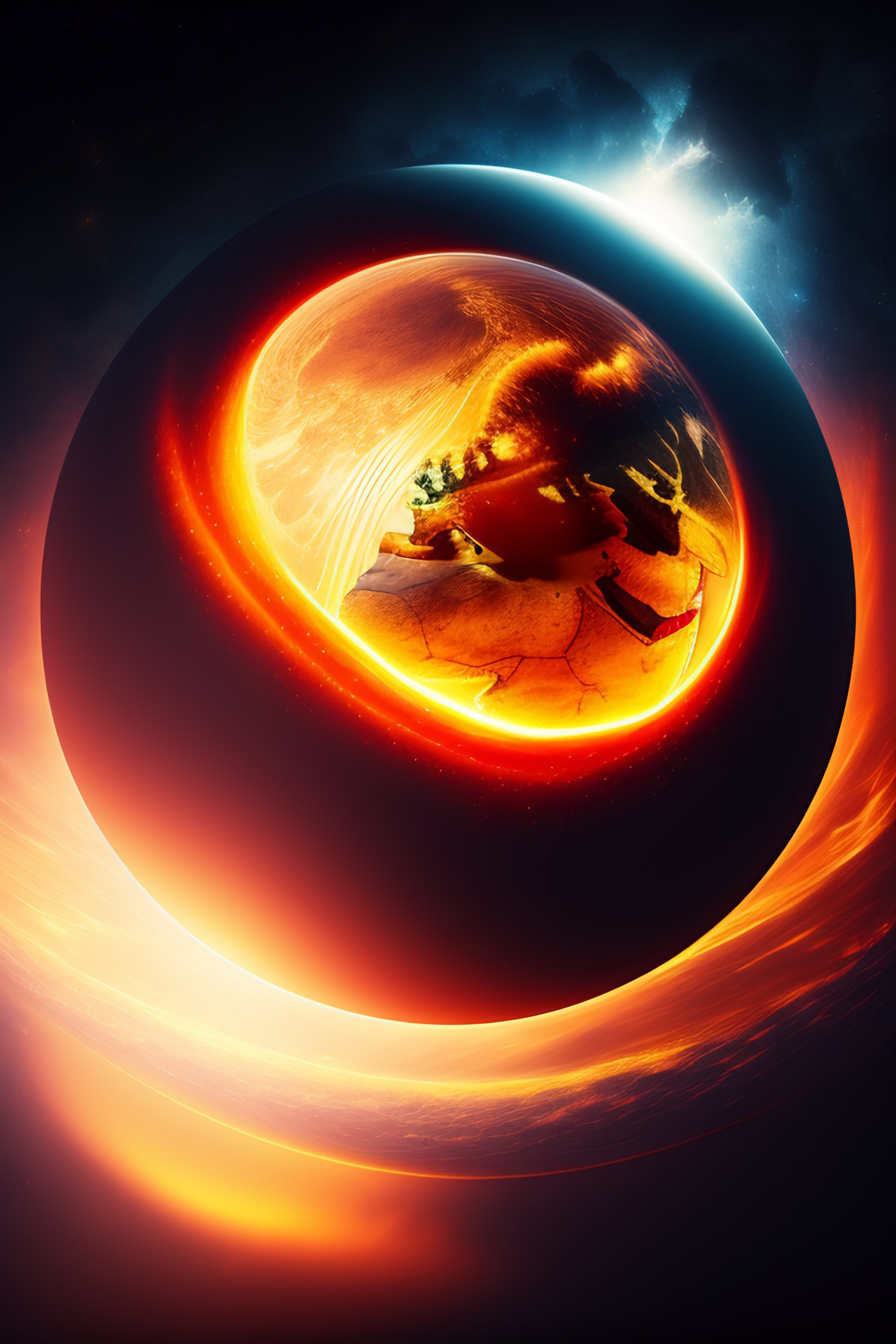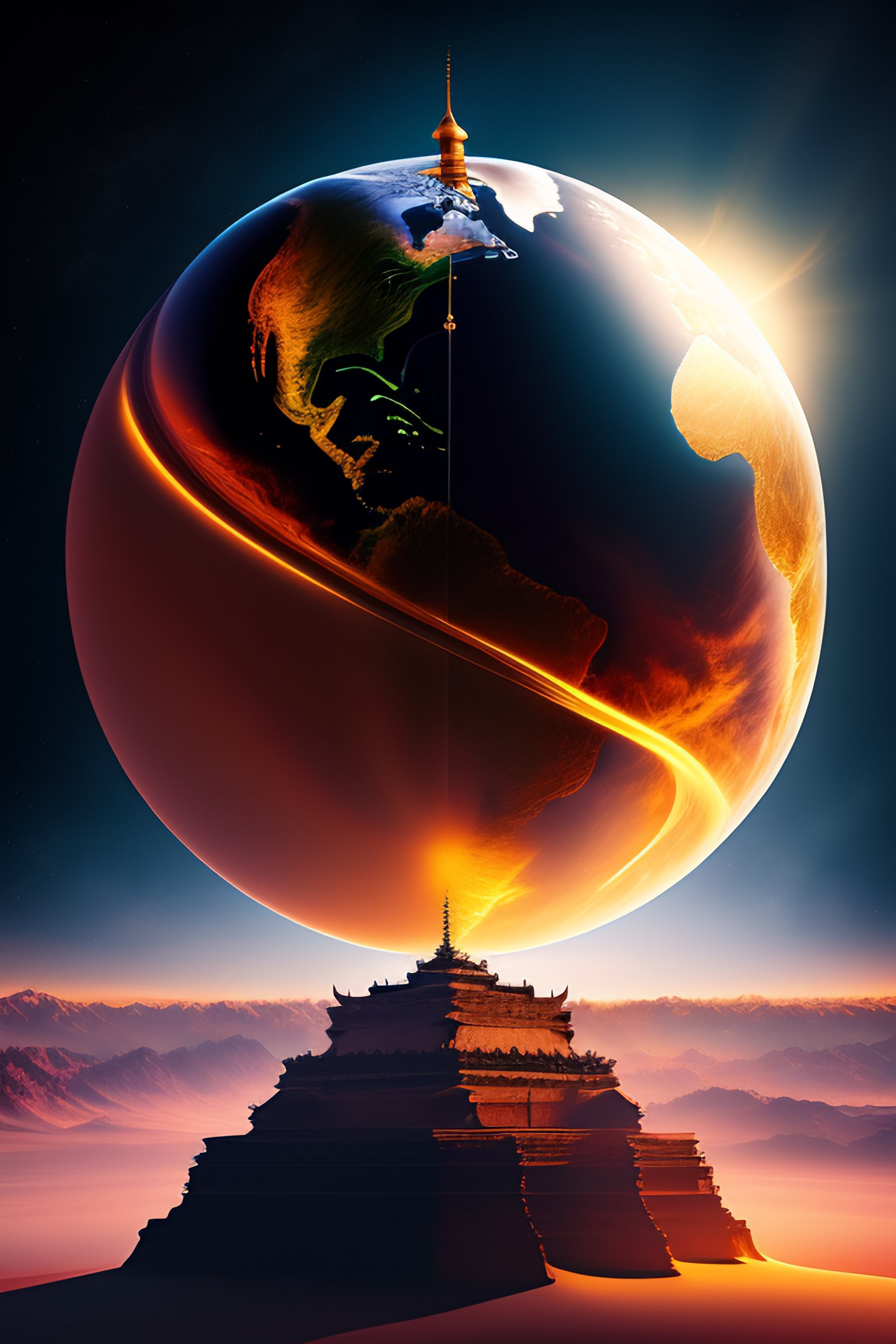 Old globe in motion, several cultural icons flying around, glowing cinematic space background, 8k, hdr