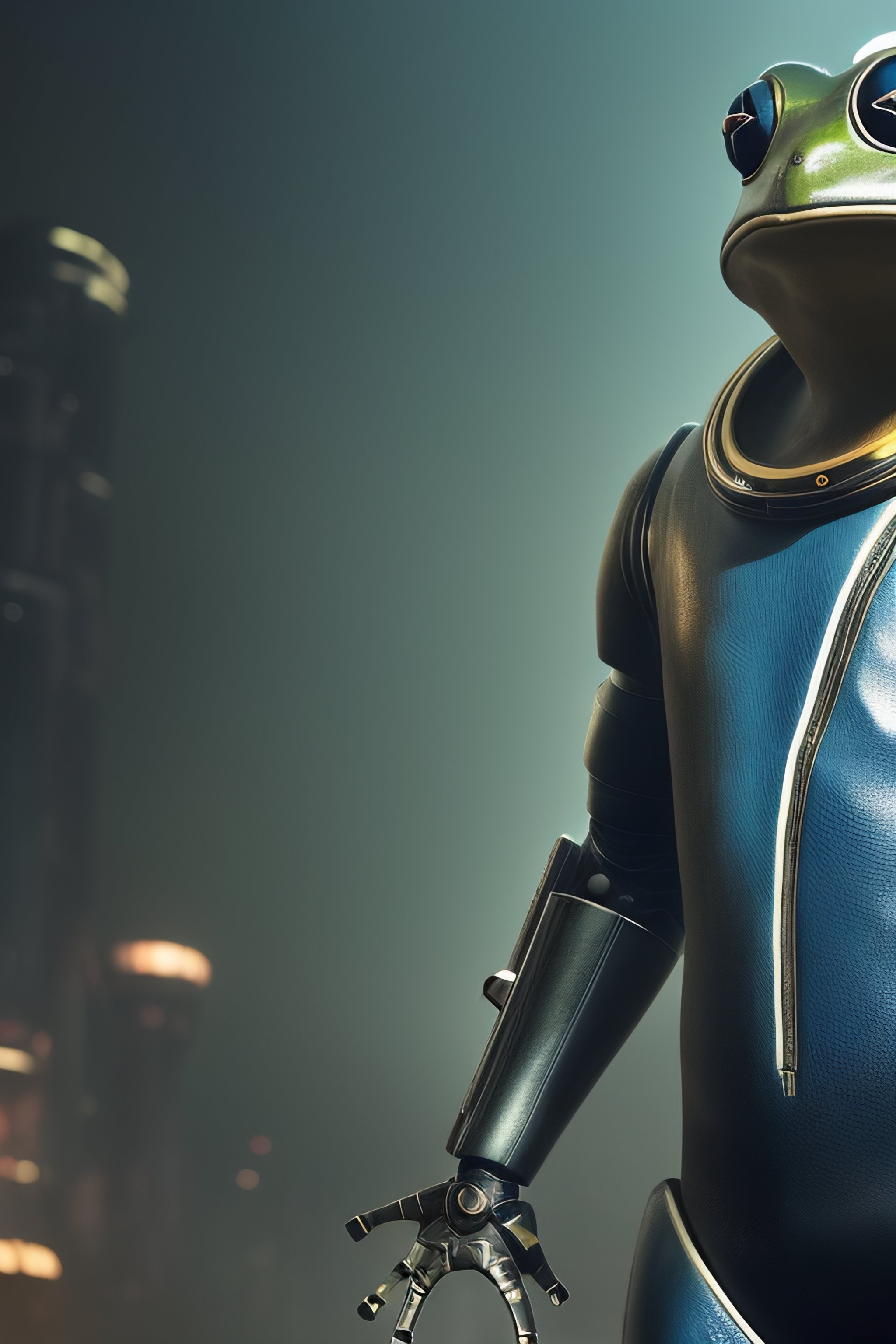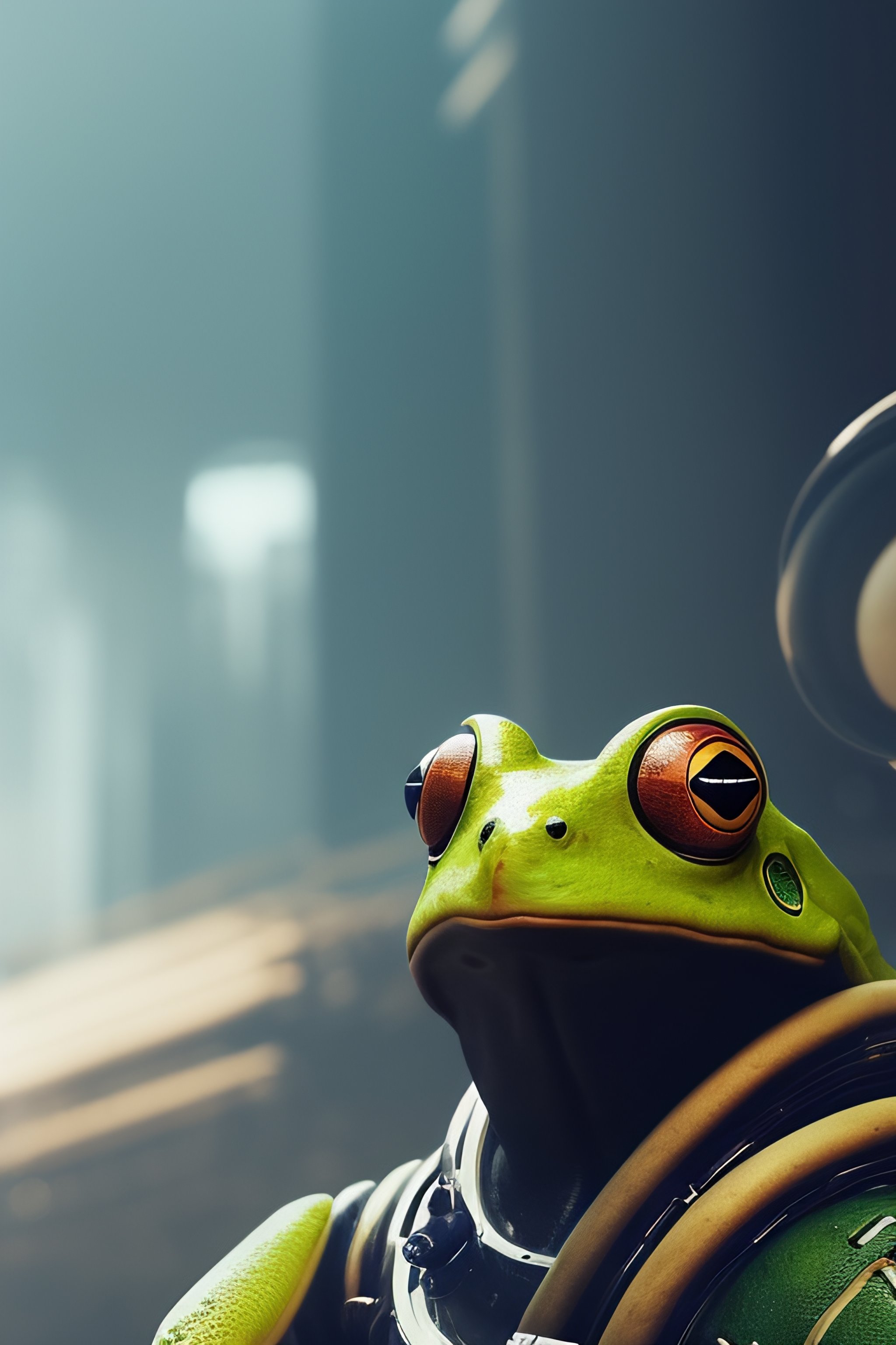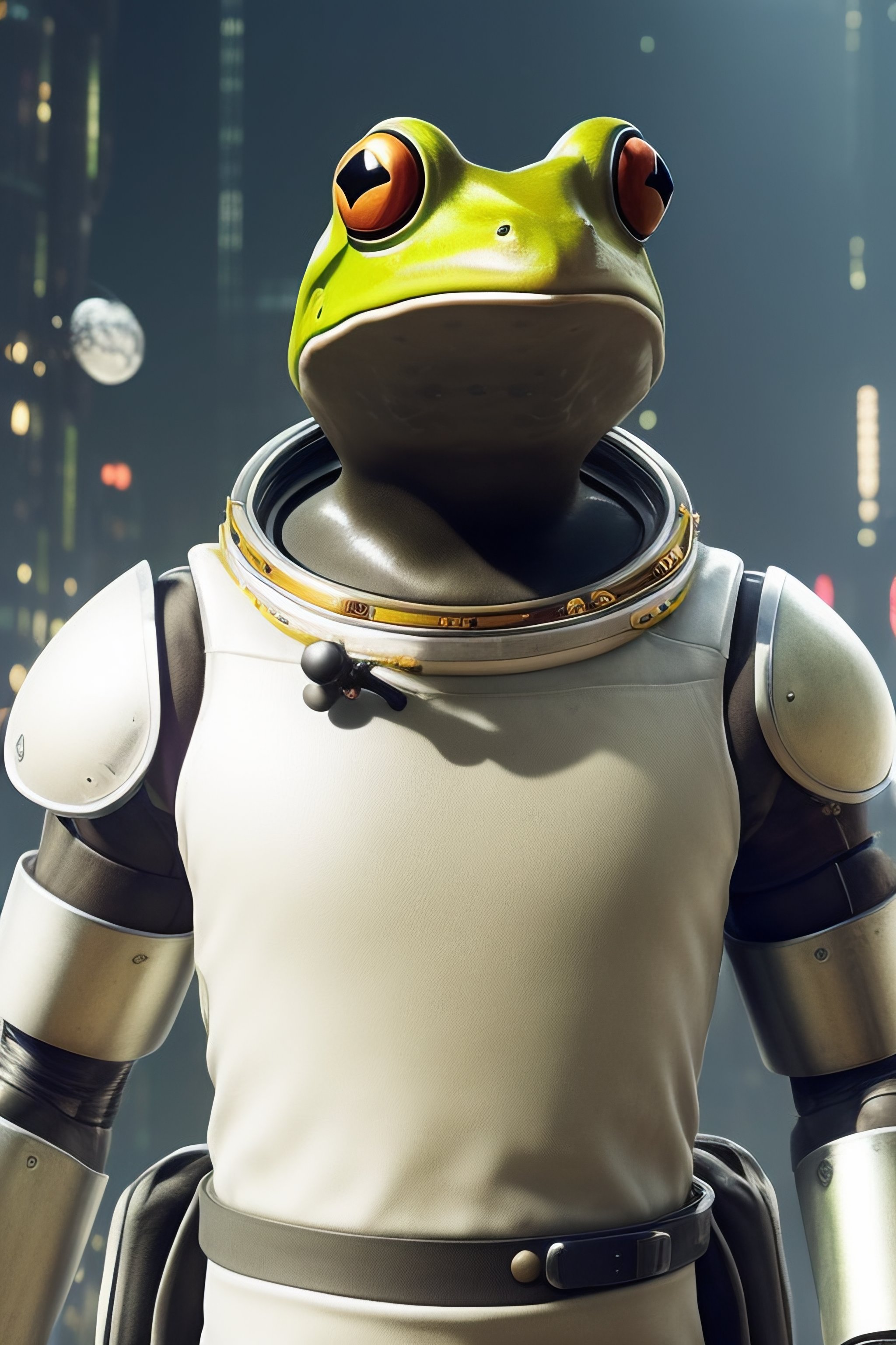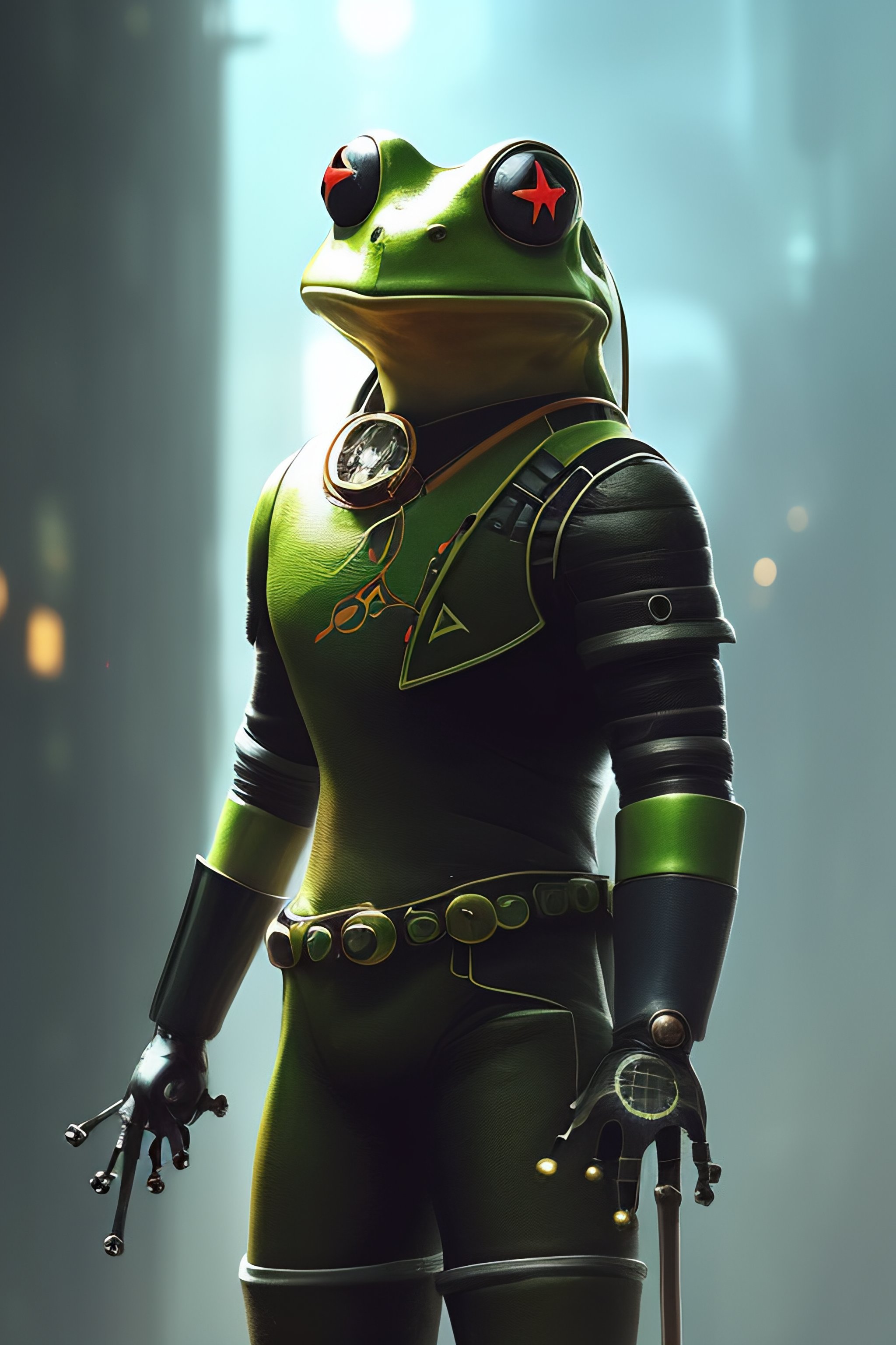 Portrait male anthro frog dressed in astronaut outfit character full body precis no blur, concept art, character sheet, nier automata, alexander mandradjiev cyberpunk, trending on artstation, featured on pixiv, hyper detail, cinematic composition, 8 k, detailed face