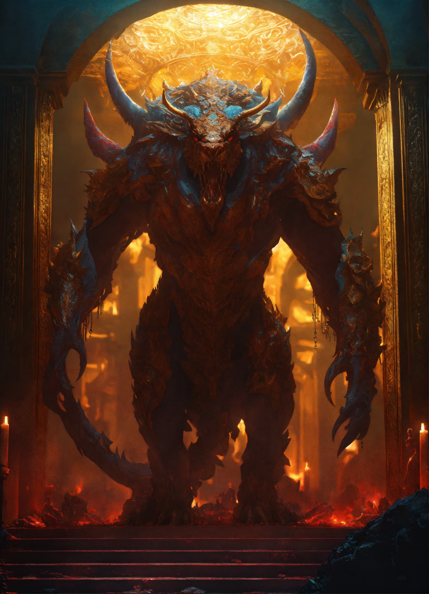 Concept art of a colossal ancient gigantic mythical beast from the depths of the underworld, sci-fi, dark forbodding atmosphere, in the style of alexandra manukyan, mystical colors, rim light, beautiful lighting, 8 k, stunning scene, raytracing, octane, trending on artstation