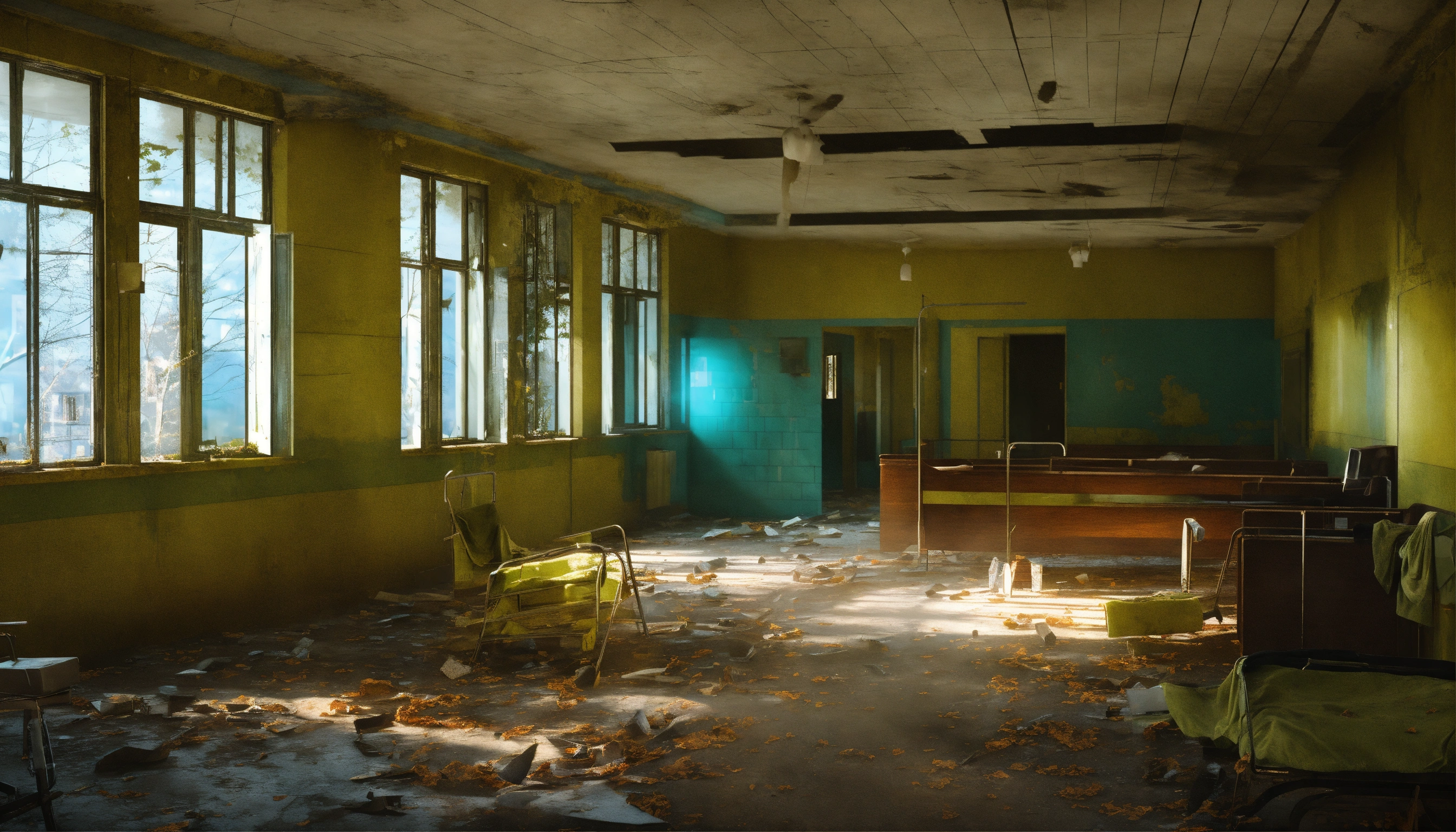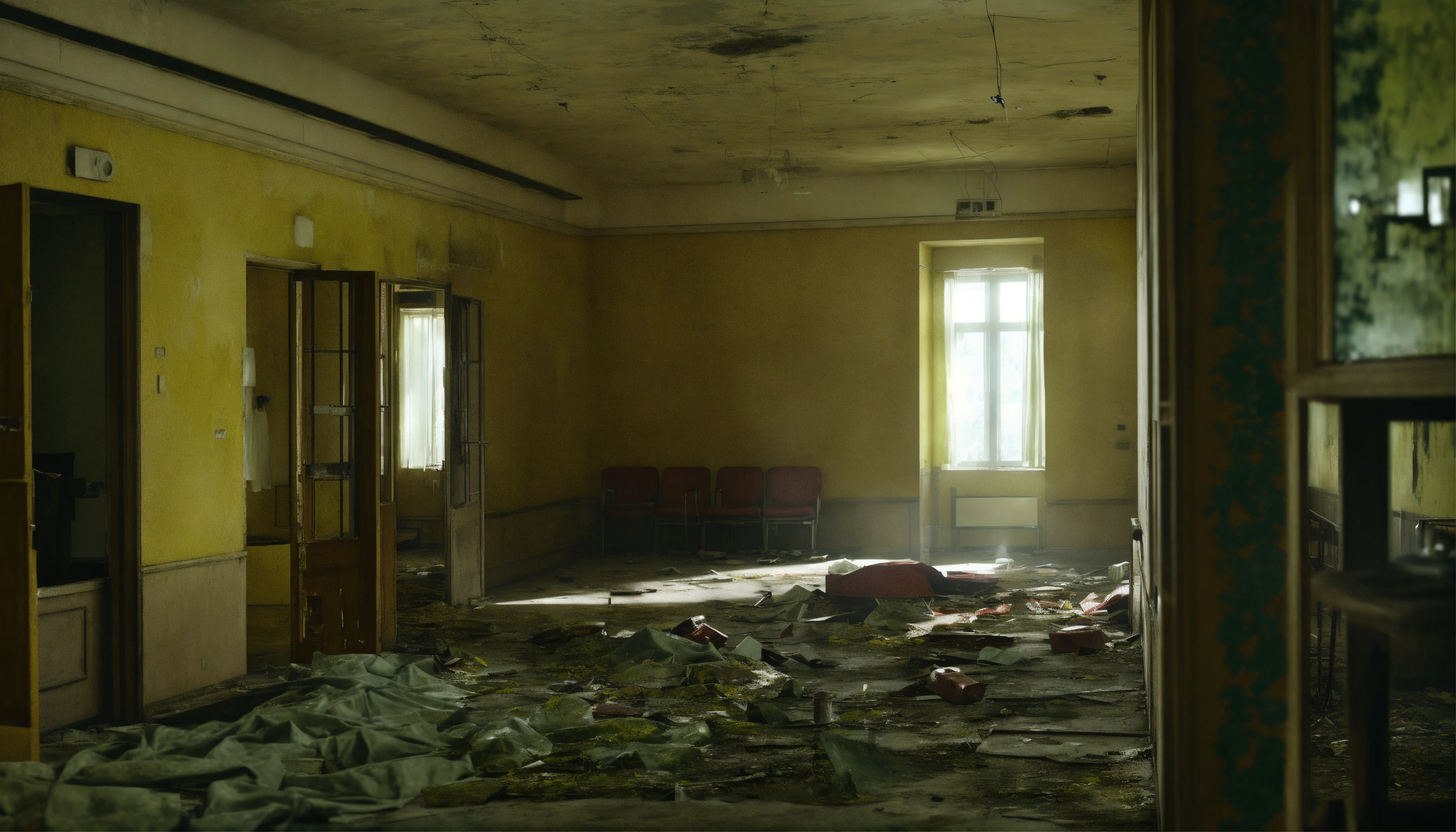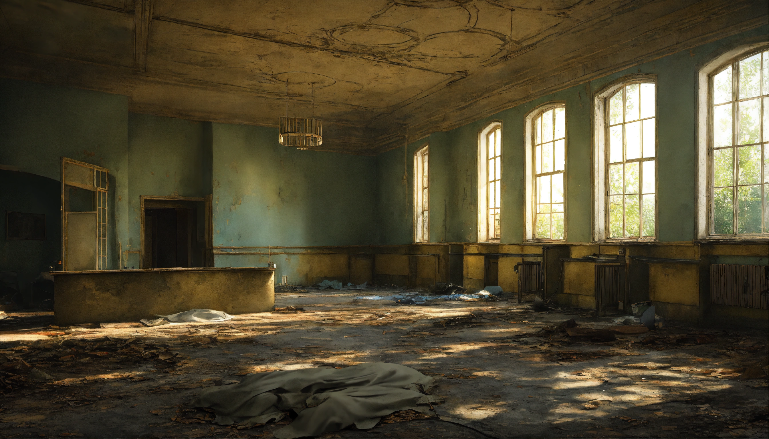 Abandoned mysterious hospital of kyiv inside realistic rendering with ghosts