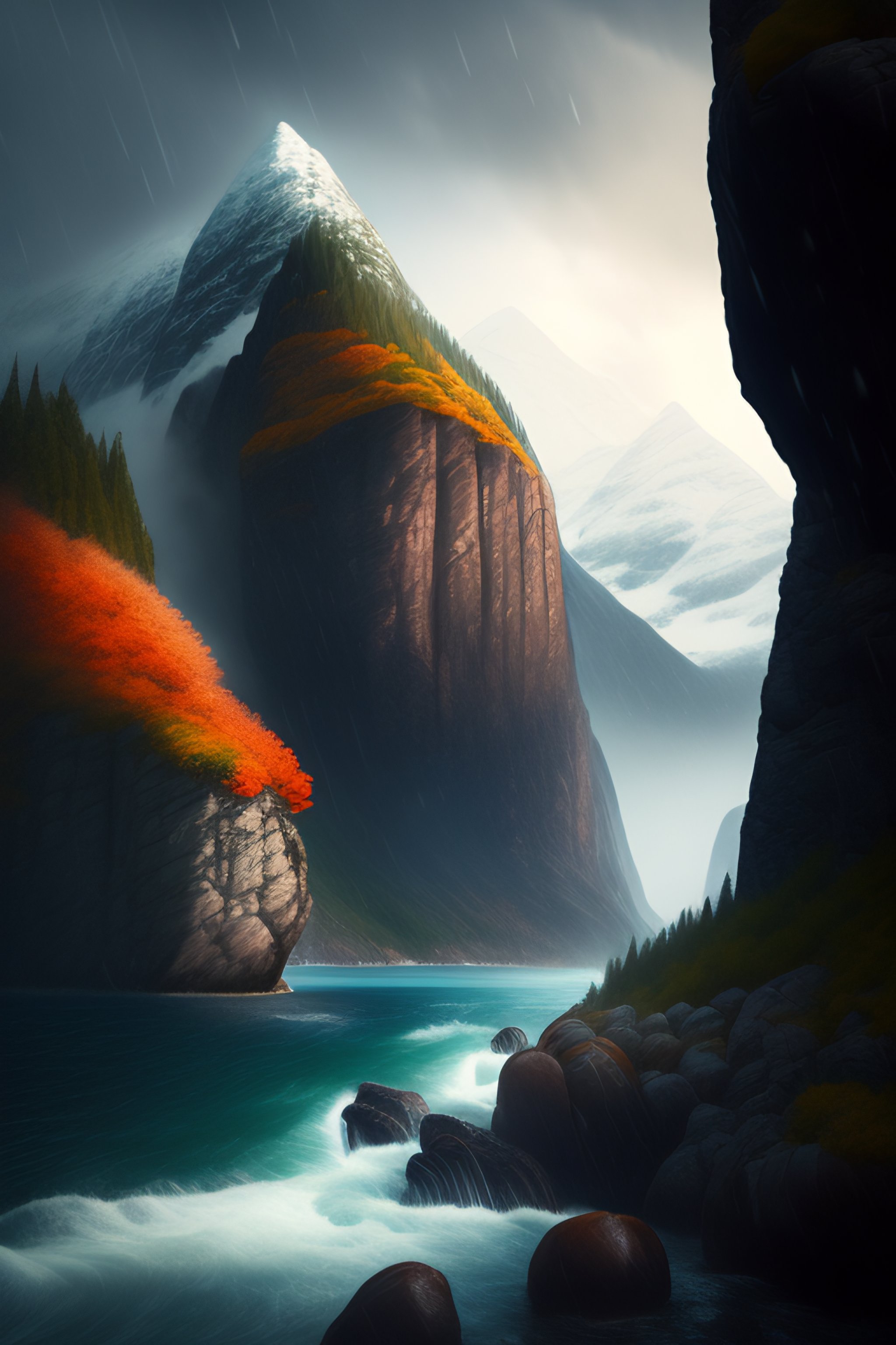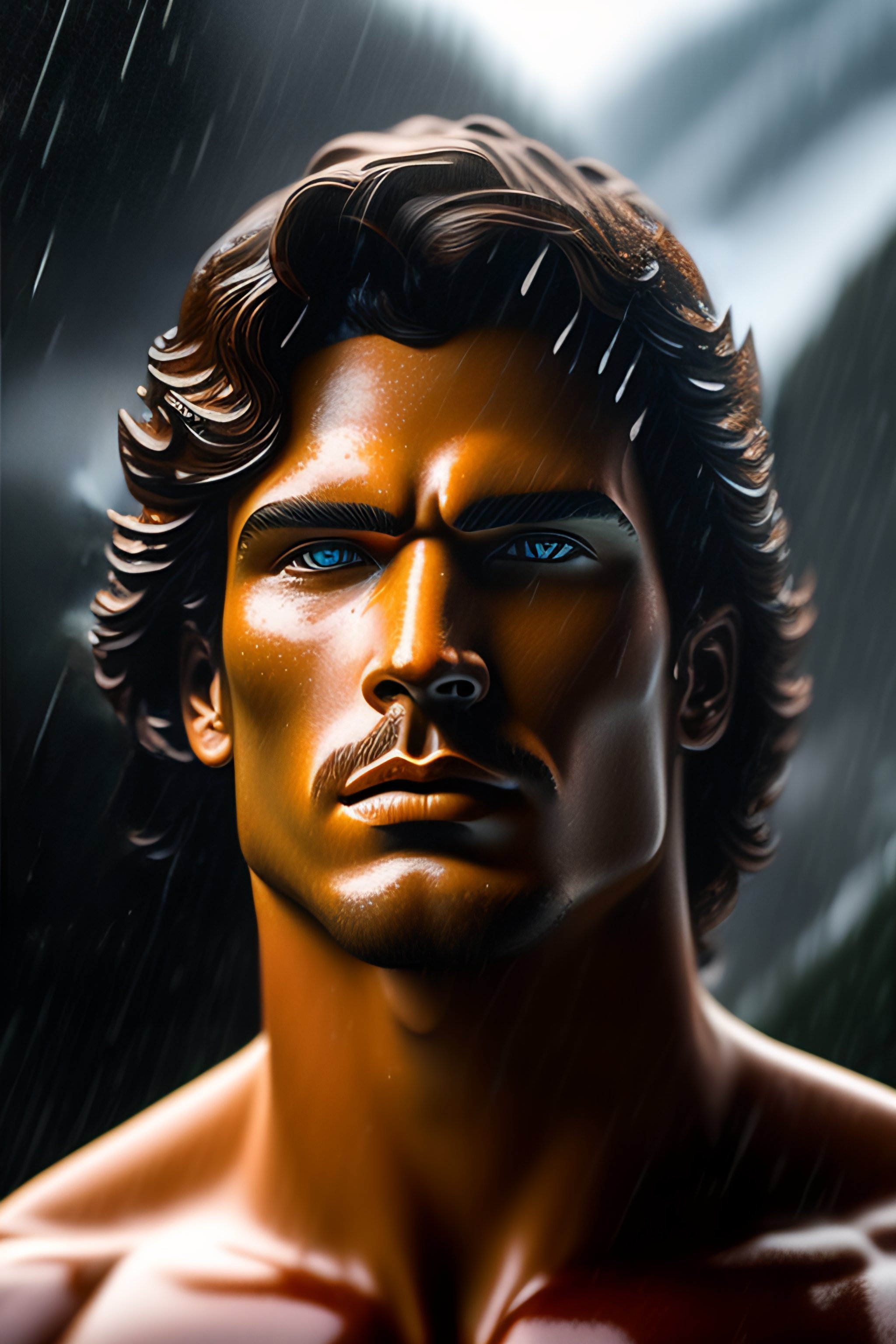 Cyclops in a rainy, mountainous scene. photo realistic, hyper-realistic, greek mythology, greg rutowsky