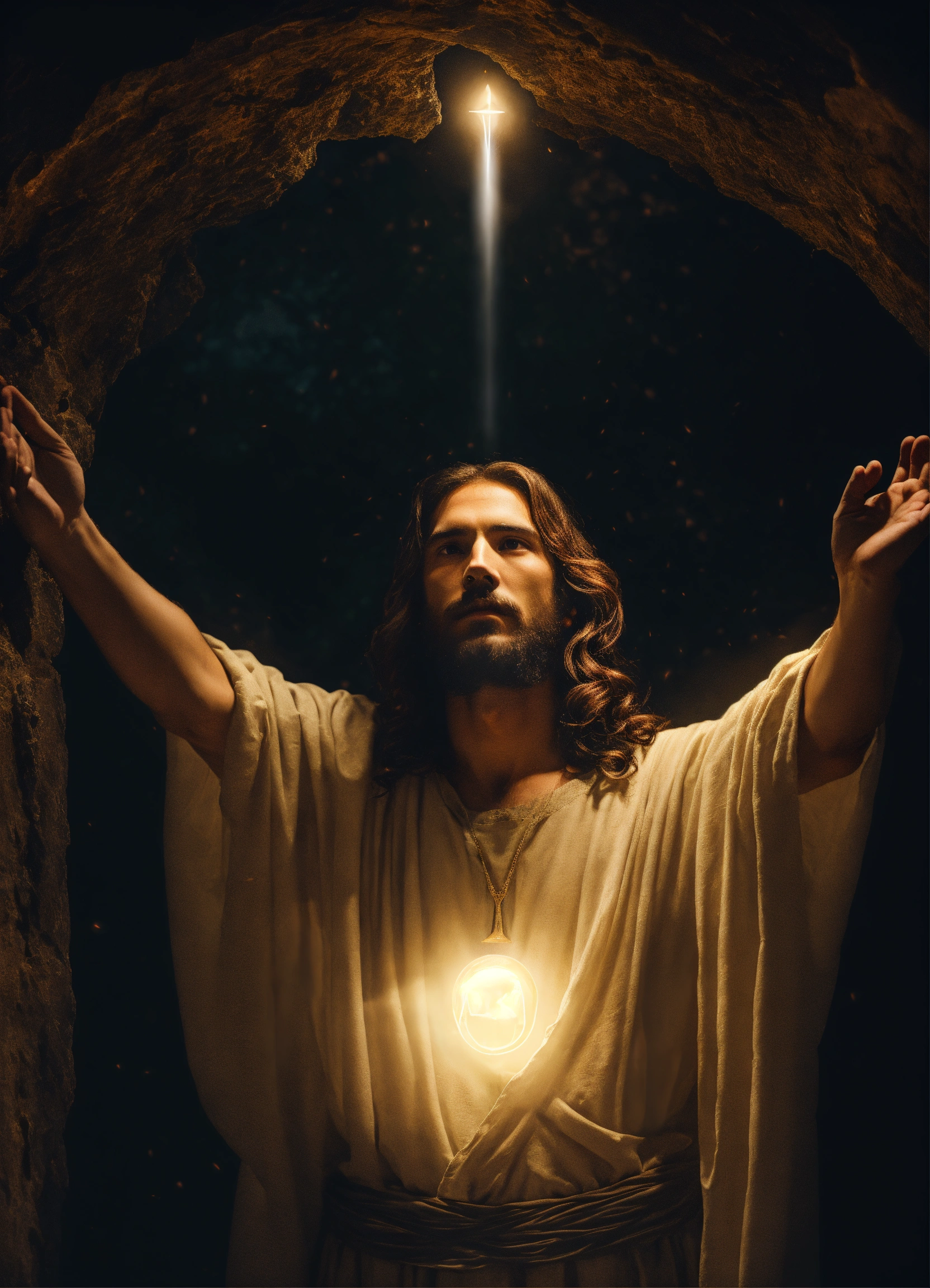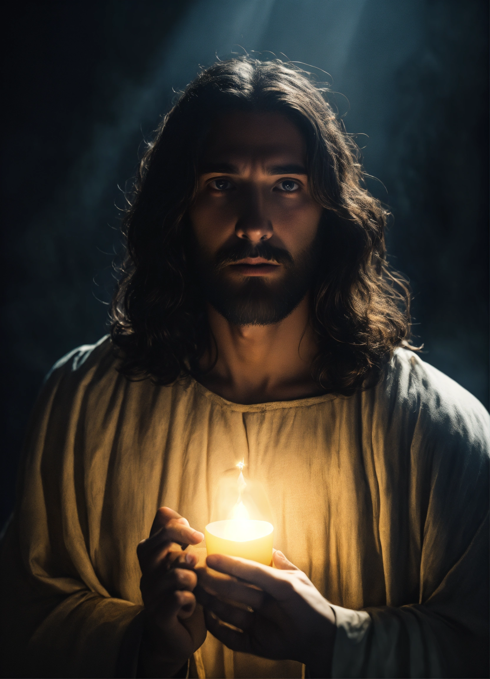 Jesus emerging from the dark
